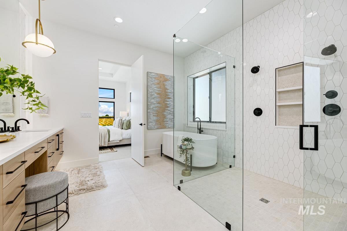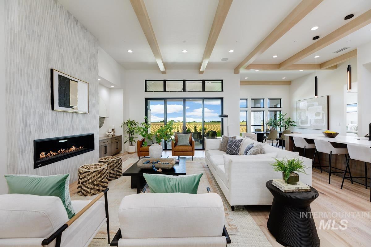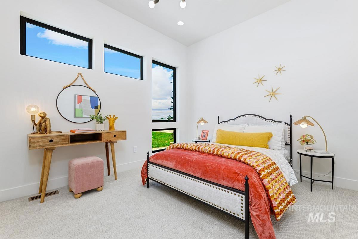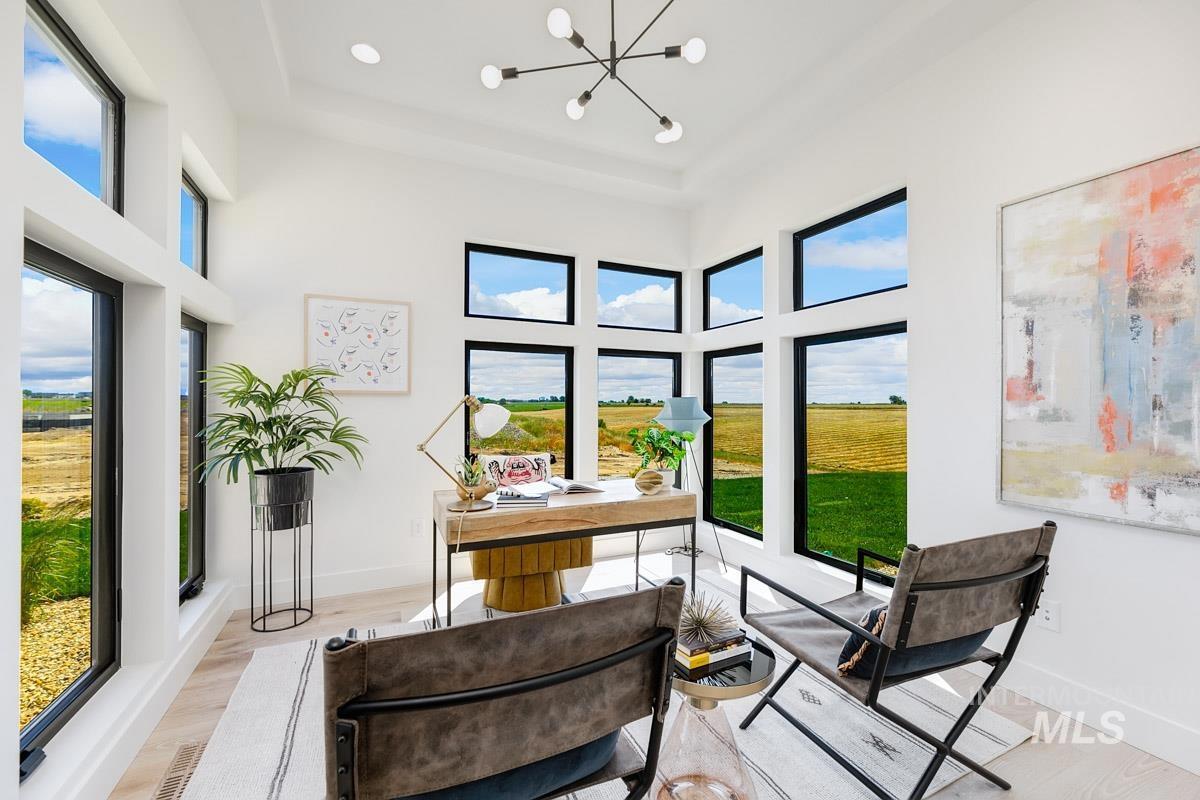 Welcome to this luxury Parade home by Mendiola Custom Homes in Middleton`s Meadow Bluff Subdivision. Views!! Come enjoy the space of acreage with minimal yard work. This 3027 sq ft home boasts 5 bedrooms with possible mother-law quarters or guest room and office. This magnificent single-story home offers grand living spaces, perfect for both entertaining and everyday living. The kitchen is adorned with cabinetry, quartz counters, and a large, butler-type pantry. The luxurious master is a true retreat with a spa-like en-suite bathroom and walk-in closet. Just under 2 acres and a double RV bay!