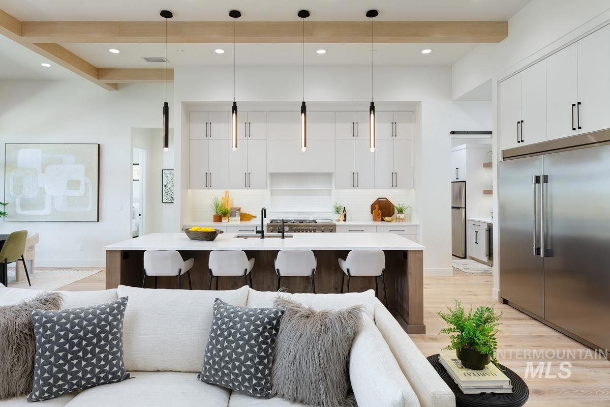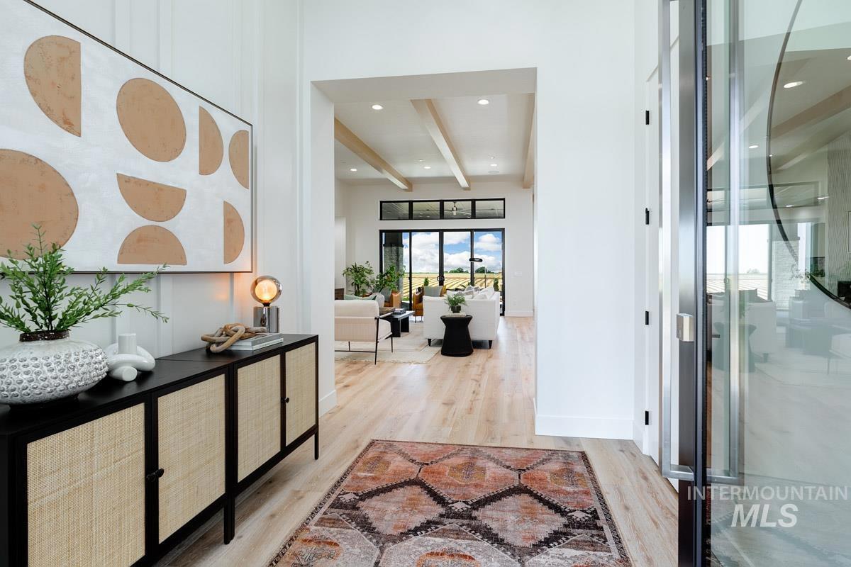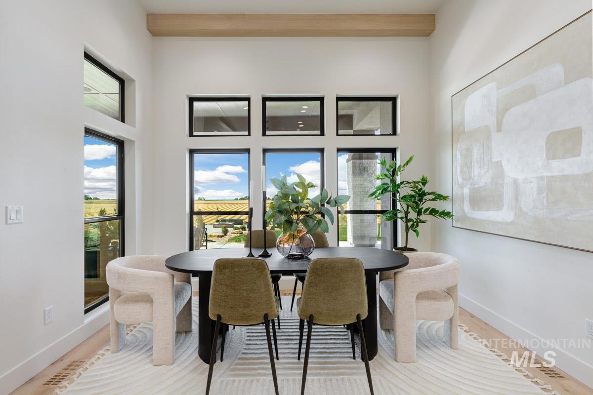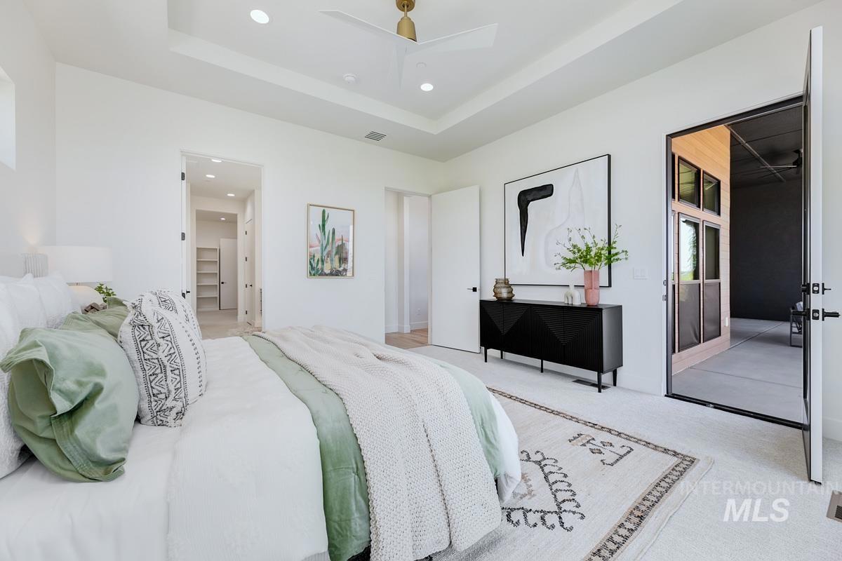 Welcome to this luxury Parade home by Mendiola Custom Homes in Middleton`s Meadow Bluff Subdivision. Views!! Come enjoy the space of acreage with minimal yard work. This 3027 sq ft home boasts 5 bedrooms with possible mother-law quarters or guest room and office. This magnificent single-story home offers grand living spaces, perfect for both entertaining and everyday living. The kitchen is adorned with cabinetry, quartz counters, and a large, butler-type pantry. The luxurious master is a true retreat with a spa-like en-suite bathroom and walk-in closet. Just under 2 acres and a double RV bay!