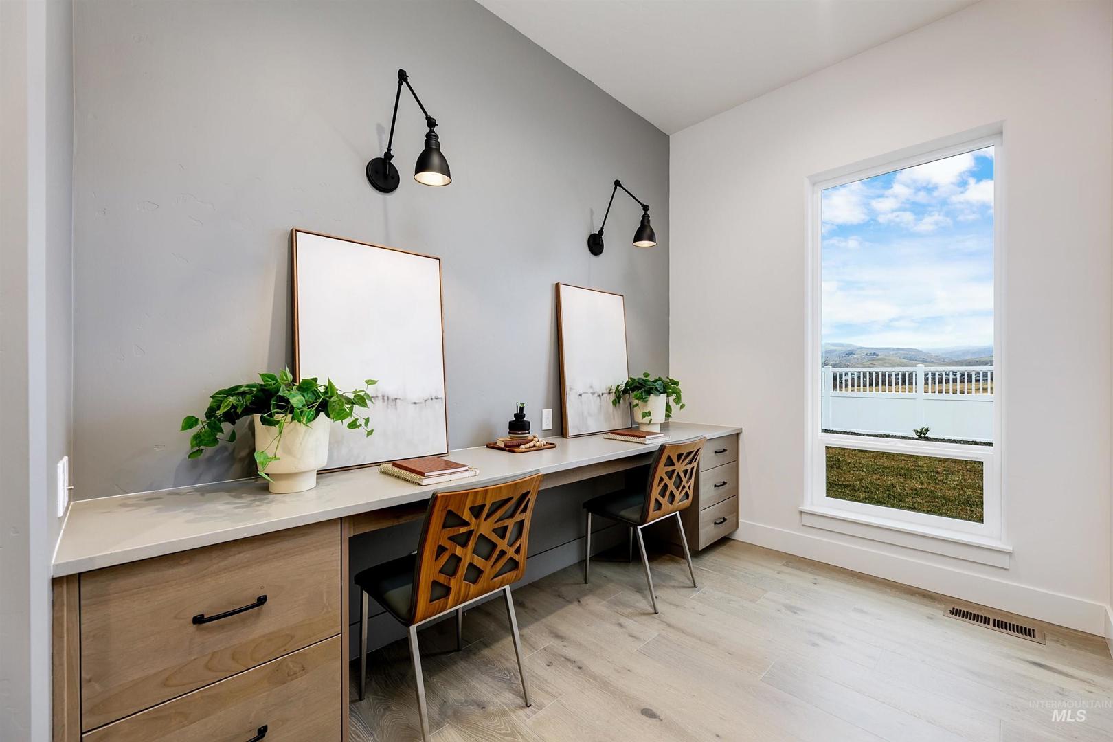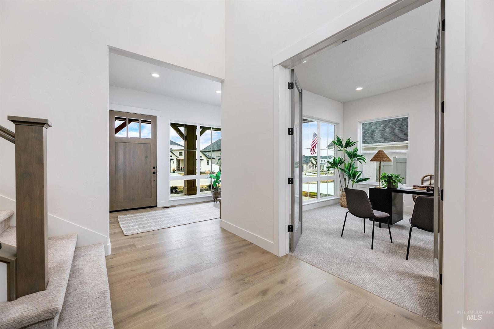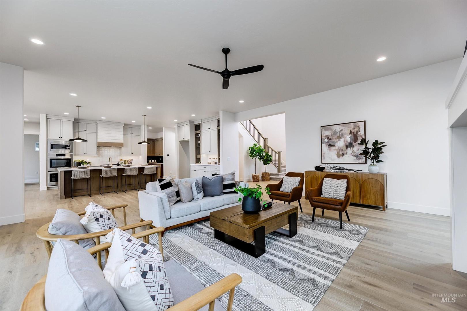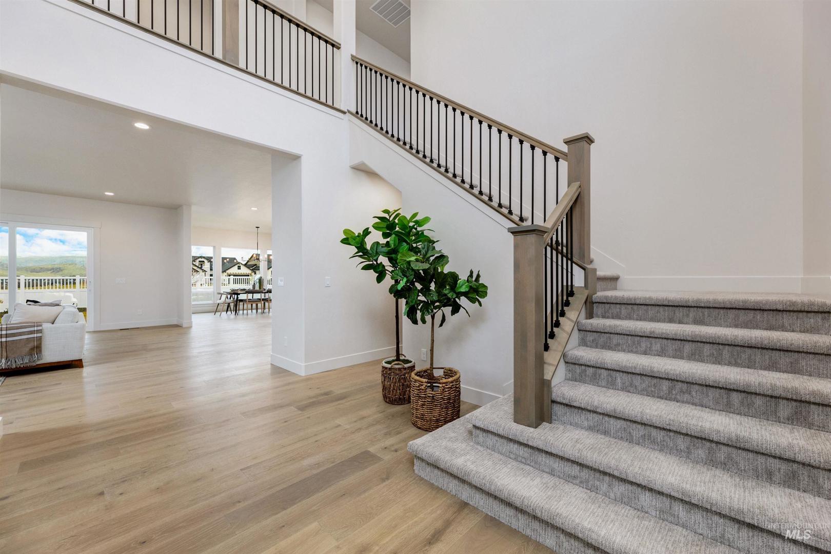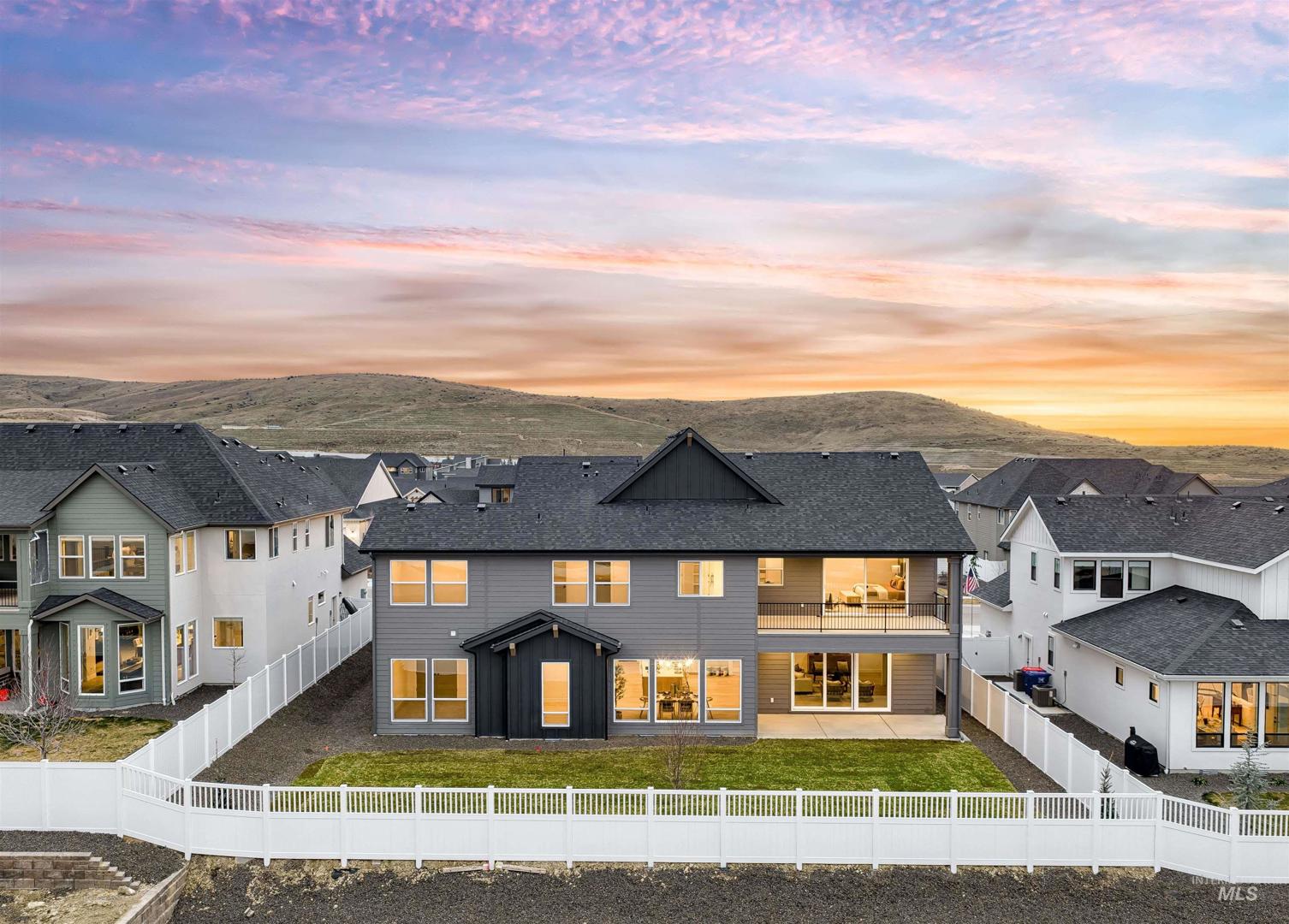 Last chance to save BIG! Season of Savings extended until February 10, 2026.Nothing says “Idaho” like an RV garage. Located in the gorgeous Eagle foothills, this home is your hub for recreation. Past the covered wraparound porch, the home flows into an open concept with soaring ceilings, a wall of windows, and glass multi-slide doors. The spacious great room features a fireplace opposite the gourmet kitchen, complete with tall cabinets, a buffet bar, and a wraparound butler’s pantry. A downstairs guest suite includes its own ensuite bath, while an upstairs loft adds flexible living space. The primary suite enjoys a covered balcony, morning room, and modern bathroom centered around a free-standing tub. A massive walk-in closet segues into the large laundry room for easy access. Now open, the Dry Creek Ranch Community Clubhouse spans five manicured acres, featuring courts, a pool, and an 8,840 sqft. clubhouse with state-of-the-art amenities. Home is ready now.