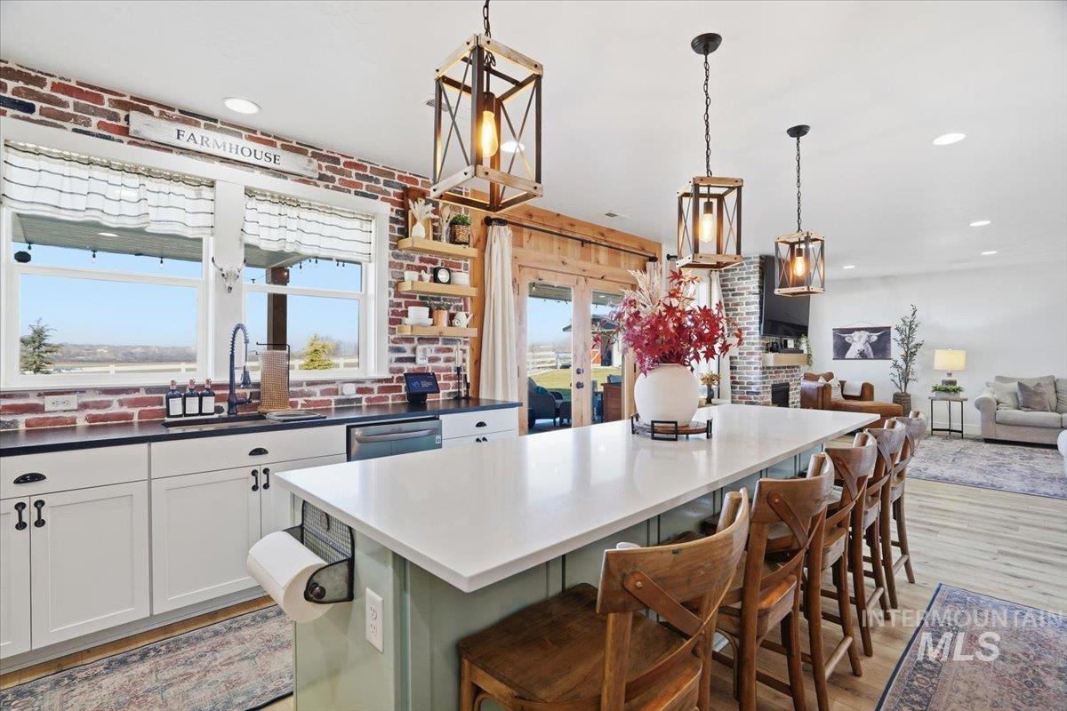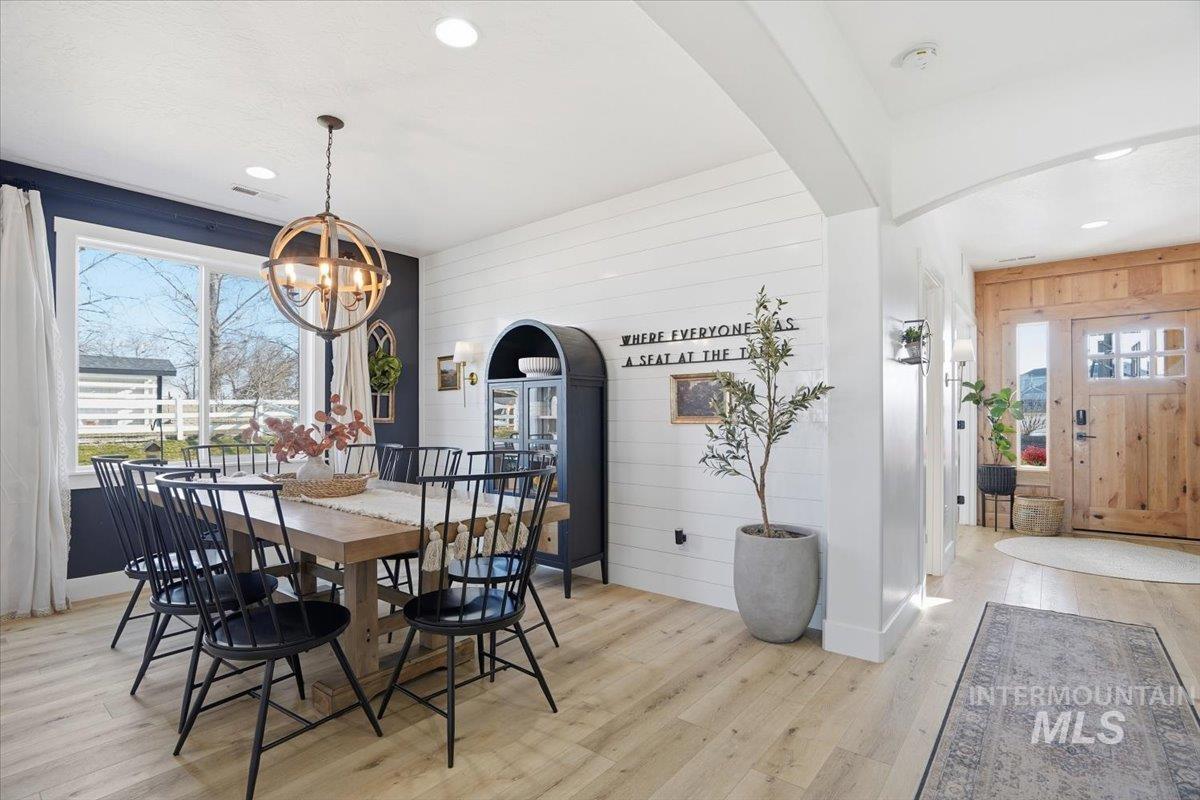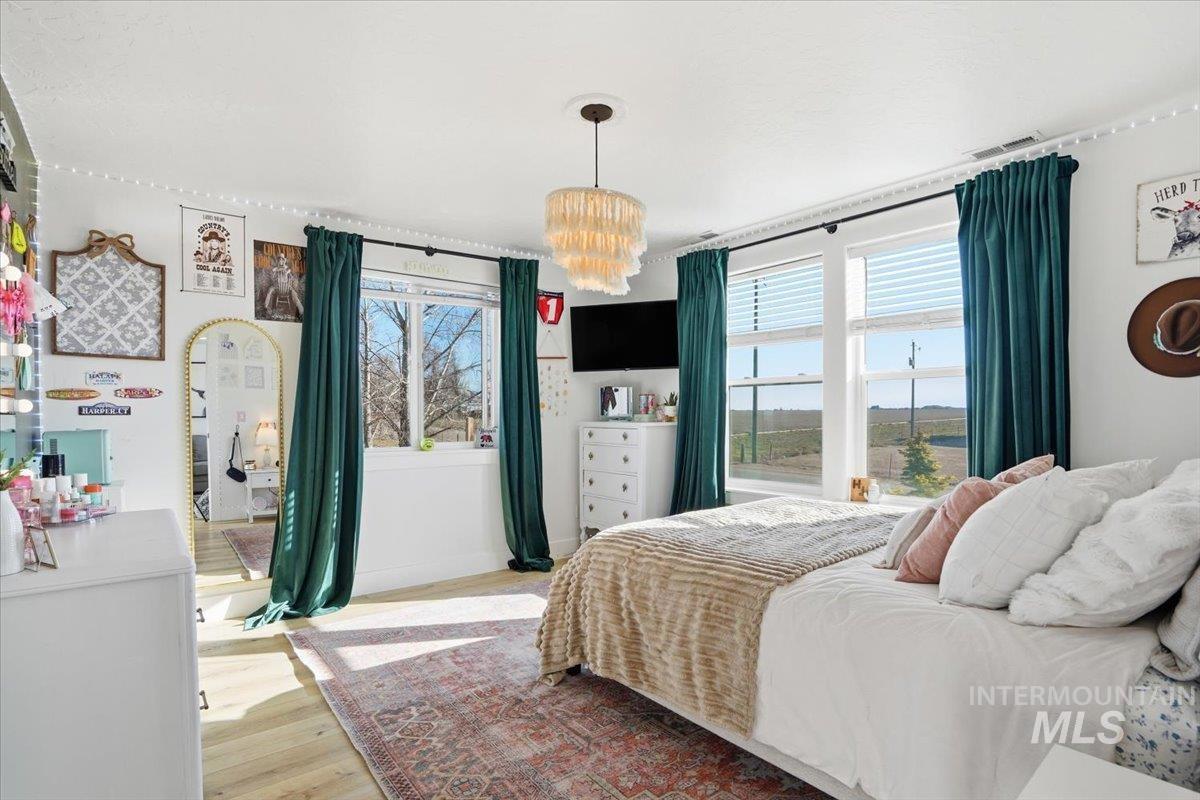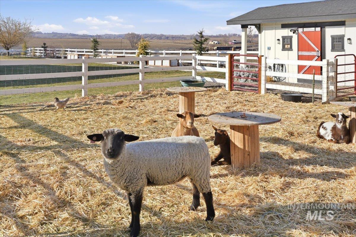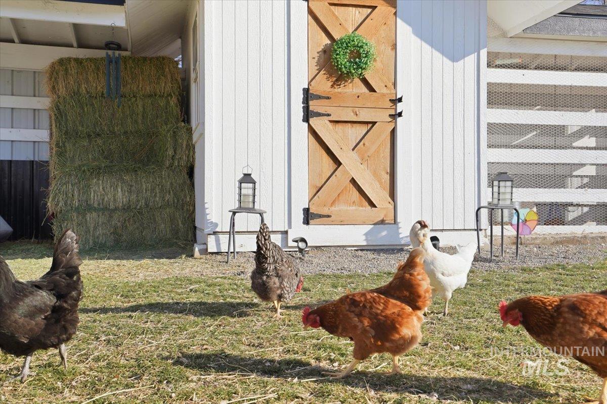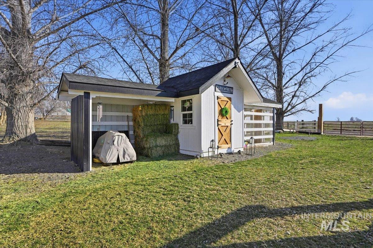 Welcome to this stunning two-story modern farmhouse, set on a full acre in peaceful Homedale. Better than new, this home features a 3-car garage, a 25` x 27` heated shop for boat, side-by-side, or woodworking, plus covered RV parking with hookups. Inside, an open floor plan showcases a kitchen with a large island—perfect for family meals or game night. With 4 bedrooms plus an office/flex with closet, there’s room for everyone. Relax under the full-length covered patio and take in majestic Owyhee Mountain views. The expansive lot is fully equipped for your country lifestyle, featuring a chicken coop, small pasture, and hay cover and tack shed with power—ideal for hobby farming or keeping animals. There’s also plenty of room for pets, gardens, or additional projects. Country living meets comfort and convenience in this exceptional property.