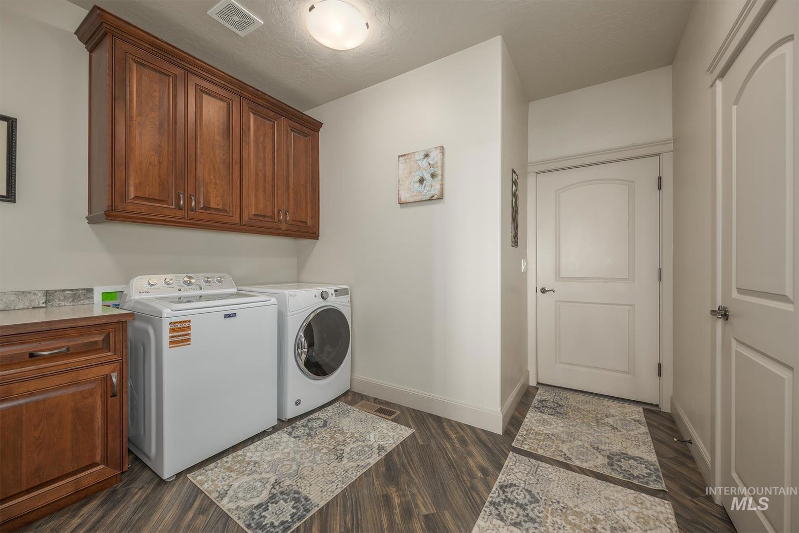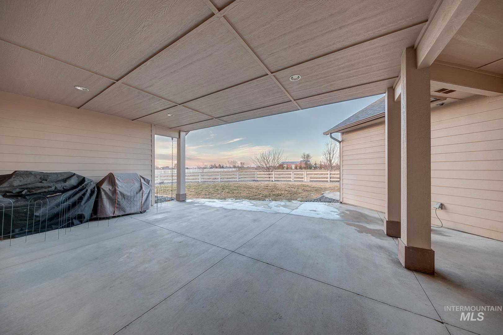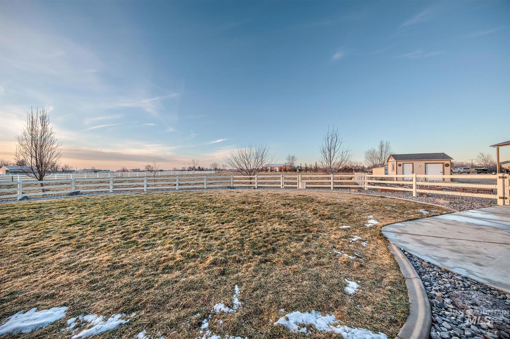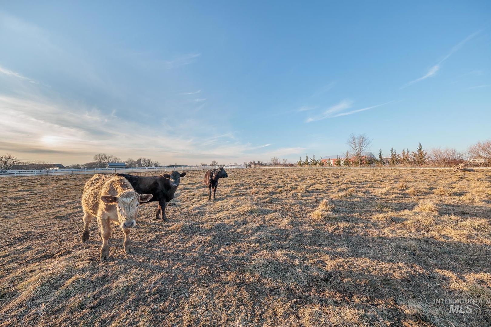 This stunning, custom single-level home and shop are situated on 5.01 acres down a private lane, offering a quiet country setting with the convenience of being close to town. This 2,352 sq ft, open-concept home, features 4 bedrooms, 2.5 baths, and no HOA. The interior boasts exquisite finish work with fully cased windows and gorgeous LVP flooring throughout. The kitchen is a chef’s dream, complete with custom cabinets, a double oven cooktop, two pantries, and a large Caesarstone island with bar seating. The expansive primary suite includes a deep walk-in closet, oversized walk-in tile shower, and an extra-large vanity. The home is also equipped with a whole-house water filtration system, a water softener, a plumbed central vacuum system, and a spacious laundry room with a sink. The exterior features large covered patios, low-maintenance landscaping, and wonderful views. In addition to the attached oversized 3 car garage with a half bath, the property includes a detached 34x36 heated and cooled shop with drive thru garage doors and a lean-to that provides a total of 48x48 feet of covered space. Additional amenities include RV hookup, a 8x10 garden shed, raised garden beds, and a 12x36 loafing shed. The property also features a fully fenced pasture with irrigation, gated pipe, and frost-free hydrants.