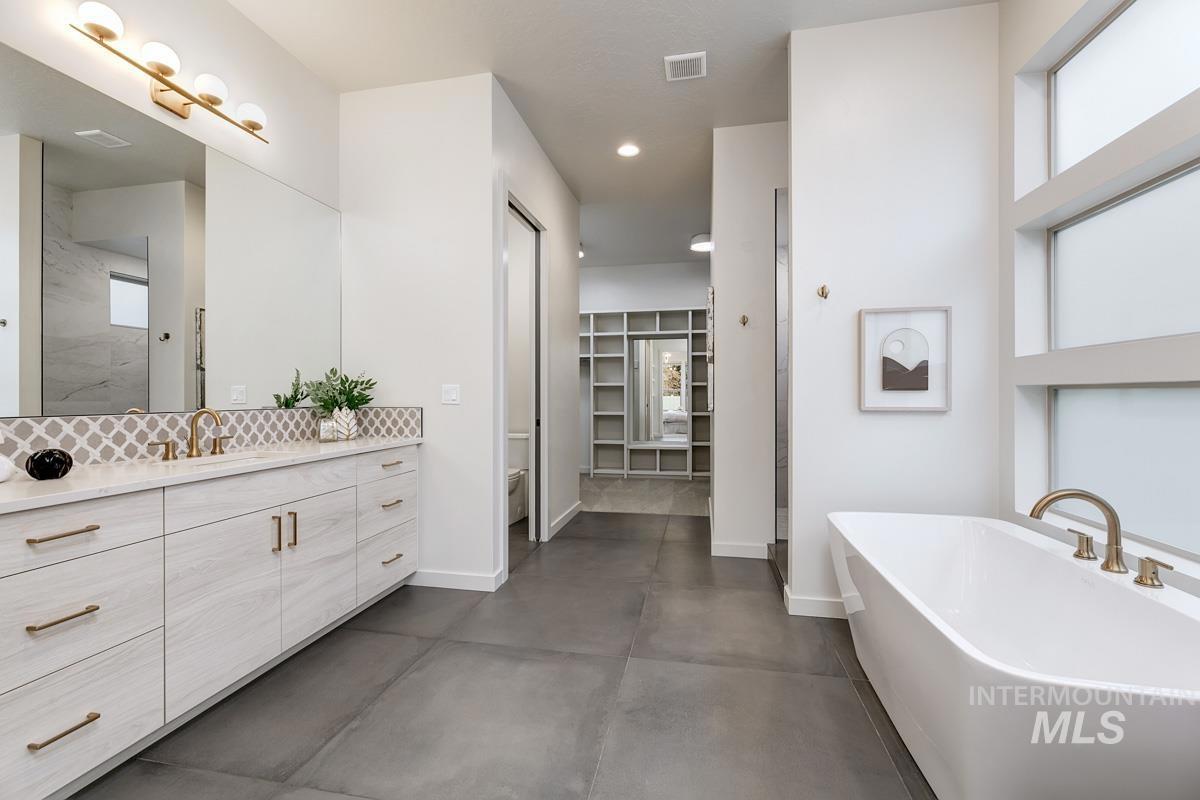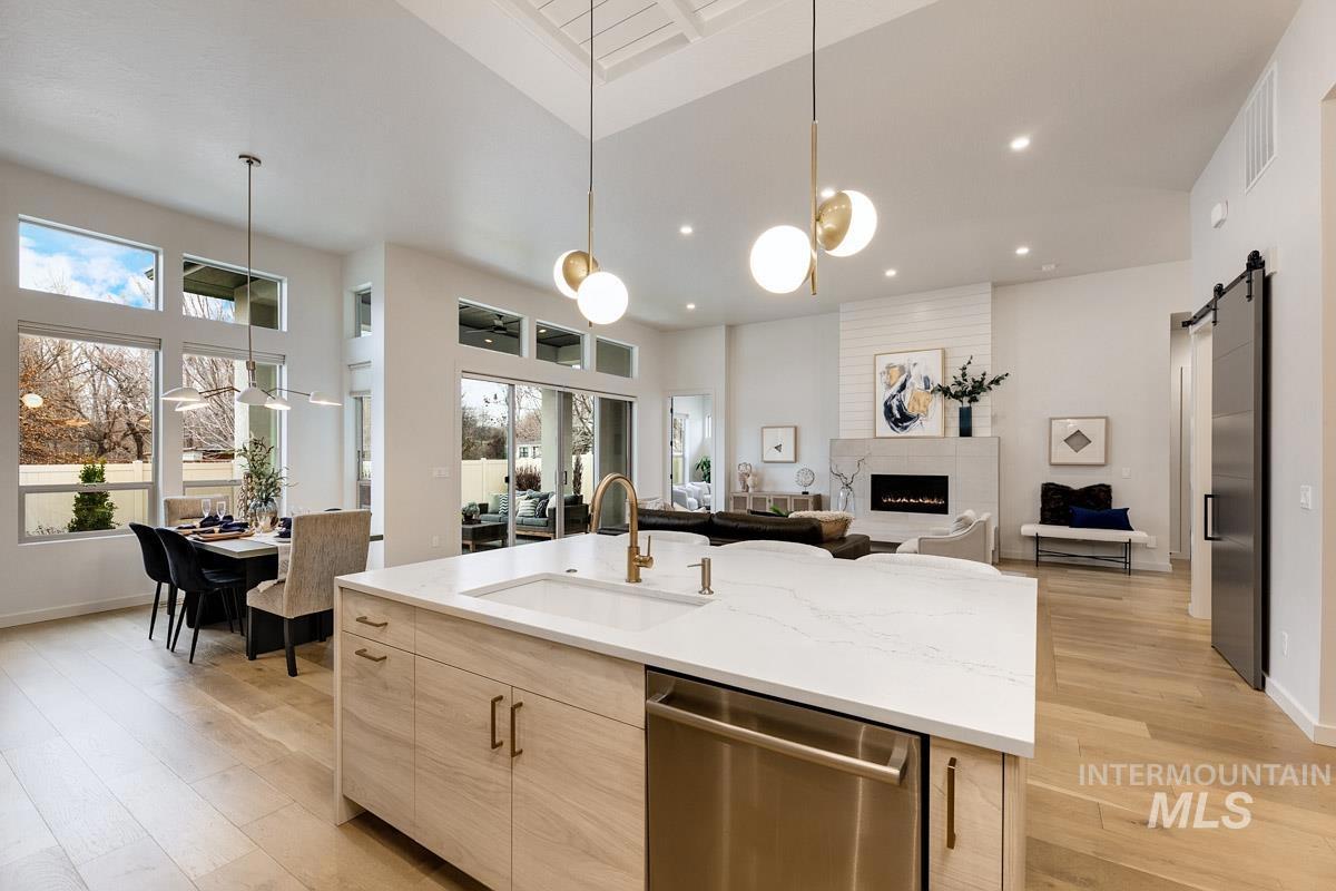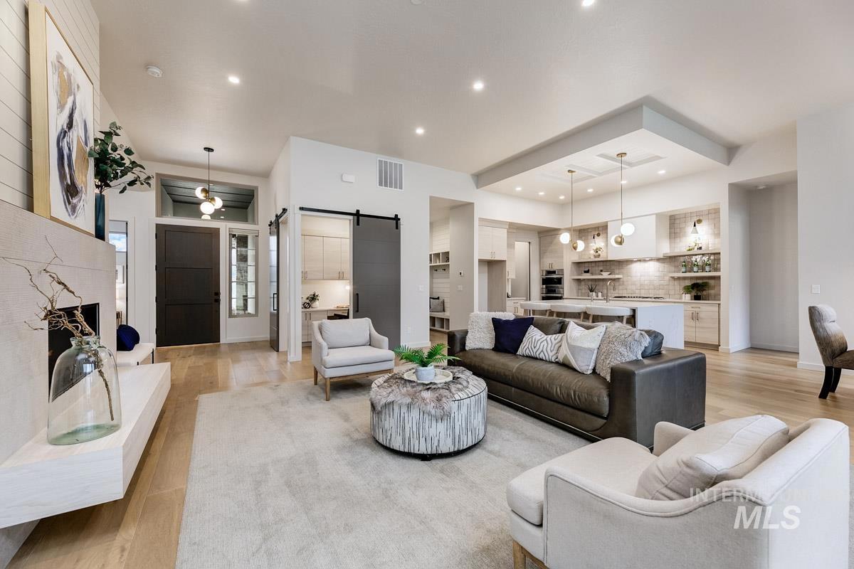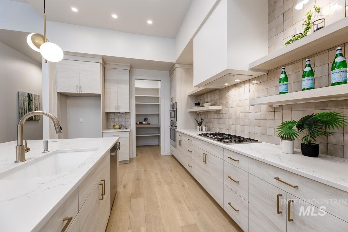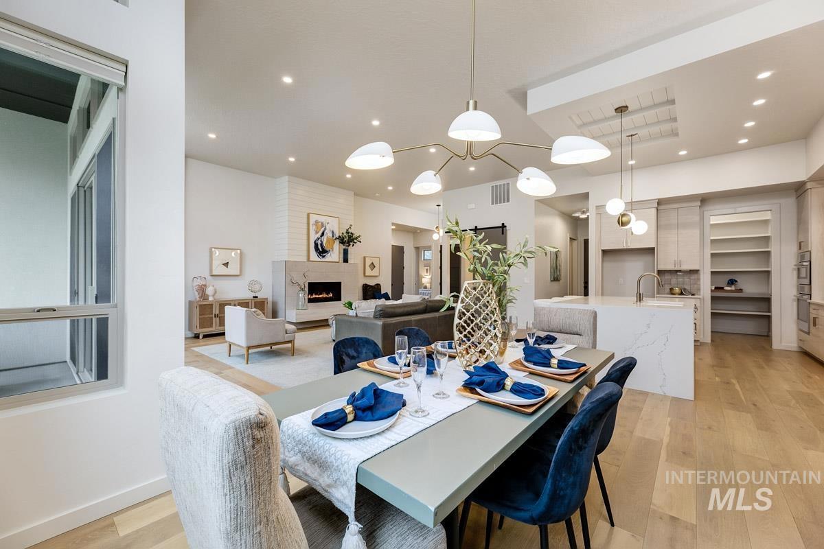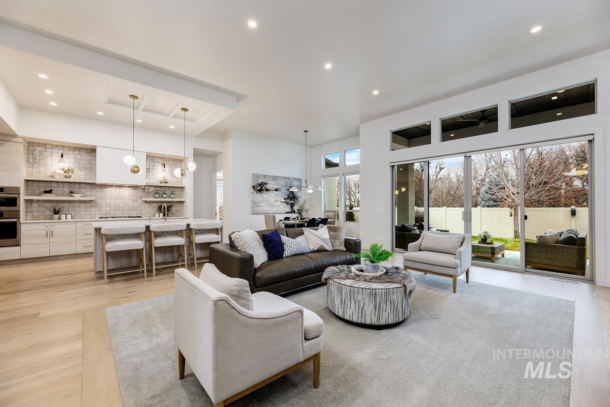 From the moment you enter, this home feels completely different. It’s composed, sophisticated, cohesive – with finishes found in homes double the price. Attention to detail everywhere: high ceilings, designer-selected elements, picture windows, and a thoughtfully curated palette create a light, airy ambiance that feels both elevated and livable. The character is undeniable, as the open-concept floor plan flows seamlessly, anchored by a striking gas fireplace column on one side to a tiled statement wall on the other. The kitchen is as beautiful as it is functional—designed to perform without sacrificing style. BOSCH appliances, a walk-in pantry, custom tile work, and a waterfall quartz island create a natural focal point that connects all the living areas. The owner’s suite was intentionally designed to feel calm, restorative, and indulgent. The expansive bath features dual vanities, a custom tile walk-in shower, a stand-alone soaking tub, and a large walk-in closet—every detail thoughtfully selected to elevate the daily experience. Outdoors, the backyard offers a rare sense of quiet with no back neighbors and a generous covered patio ready for year-round enjoyment. Tucked into a peaceful pocket of downtown Eagle with no through traffic, the home offers privacy without isolation in a boutique neighborhood only 2 minutes from the Greenbelt and downtown Eagle.