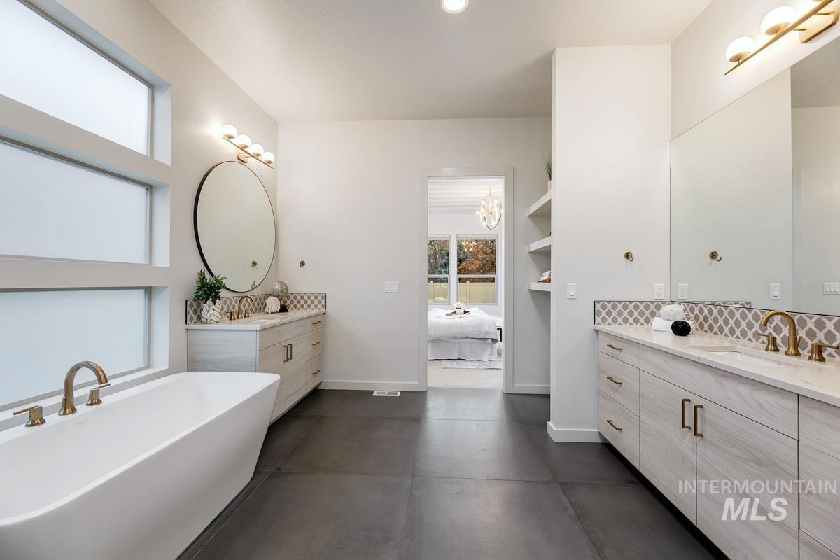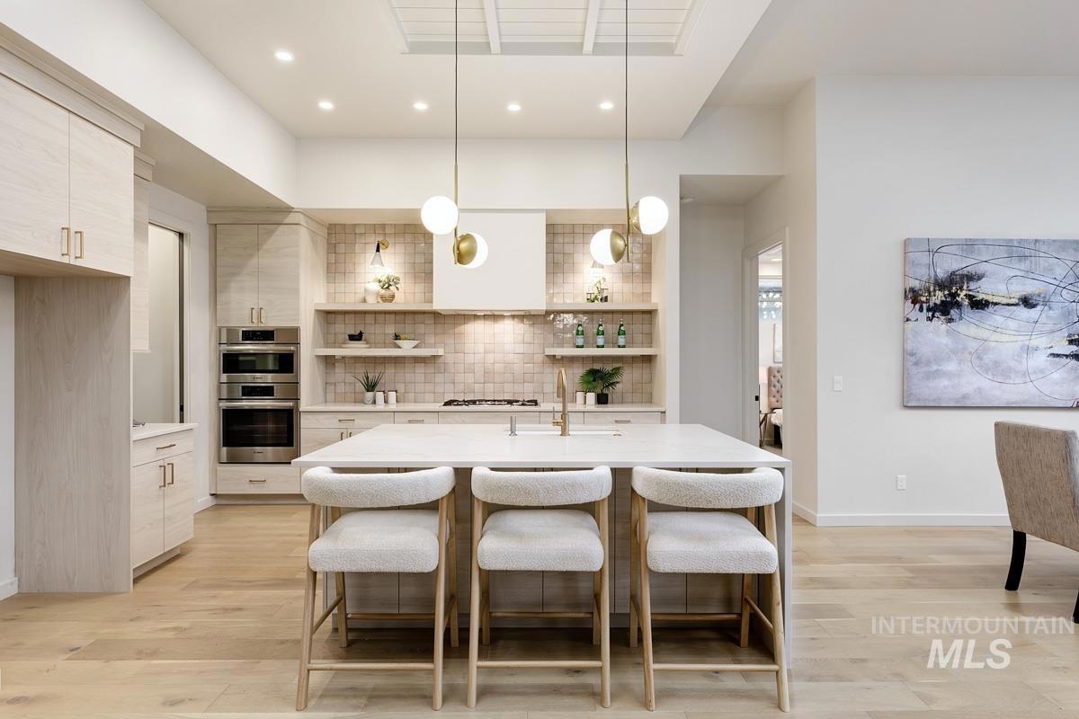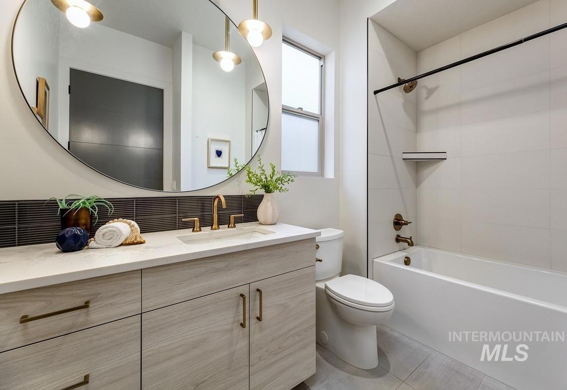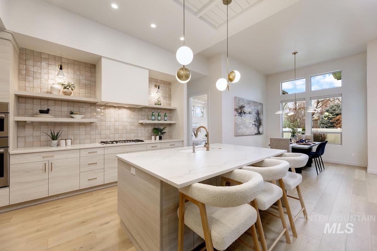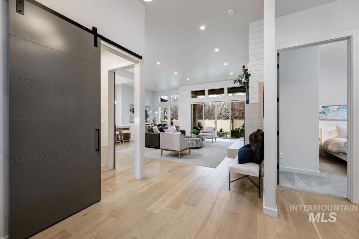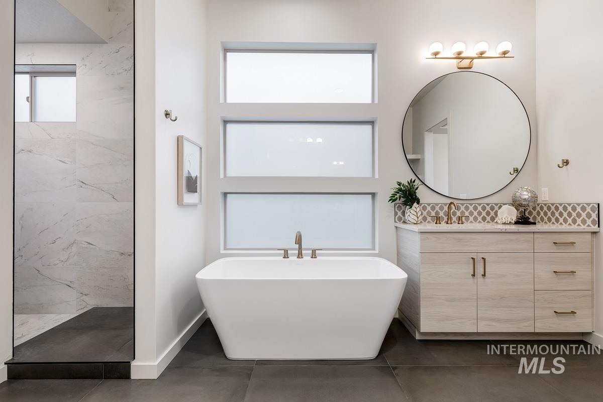 From the moment you enter, this home feels completely different. It’s composed, sophisticated, cohesive – with finishes found in homes double the price. Attention to detail everywhere: high ceilings, designer-selected elements, picture windows, and a thoughtfully curated palette create a light, airy ambiance that feels both elevated and livable. The character is undeniable, as the open-concept floor plan flows seamlessly, anchored by a striking gas fireplace column on one side to a tiled statement wall on the other. The kitchen is as beautiful as it is functional—designed to perform without sacrificing style. BOSCH appliances, a walk-in pantry, custom tile work, and a waterfall quartz island create a natural focal point that connects all the living areas. The owner’s suite was intentionally designed to feel calm, restorative, and indulgent. The expansive bath features dual vanities, a custom tile walk-in shower, a stand-alone soaking tub, and a large walk-in closet—every detail thoughtfully selected to elevate the daily experience. Outdoors, the backyard offers a rare sense of quiet with no back neighbors and a generous covered patio ready for year-round enjoyment. Tucked into a peaceful pocket of downtown Eagle with no through traffic, the home offers privacy without isolation in a boutique neighborhood only 2 minutes from the Greenbelt and downtown Eagle.