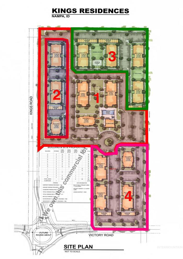 Introducing an exceptional investment opportunity in the heart of Nampa, Idaho—a proposed 300-unit apartment complex strategically located on 14.16 acres of multifamily zoned land at 3126 E Victory Rd. This project is poised to become a cornerstone of the community, offering modern living spaces in a rapidly growing area that is attracting residents seeking convenience, comfort, and quality. The property is currently zoned RMH = Multiple-Family Residential with approved plans and permits. This project is ready for development, minimizing the time to prepare plans and specifications. The project can also be purchased fully constructed for $83,000,000.00. This listing is for the land with the building plans for a 300 unit apartment complex only.