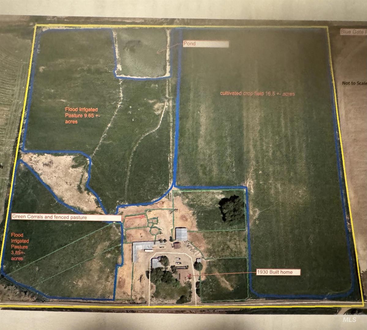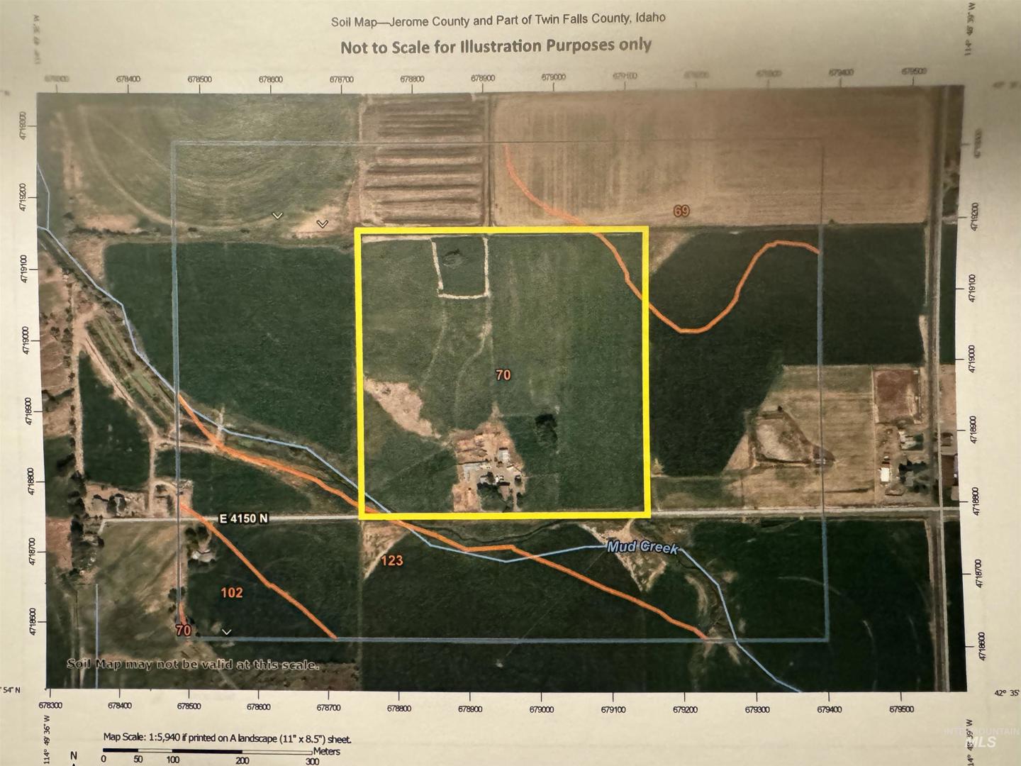 Take Hwy 30 East past Buhl, turn South on N 1200 E, turn West on E 4150 N, West to the Property on the right, dead end road.