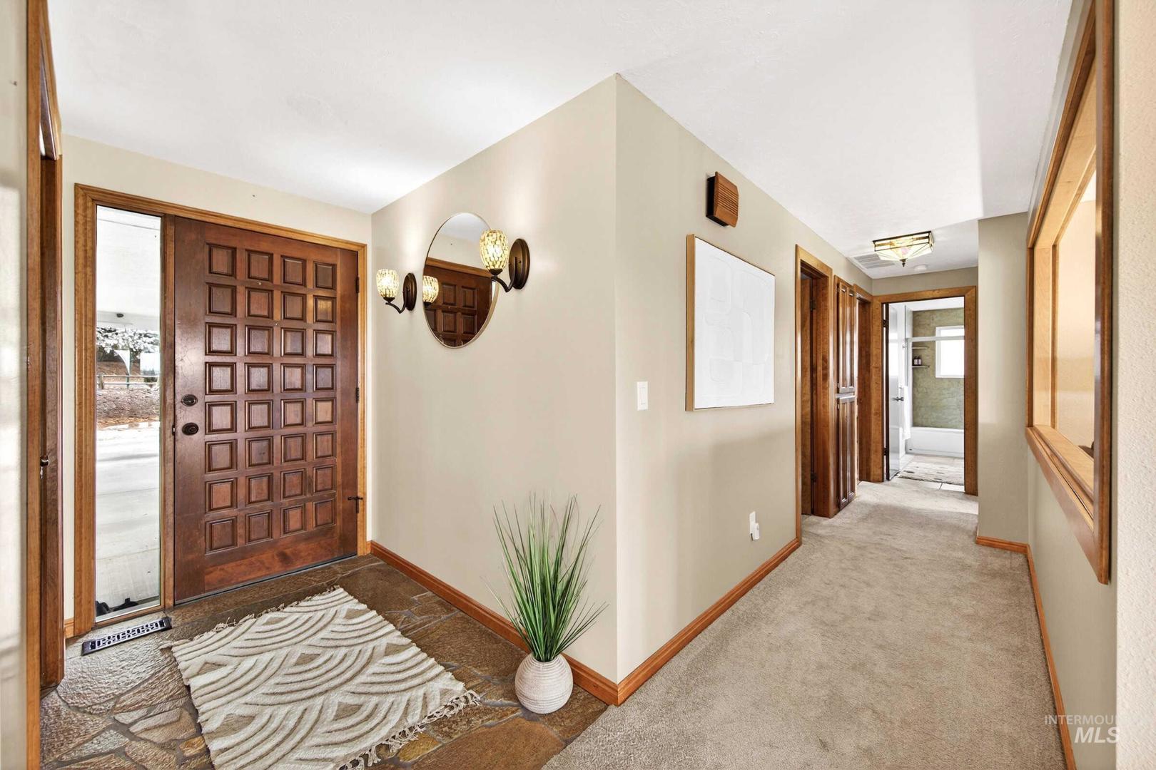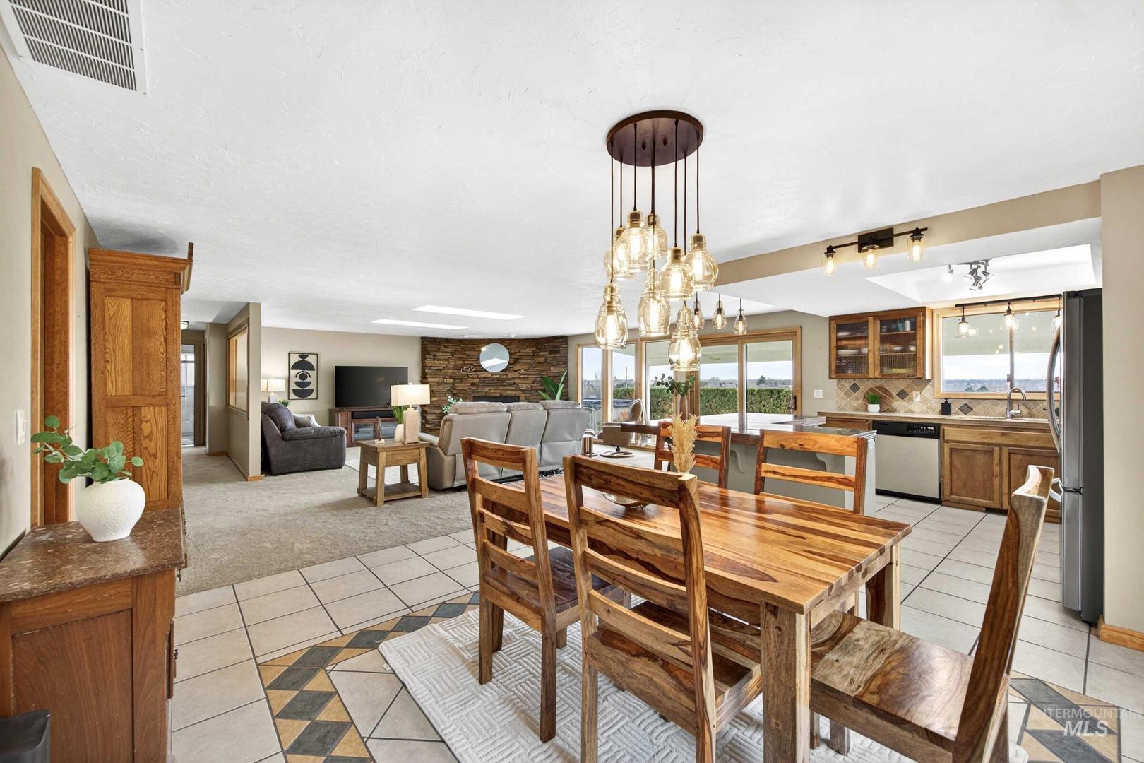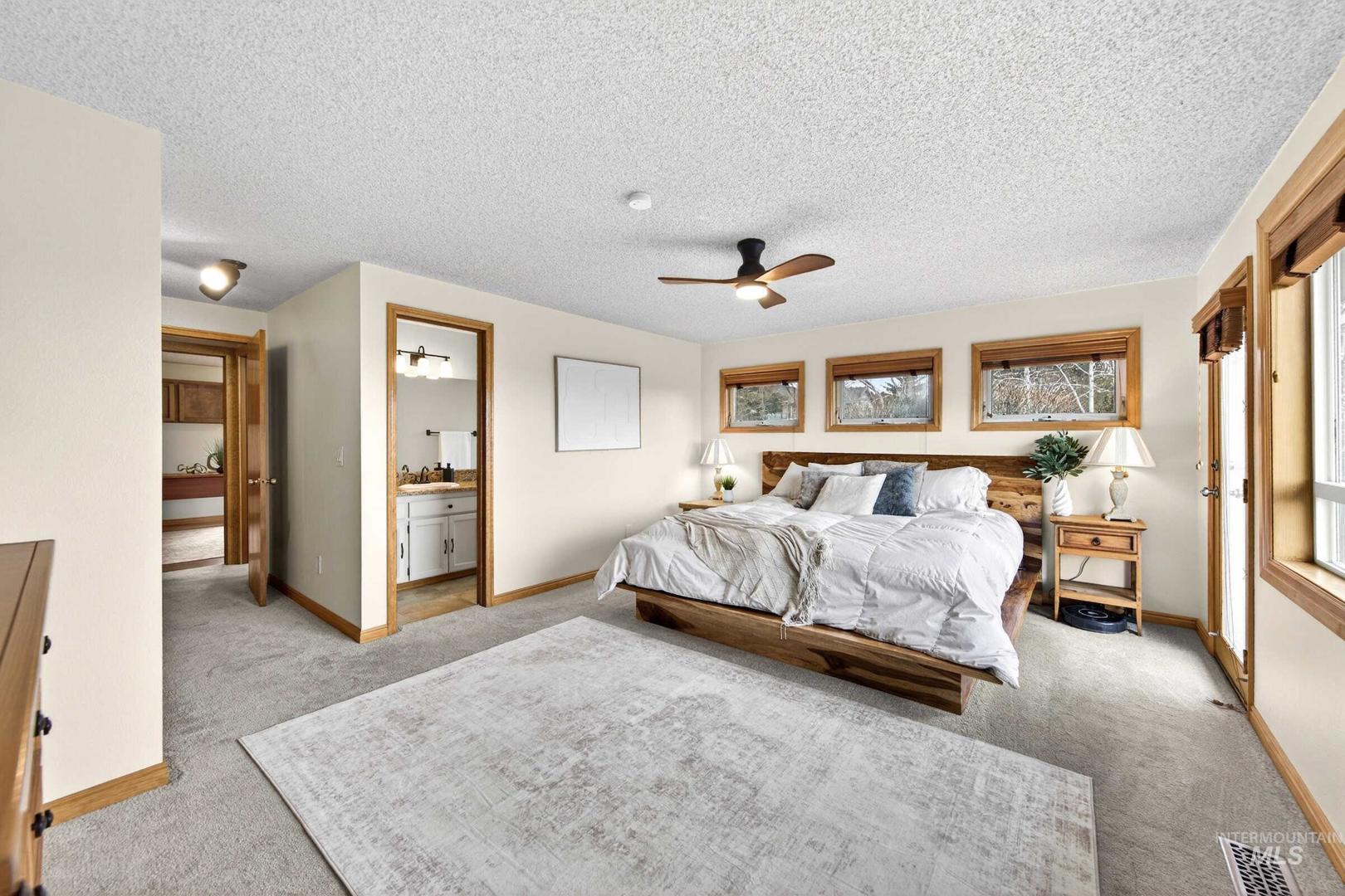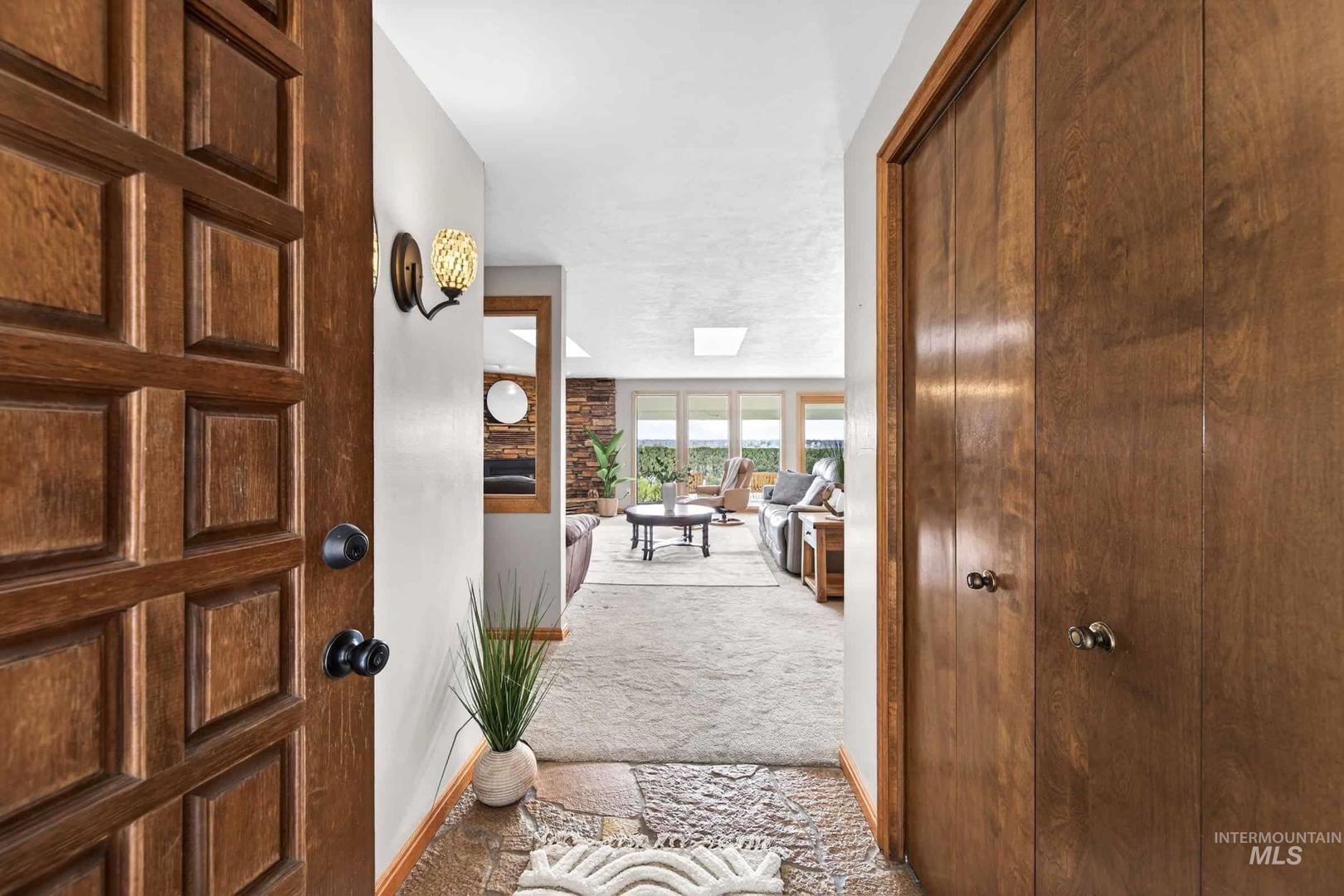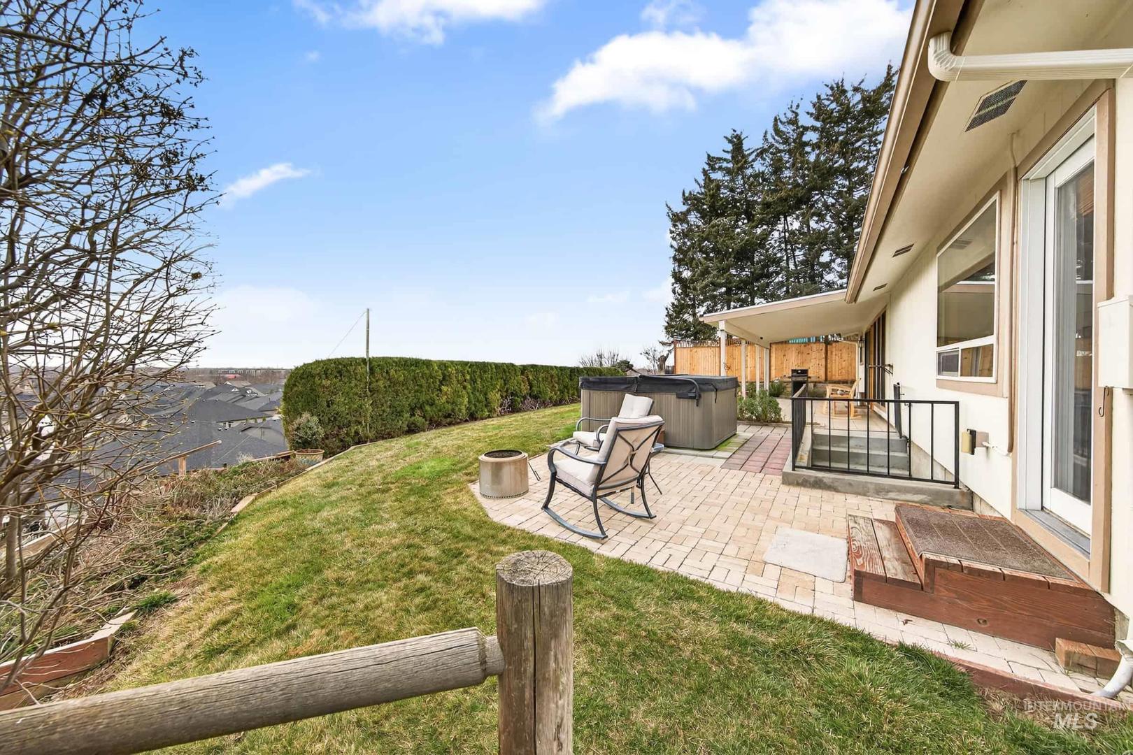 Escape to a private retreat perched above the valley in the timeless Eagle Hills golf course community. Nestled on a quiet Cul-d-sac, this residence enjoys ultimate privacy and a sense of seclusion that’s naturally provided from being set on your own enchanting hillside. The peaceful backyard oasis boasts unobstructed views of the Owyhee Mountains, gorgeous sunrise & sunset views, firework shows from all directions, a terraced vegetable garden, and a plethora of beautiful perennial flowers. The interior is designed to capture the scenery, featuring a highly functional layout where the great room, open kitchen, and dining areas seamlessly incorporate sweeping vistas into your daily living experience. This connection to the outdoors extends to the generous primary suite, a personal sanctuary complete with its own captivating views and direct patio access where a hot tub awaits to unwind. While still enjoying the benefits of a well kept neighborhood, this property offers no HOA dues or CC&Rs, granting you the freedom to utilize the RV parking and the expansive driveway. Exceptional utility is found in the OVERSIZED GARAGE plus a massive BASEMENT/STORAGE room below the home accessed from the backyard. Located minutes from the golf course, foothills and downtown Eagle, this is a unique opportunity to enjoy easy living and a quiet, view-inspired lifestyle.