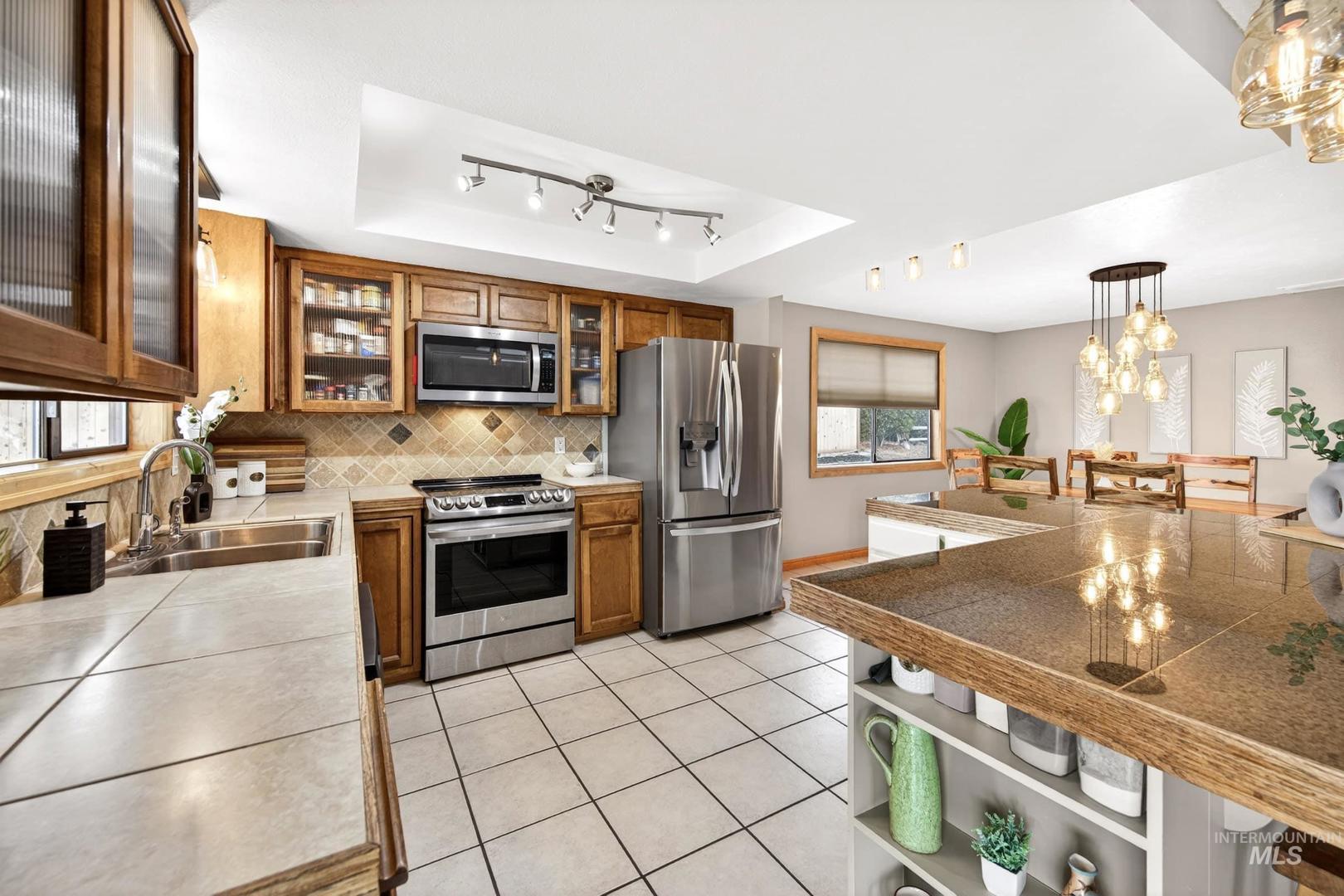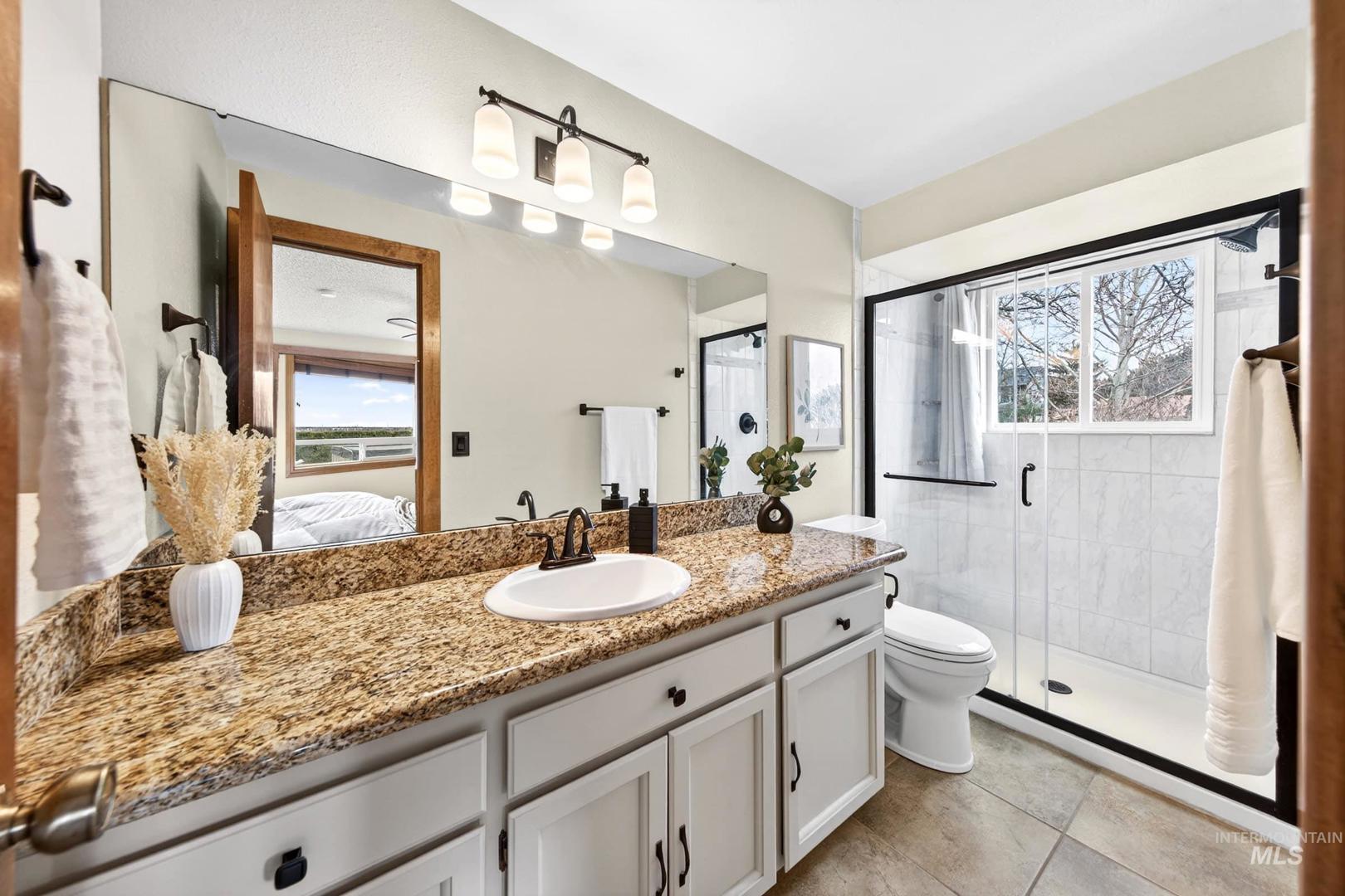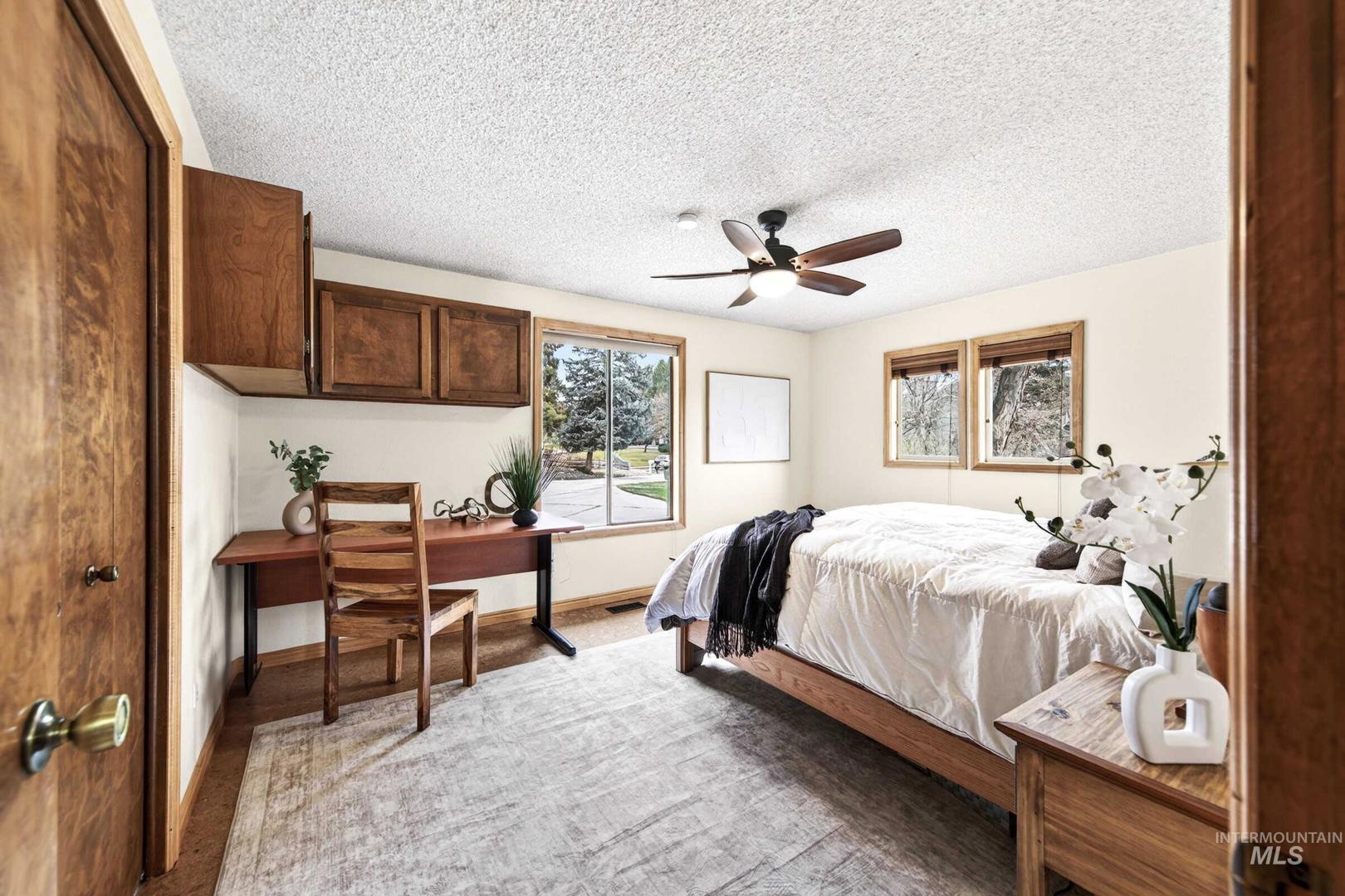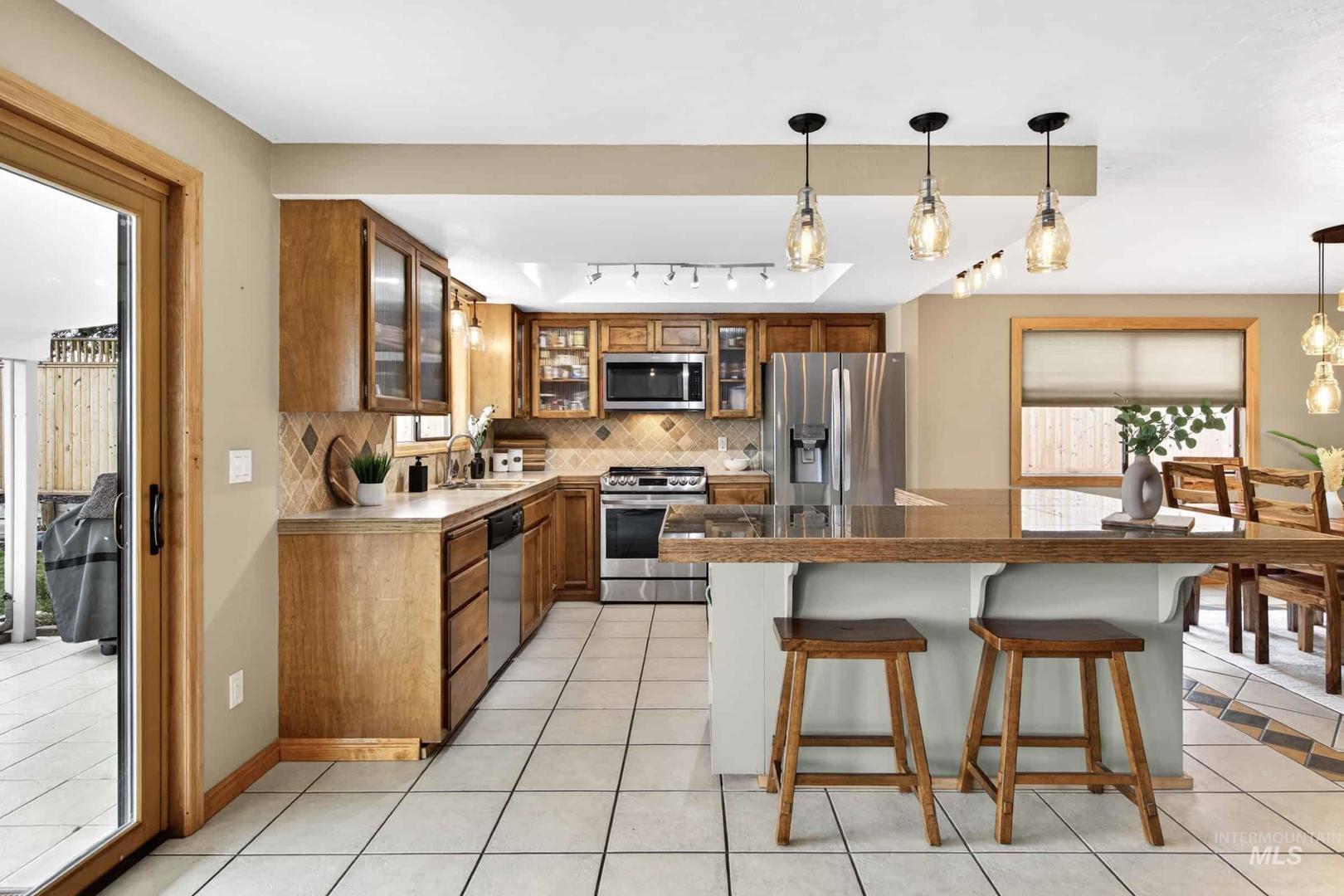 Escape to a private retreat perched above the valley in the timeless Eagle Hills golf course community. Nestled on a quiet Cul-d-sac, this residence enjoys ultimate privacy and a sense of seclusion that’s naturally provided from being set on your own enchanting hillside. The peaceful backyard oasis boasts unobstructed views of the Owyhee Mountains, gorgeous sunrise & sunset views, firework shows from all directions, a terraced vegetable garden, and a plethora of beautiful perennial flowers. The interior is designed to capture the scenery, featuring a highly functional layout where the great room, open kitchen, and dining areas seamlessly incorporate sweeping vistas into your daily living experience. This connection to the outdoors extends to the generous primary suite, a personal sanctuary complete with its own captivating views and direct patio access where a hot tub awaits to unwind. While still enjoying the benefits of a well kept neighborhood, this property offers no HOA dues or CC&Rs, granting you the freedom to utilize the RV parking and the expansive driveway. Exceptional utility is found in the OVERSIZED GARAGE plus a massive BASEMENT/STORAGE room below the home accessed from the backyard. Located minutes from the golf course, foothills and downtown Eagle, this is a unique opportunity to enjoy easy living and a quiet, view-inspired lifestyle.