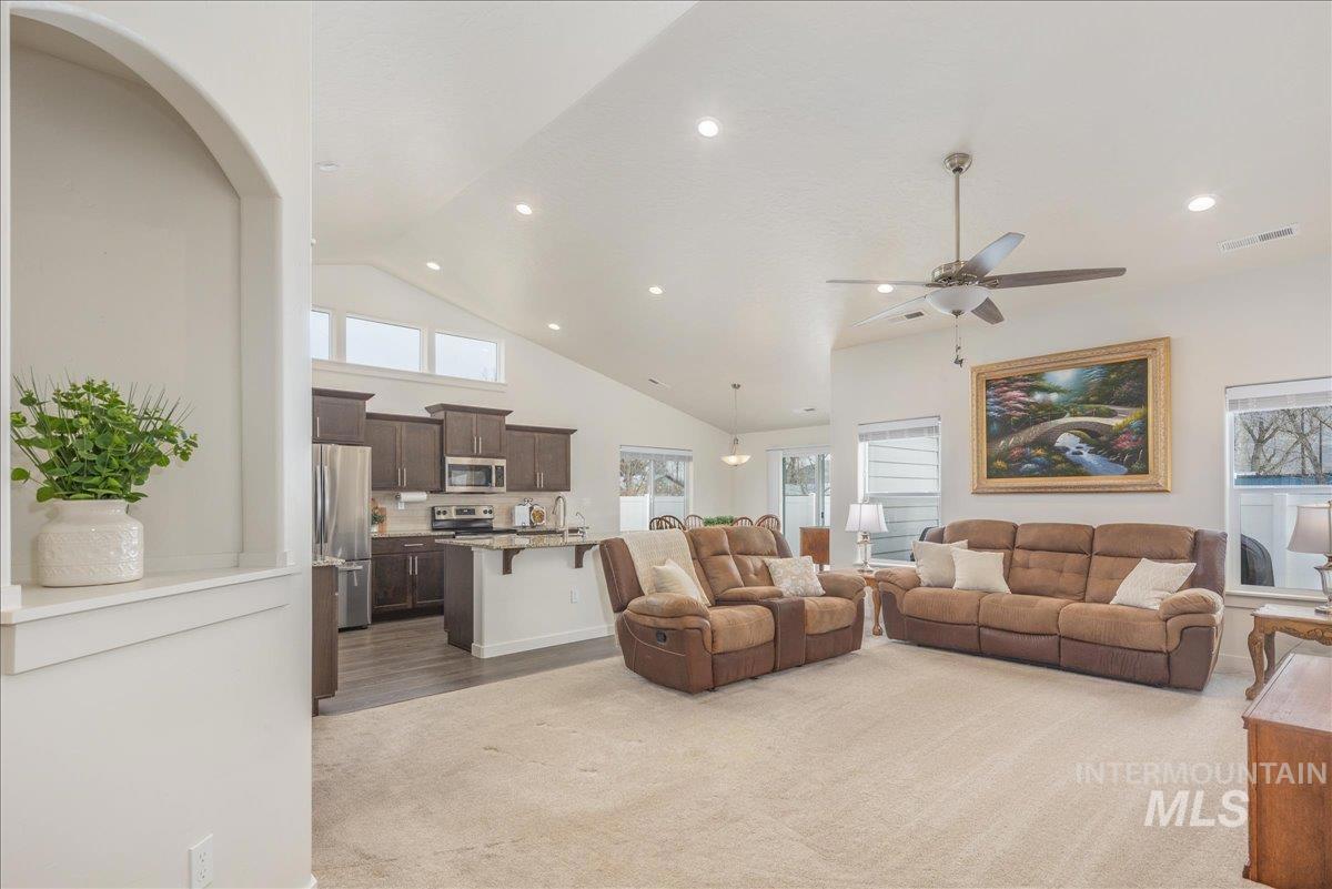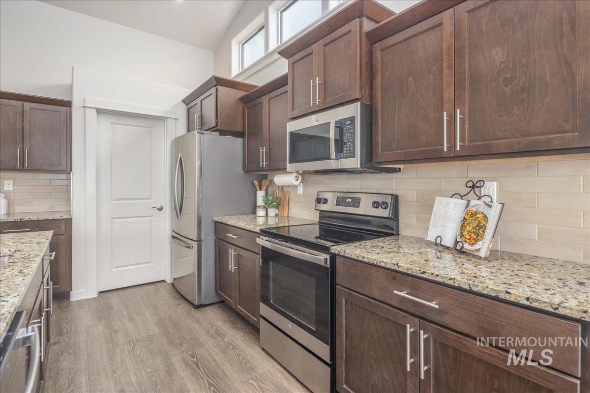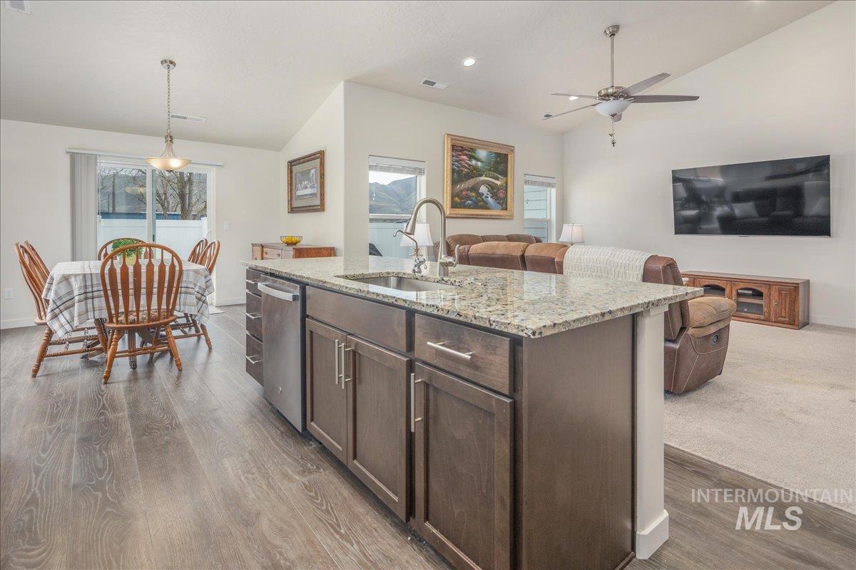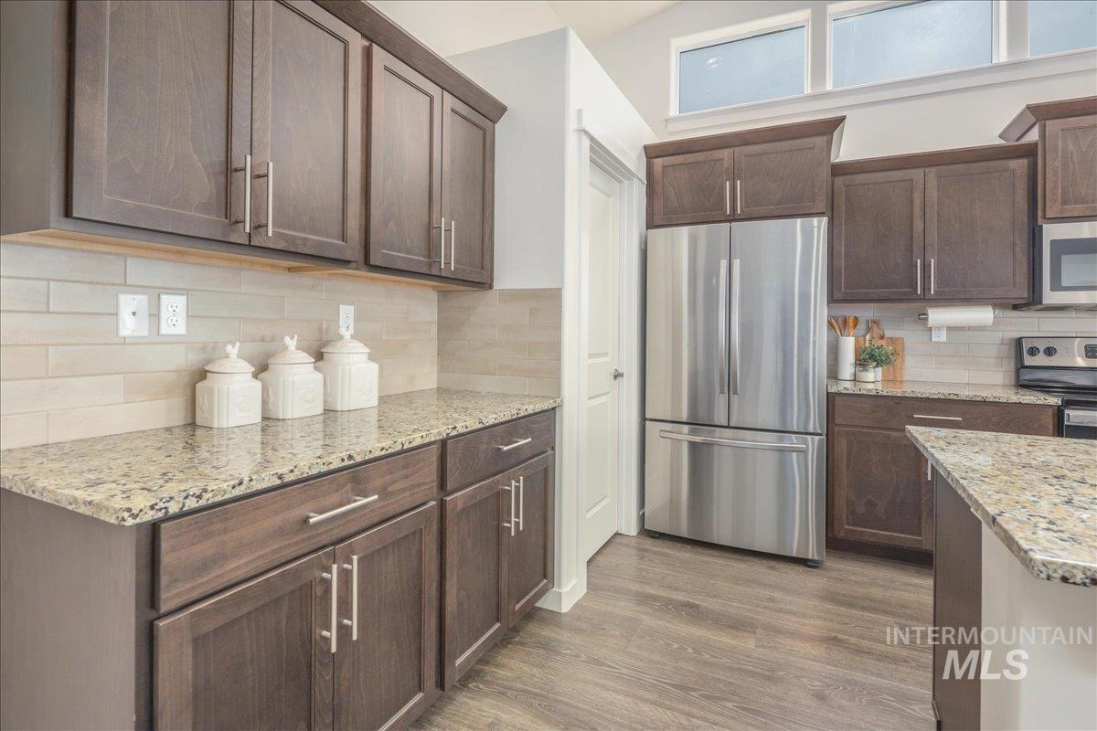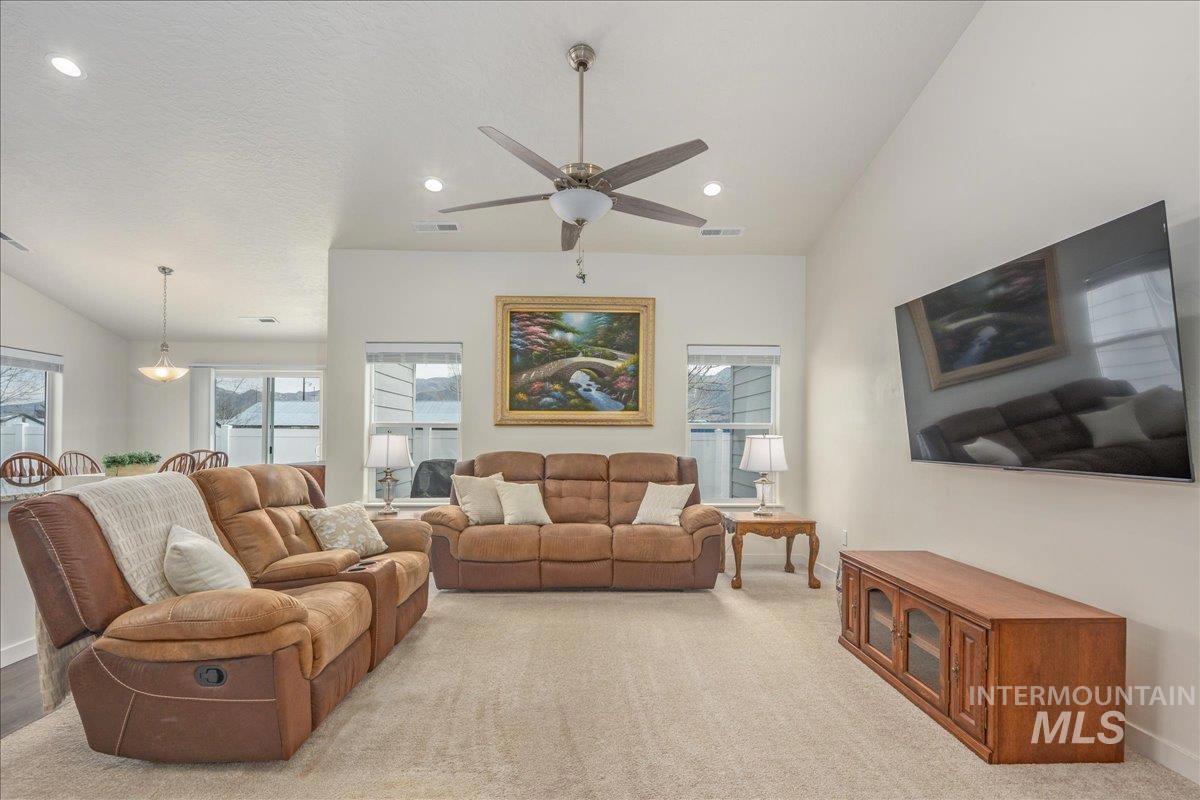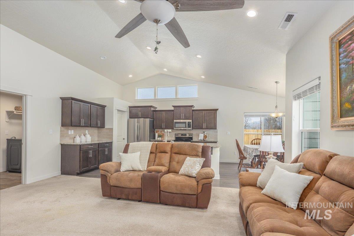 Welcome home to serene country living in this inviting single story home, perfectly nestled in a quiet subdivision surrounded by mountain views. You’ll be greeted with a bright and airy living room which flows seamlessly into the dining & kitchen area, ideal for everyday living. The kitchen is equipped with stainless steel appliances, a walk in pantry, plenty of cabinetry, windows, and granite countertops that add both style and durability. The primary bedroom features a vaulted ceiling, walk in closet, and en suite bathroom. The extra 4` deep garage offers ample space for vehicles, storage, or a workshop, while the spacious bedrooms provide flexibility for family, guests, exercise room, or a home office. Step outside and enjoy peaceful views of the surrounding mountains, creating a serene backdrop to enjoy peaceful easy living year round. This home offers the perfect blend of modern finishes, practical space, and classic Idaho beauty. Don’t miss the opportunity to make it yours!