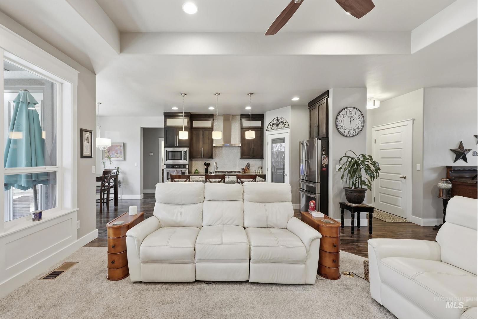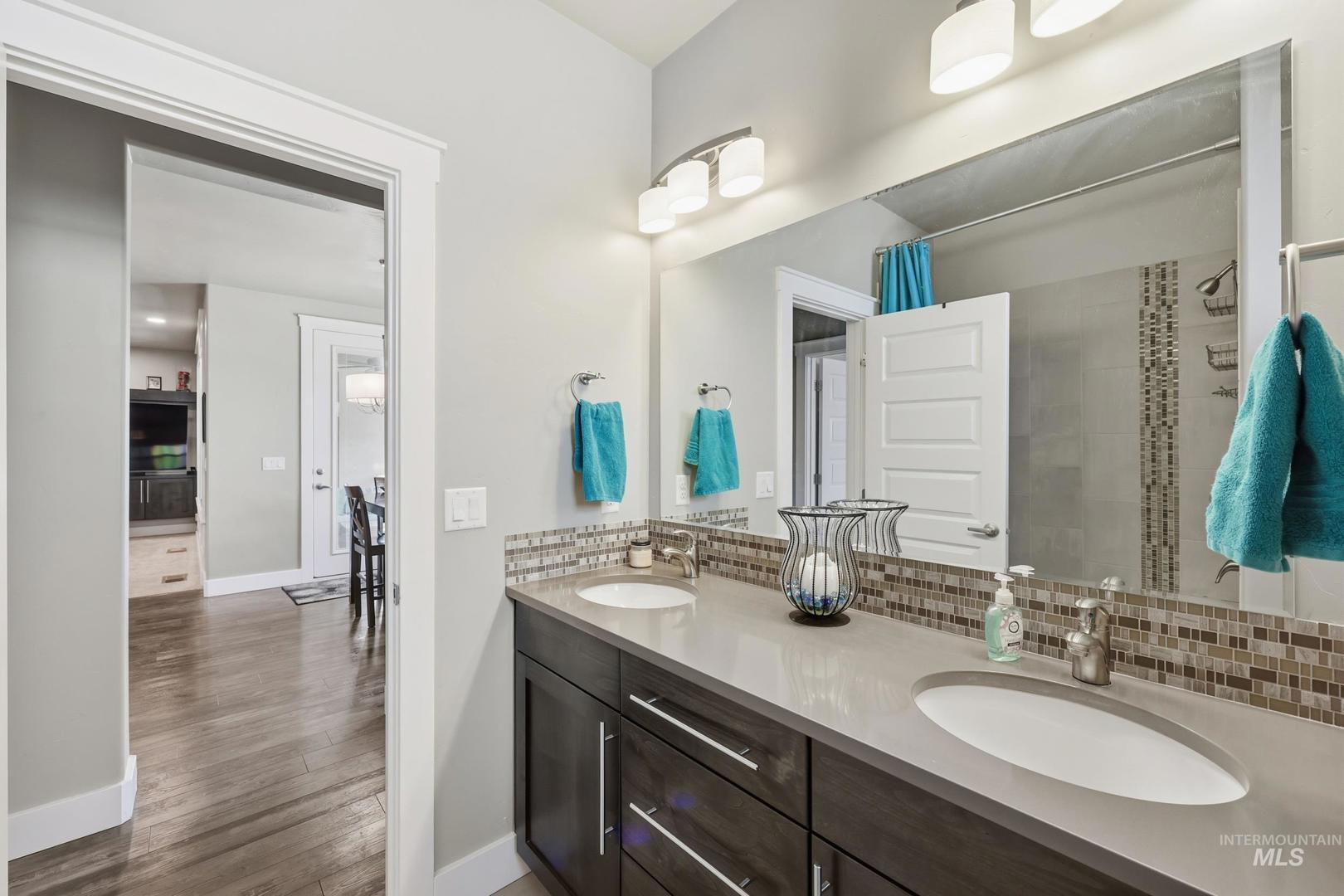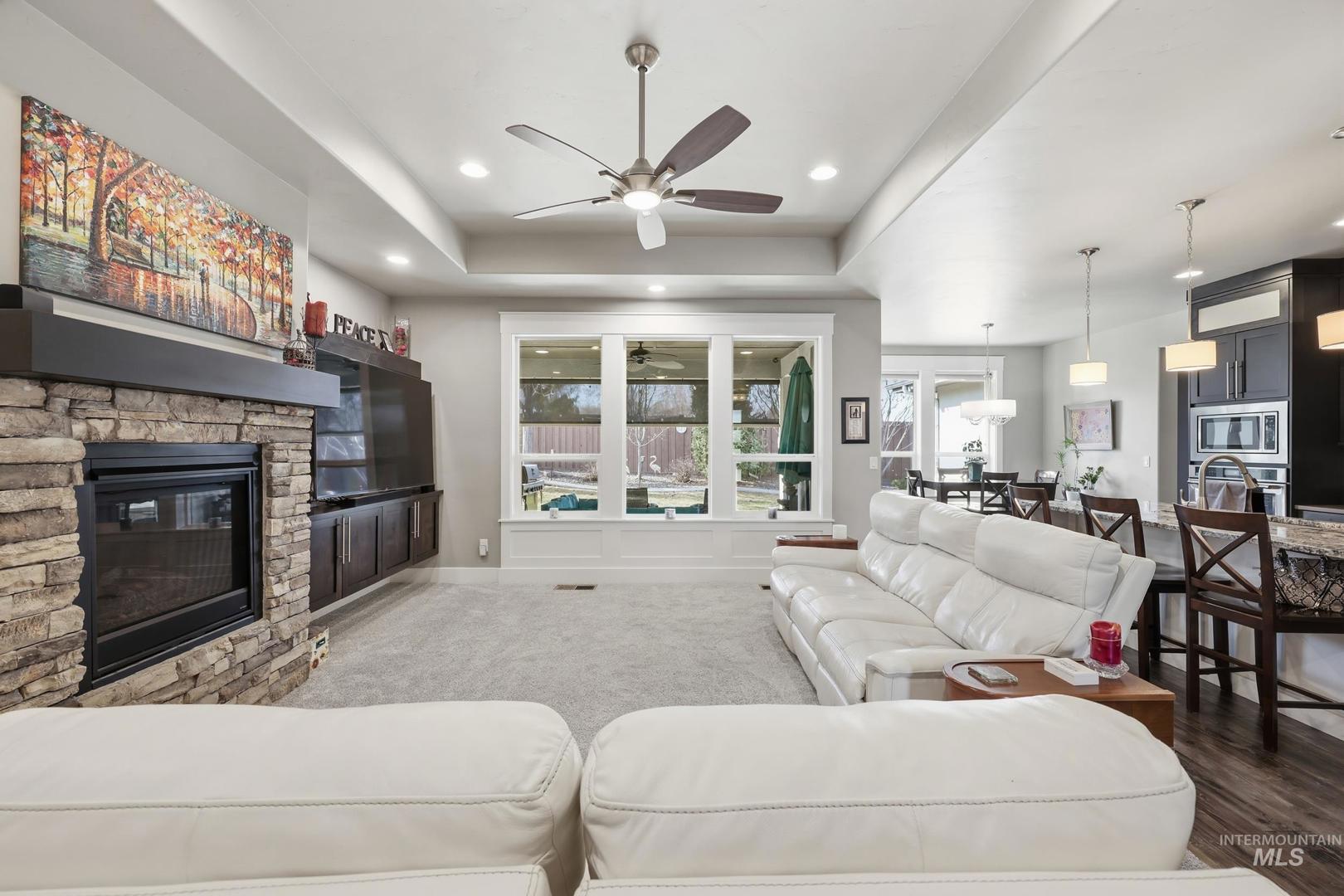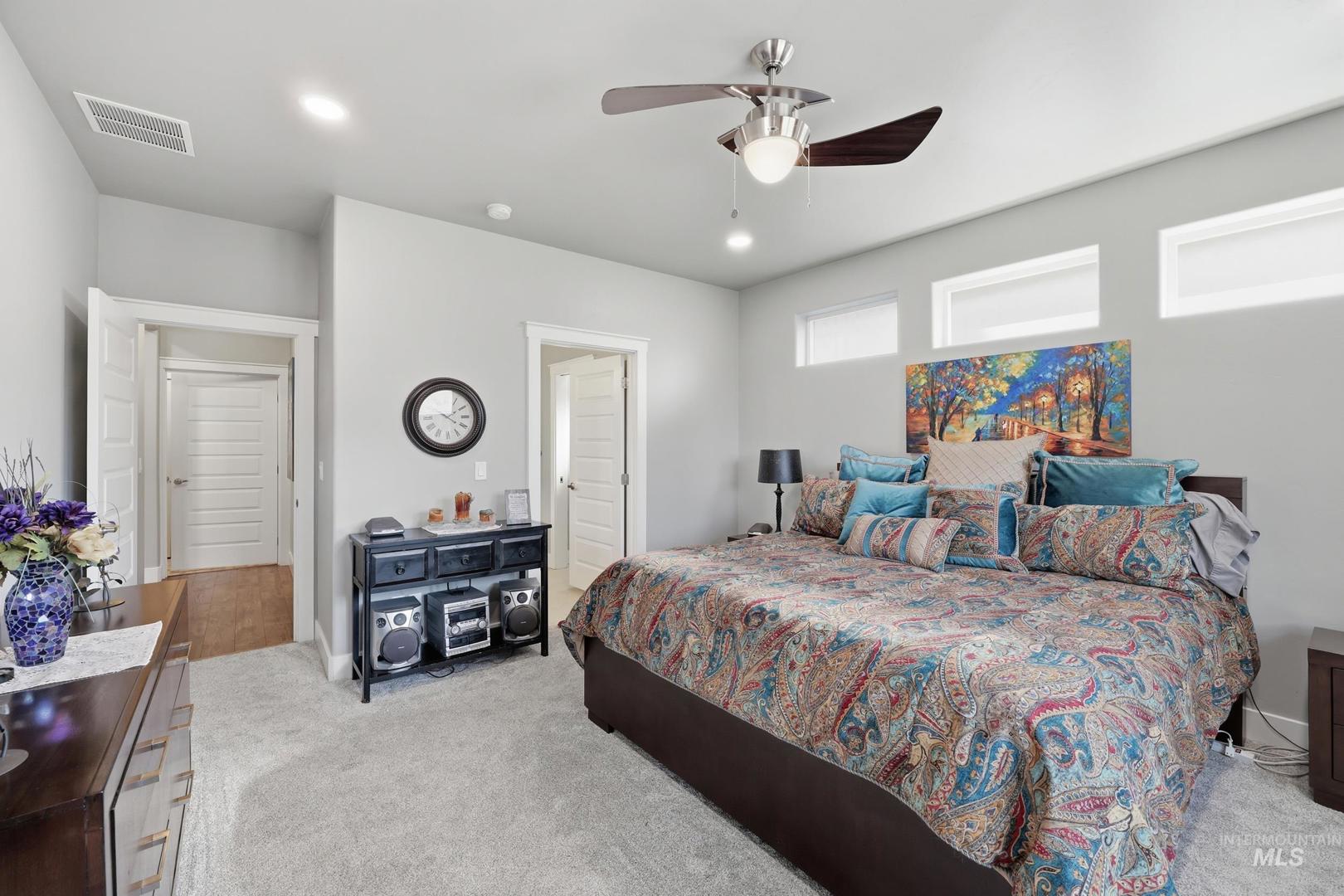 Custom-built single-level residence located in Hazelwood Village. This home offers 3 bedrooms, 2 bathrooms, and a spacious office. The open great room includes a gas fireplace with built-in cabinets. The kitchen features a breakfast bar, walk-in pantry with a wine and coffee bar. The spacious primary bdrm offers recessed lighting and has access to the covered patio. Ensuite includes a large closet and walk-in shower. The functional floor plan provides comfortable living and work-from-home flexibility. The covered patio opens to a private backyard which includes a custom sun screen, and a professionally installed mister system. The front of the home faces a park with mountain views, creating a welcoming and scenic setting. Perfect for relaxing or entertaining indoors and out. Home includes whole house water purifying system. The community includes two salt water pools, a clubhouse, scheduled concerts in the park, and weekly food truck events, dog park, and garden boxes. Conveniently located near shopping, dining, and recreation in **Boise**. Seller is an Idaho Licensed Real Estate Broker