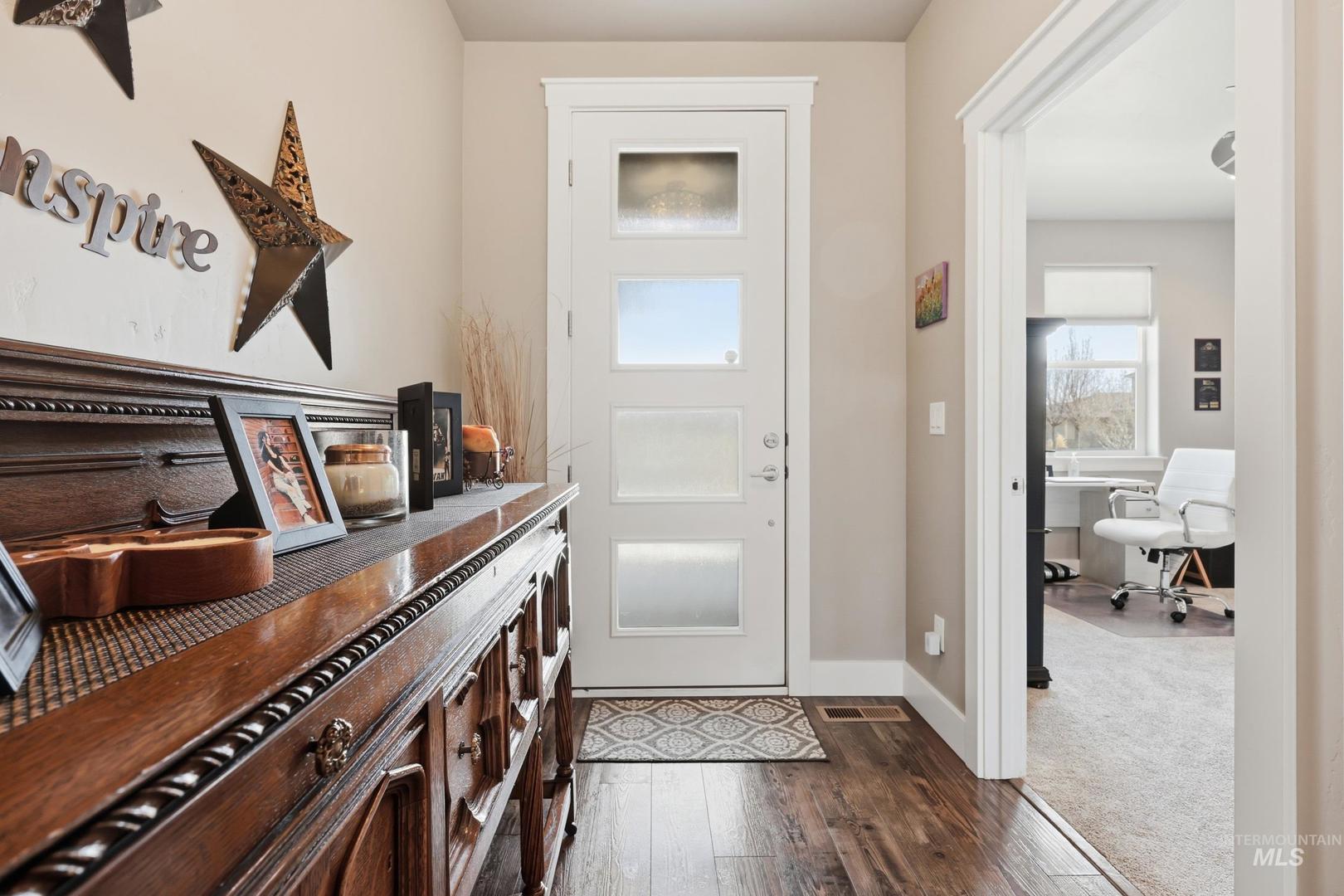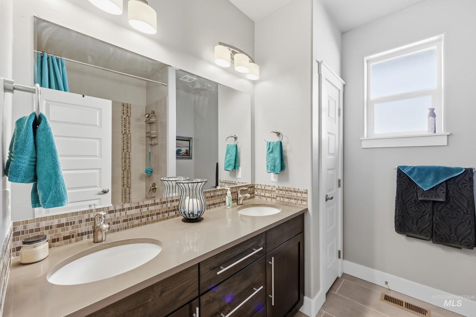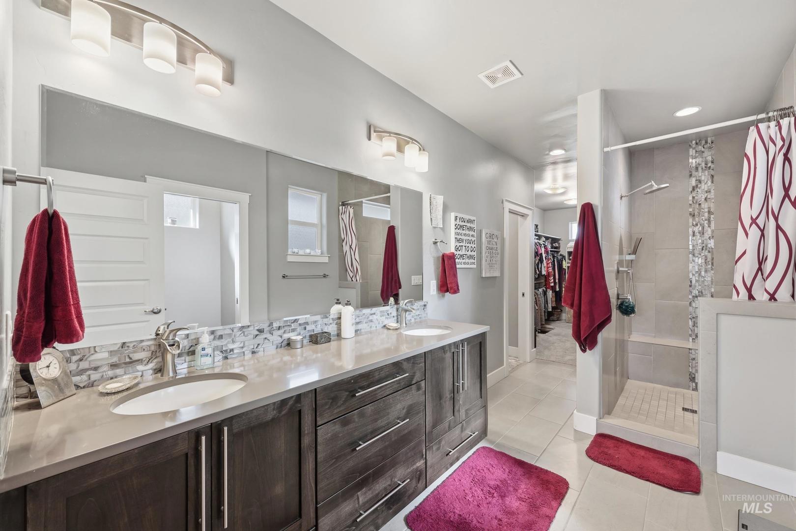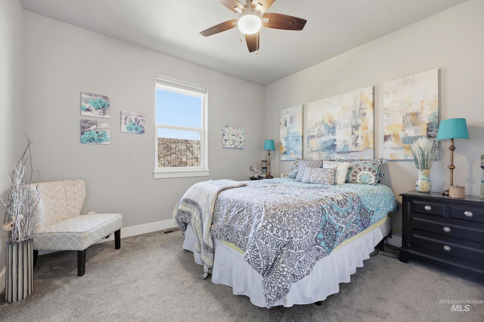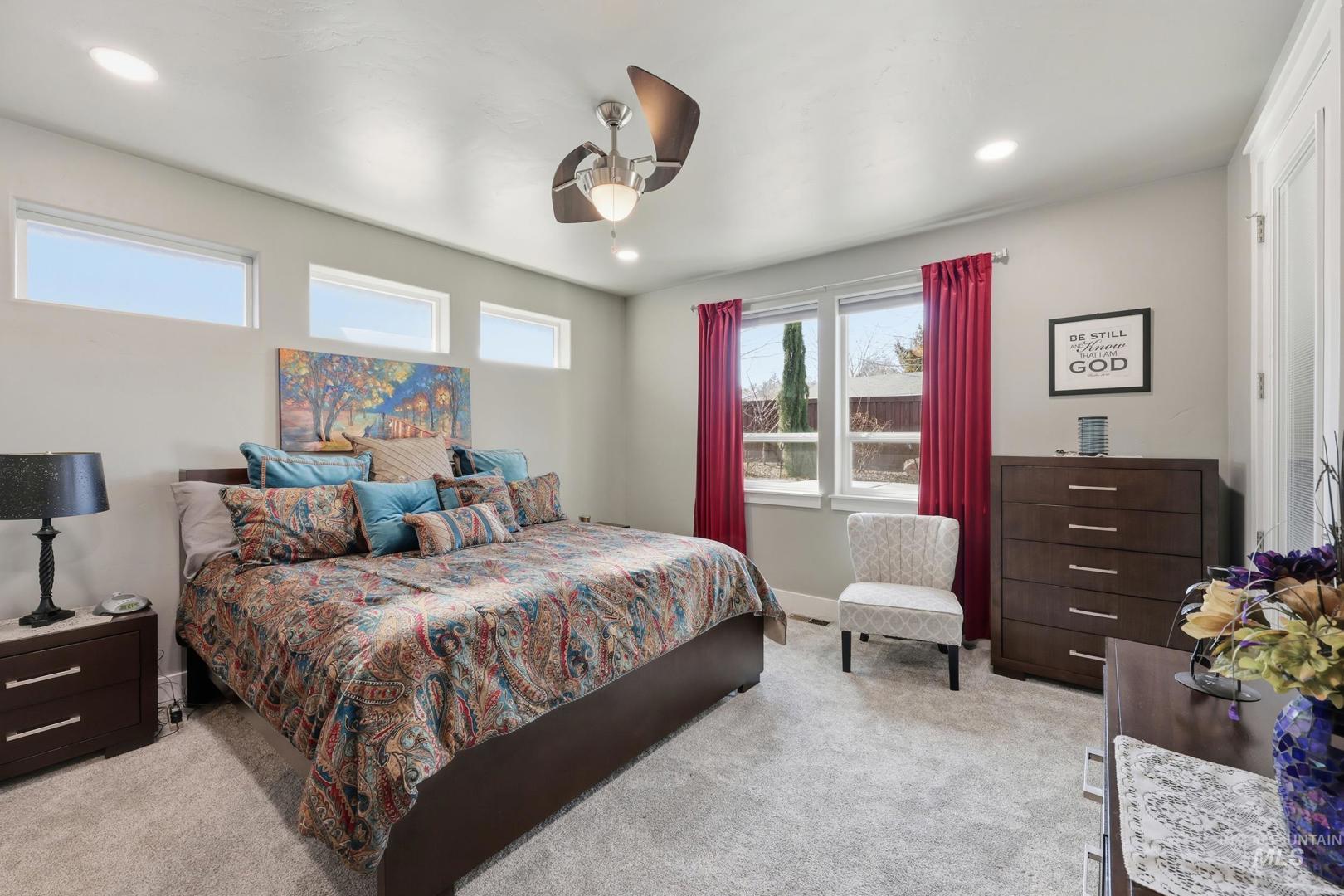 Custom-built single-level residence located in Hazelwood Village. This home offers 3 bedrooms, 2 bathrooms, and a spacious office. The open great room includes a gas fireplace with built-in cabinets. The kitchen features a breakfast bar, walk-in pantry with a wine and coffee bar. The spacious primary bdrm offers recessed lighting and has access to the covered patio. Ensuite includes a large closet and walk-in shower. The functional floor plan provides comfortable living and work-from-home flexibility. The covered patio opens to a private backyard which includes a custom sun screen, and a professionally installed mister system. The front of the home faces a park with mountain views, creating a welcoming and scenic setting. Perfect for relaxing or entertaining indoors and out. Home includes whole house water purifying system. The community includes two salt water pools, a clubhouse, scheduled concerts in the park, and weekly food truck events, dog park, and garden boxes. Conveniently located near shopping, dining, and recreation in **Boise**. Seller is an Idaho Licensed Real Estate Broker