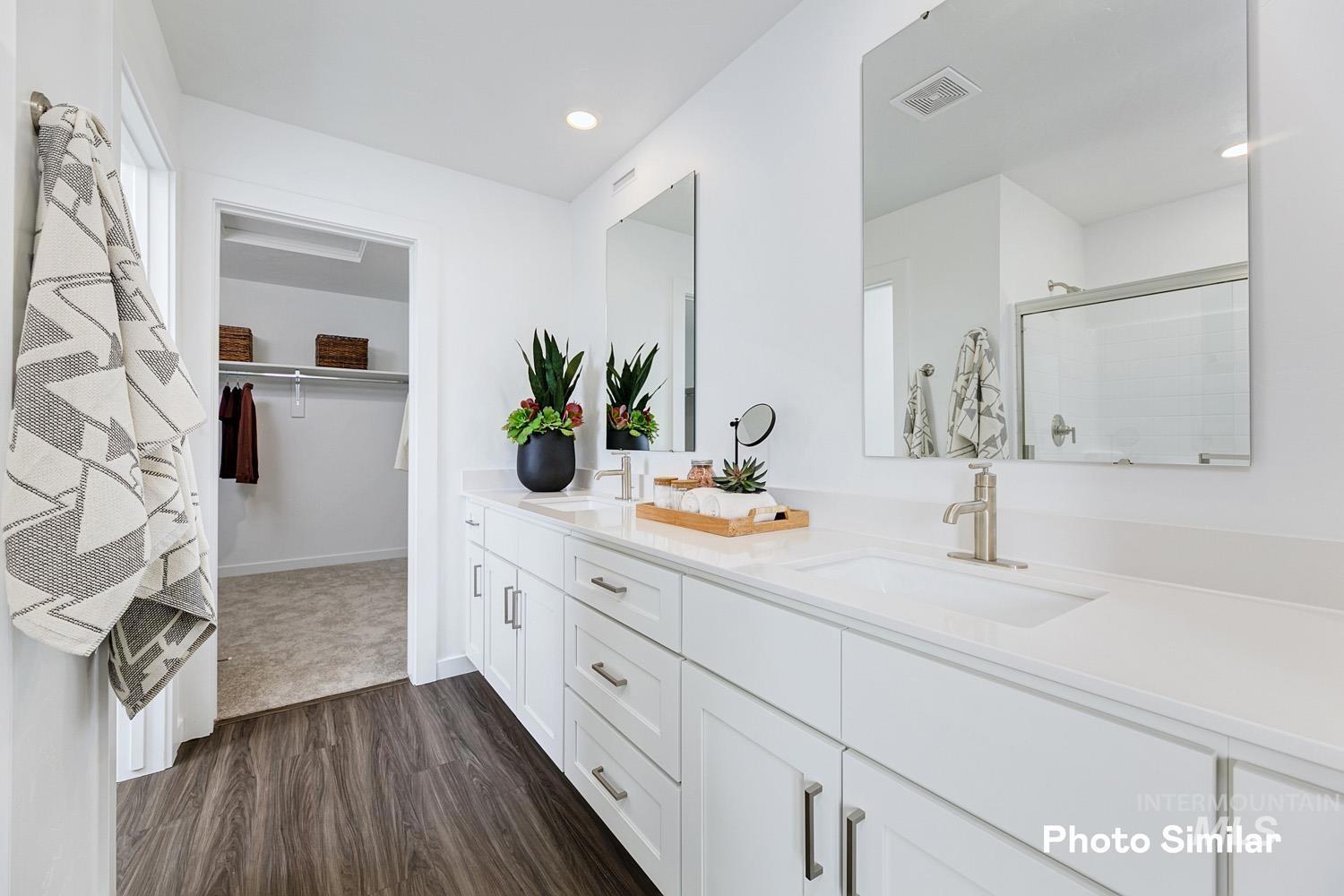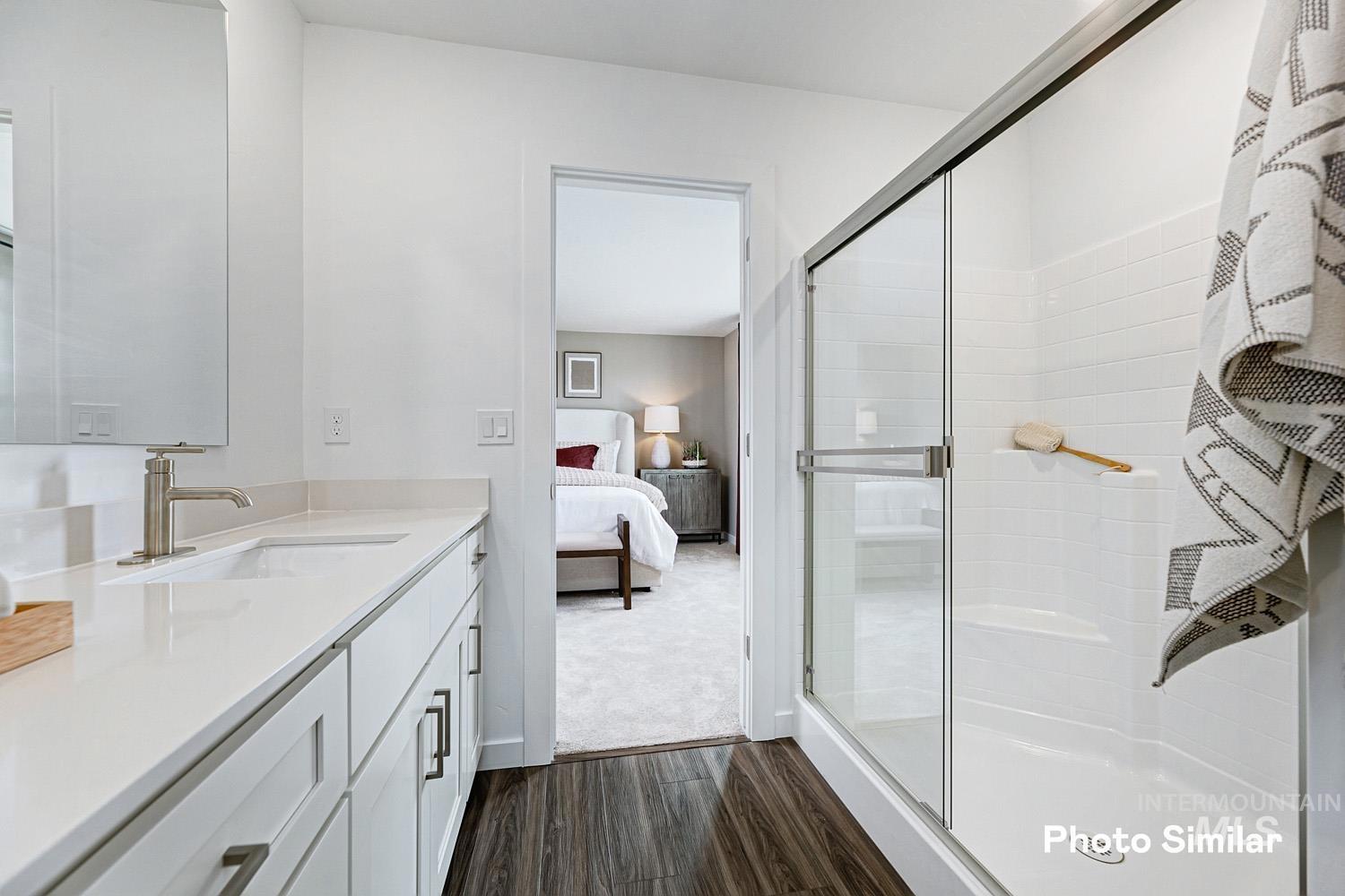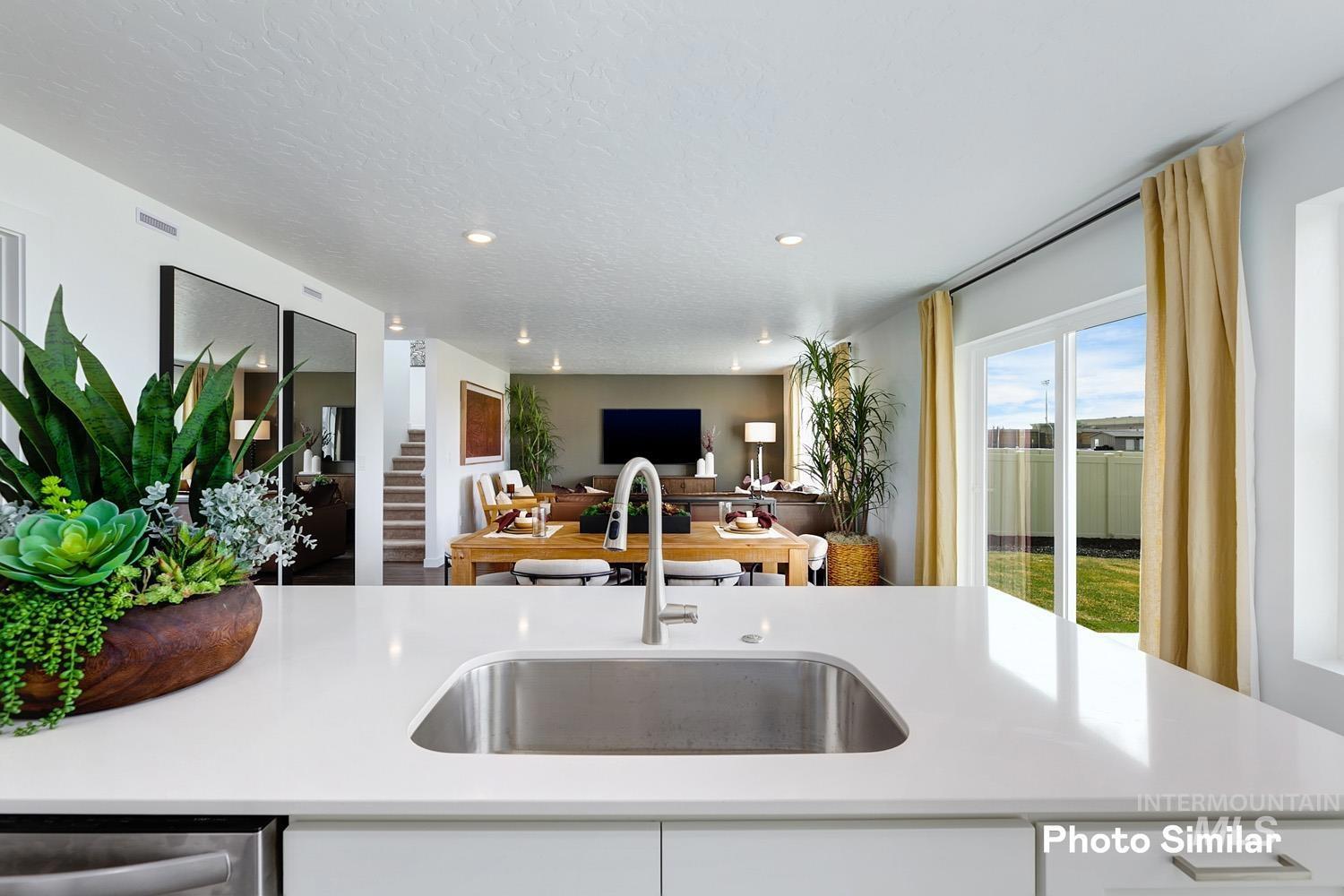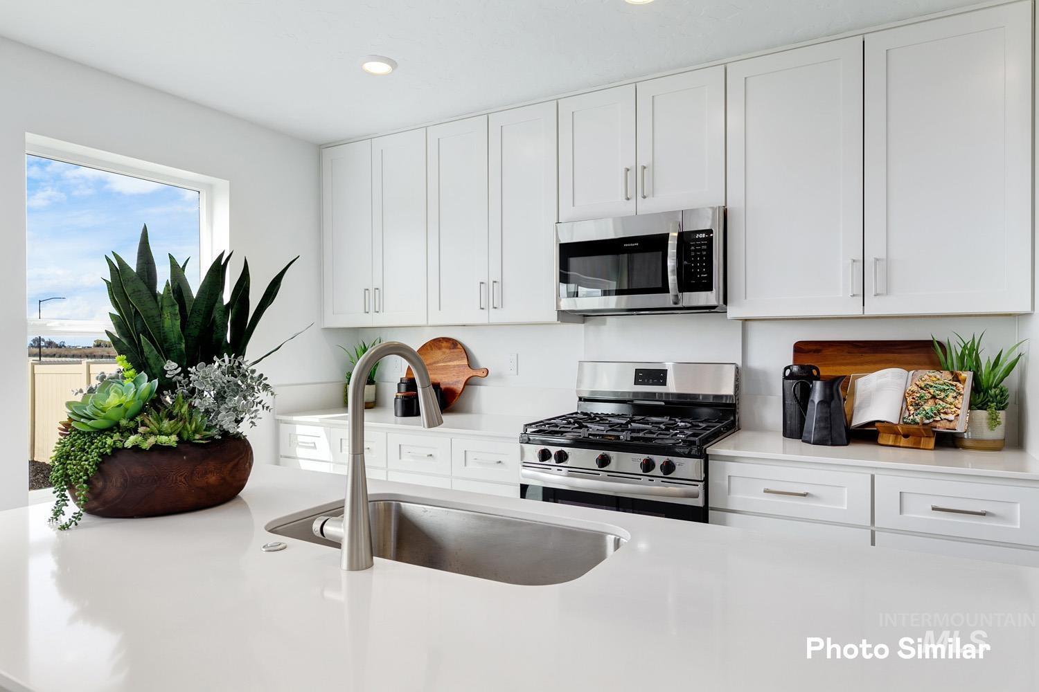 This home was the builder`s model home and it`s beautiful! “Everything Included” – washer/dryer, refrigerator, front and backyard landscaping with irrigation and full fencing! Welcome to the Canyon Series! The kitchen has stainless-steel appliances, quartz countertops, gourmet island, Shaker style cabinets with soft close, and convenient pull out recycle and trash bins. Primary suite has a walk in closet and dual vanity with quartz countertops. Luxury vinyl plank flooring looks beautiful in the kitchen, baths, and laundry room. Your home also comes with many energy efficient features and thoughtful touches like pre-plumed whole house water loop. Owyhee Springs invites you to enjoy the walking paths, Tot lot, Clubhouse and pool, and green spaces, all while enjoying the scenic views of the mountains. Within walking distance of Owyhee High School and soon-to-be quick access to the new Highway 16 connection to the I84