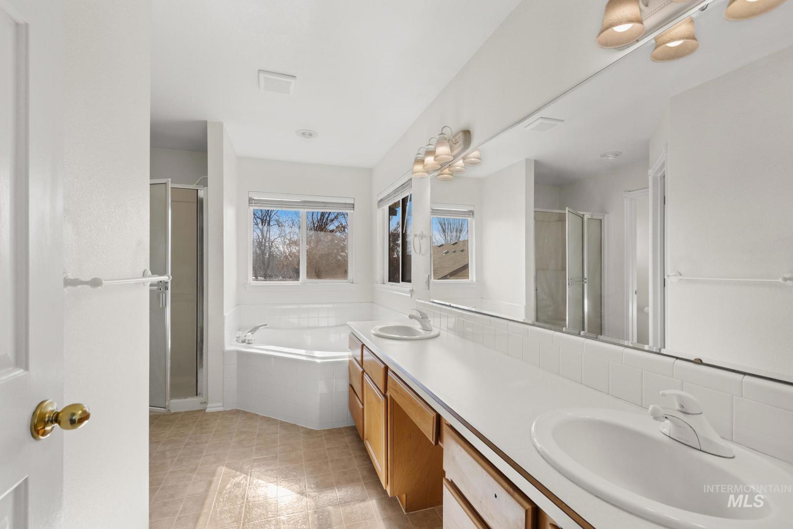Immaculate move-in ready, this spacious 5-bedroom, three-bath home is perfect for large families and/or entertaining. Located in a quiet Southwest Boise cul-de-sac, it offers generous gathering spaces you rarely see in today’s new construction. From the moment you walk in, you get true separation of space: a dedicated front living room for formal gatherings, an open-concept kitchen and dining area, and an additional family room that anchors the back of the home—perfect for movie nights, game days, and everyday hanging out without everyone being on top of each other. Upstairs, the bedroom layout keeps the private spaces tucked away while the main level remains the hub for entertaining, homework, and relaxed living, giving families more flexibility than the tighter great-room-only layouts common in newer builds nearby. The oversize 3 car garage offers workshop space and a pull-through pad in the back. Set on a comfortable lot in an established neighborhood, you’re minutes to Boise Towne Square Mall, big-box shopping, Costco-style options, and a wide range of restaurants and entertainment, plus quick access to downtown Boise for events, parks, and nightlife. If you’ve been touring new construction and wishing for more mature surroundings, larger gathering spaces, and a location that puts shopping, dining, and fun close by, this home checks all the boxes