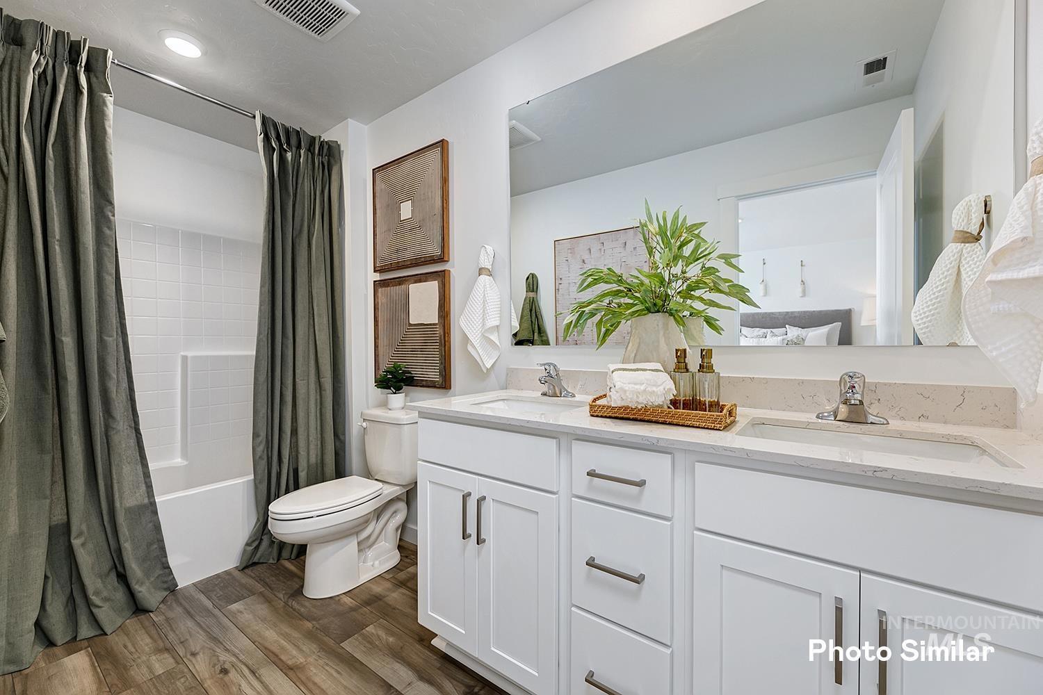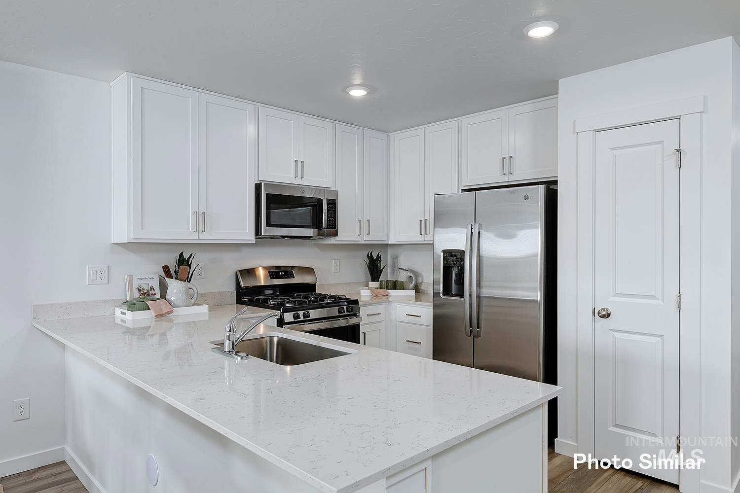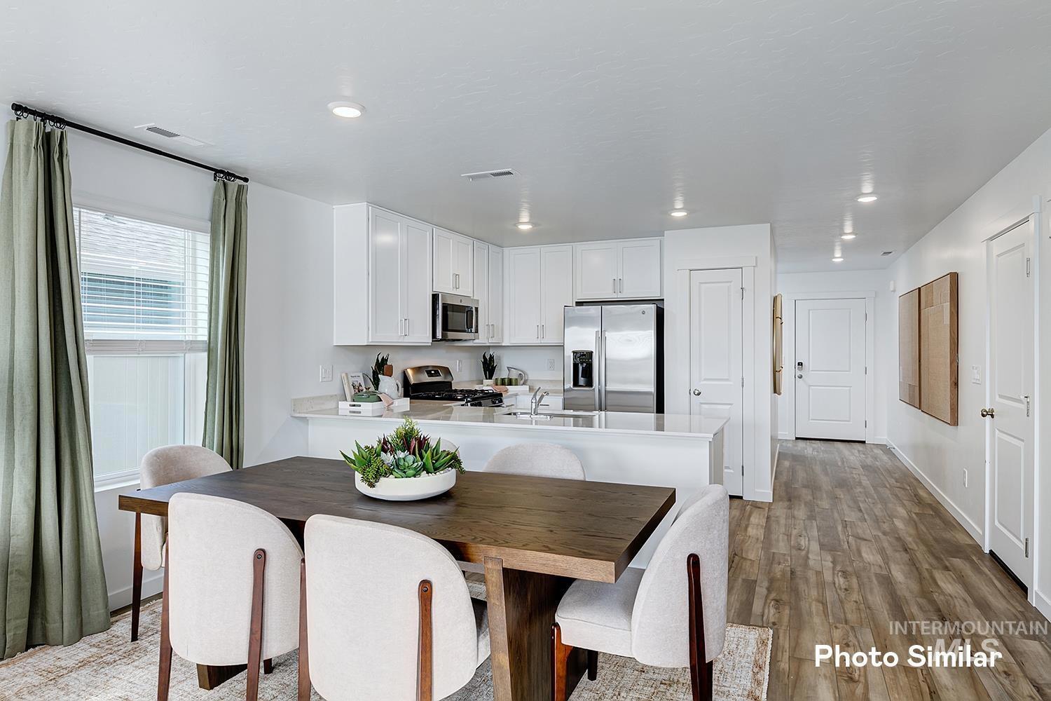 Welcome to the American Dream Series—where comfort meets value. With Lennar’s signature Everything’s Included® package, each home features a stainless-steel refrigerator, washer and dryer, window blinds, and full landscaping. The modern kitchen includes quartz countertops, white Shaker-style cabinetry, and stainless-steel appliances. Luxury vinyl plank flooring extends through the kitchen and bathrooms, paired with chrome finishes throughout. Additional highlights include a tankless water heater, garage keypad, and full aluminum gutters, offering style and efficiency in every detail. In Thunder Rock, enjoy small-town charm with easy access to Boise, plus community amenities like a playground, open space and walking paths.