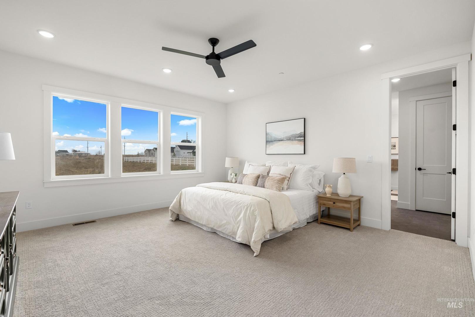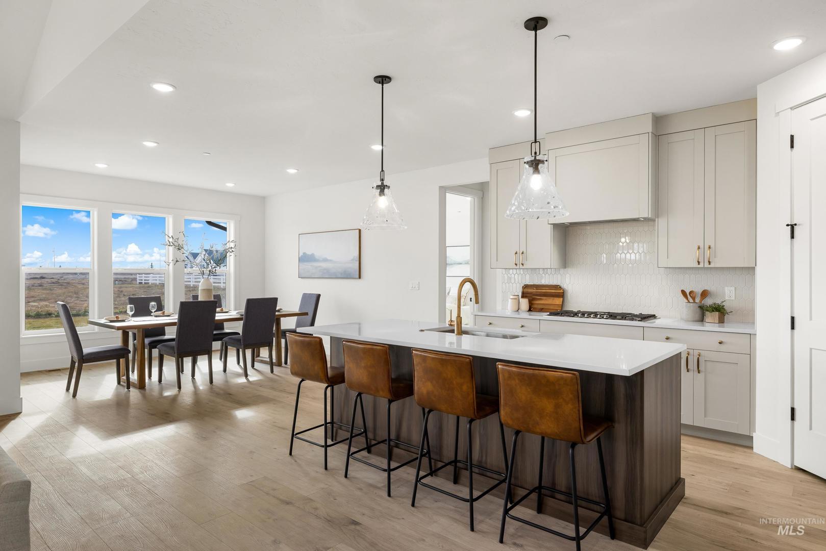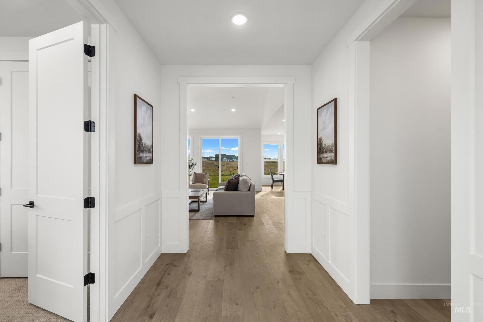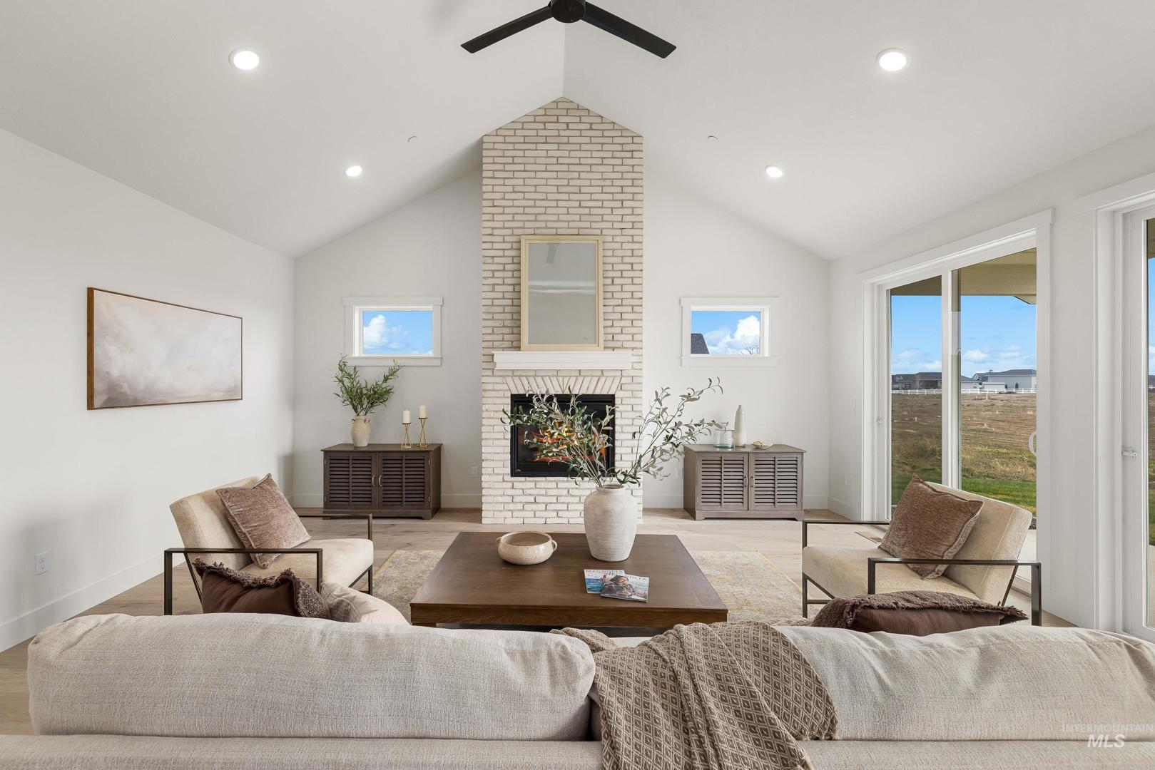Located in Waterbrook Farms, a boutique community of just 26 homesites in Middleton and steps from Purple Sage Golf Course, "The Sylvan" offers a refined take on modern farmhouse living with a layout designed for both comfort and functionality. The split-bedroom floor plan provides privacy while maintaining a natural flow for everyday living and entertaining, enhanced by vaulted ceilings that create a bright, open feel throughout the main living spaces. Interior features include 8` doors, quartz kitchen countertops, Bosch stainless steel appliances, LVP flooring in the main living areas, and premium carpet in the bedrooms. The garage configuration is a true standout. In addition to a spacious two-car garage with a dedicated shop area, the attached 50` RV garage delivers exceptional storage and flexibility, ideal for RVs, boats, or additional workspace. Set within a peaceful, open setting while remaining close to golf, recreation, and daily conveniences, this home offers a rare combination of thoughtful design, functionality, and long-term appeal in a highly sought-after community.
