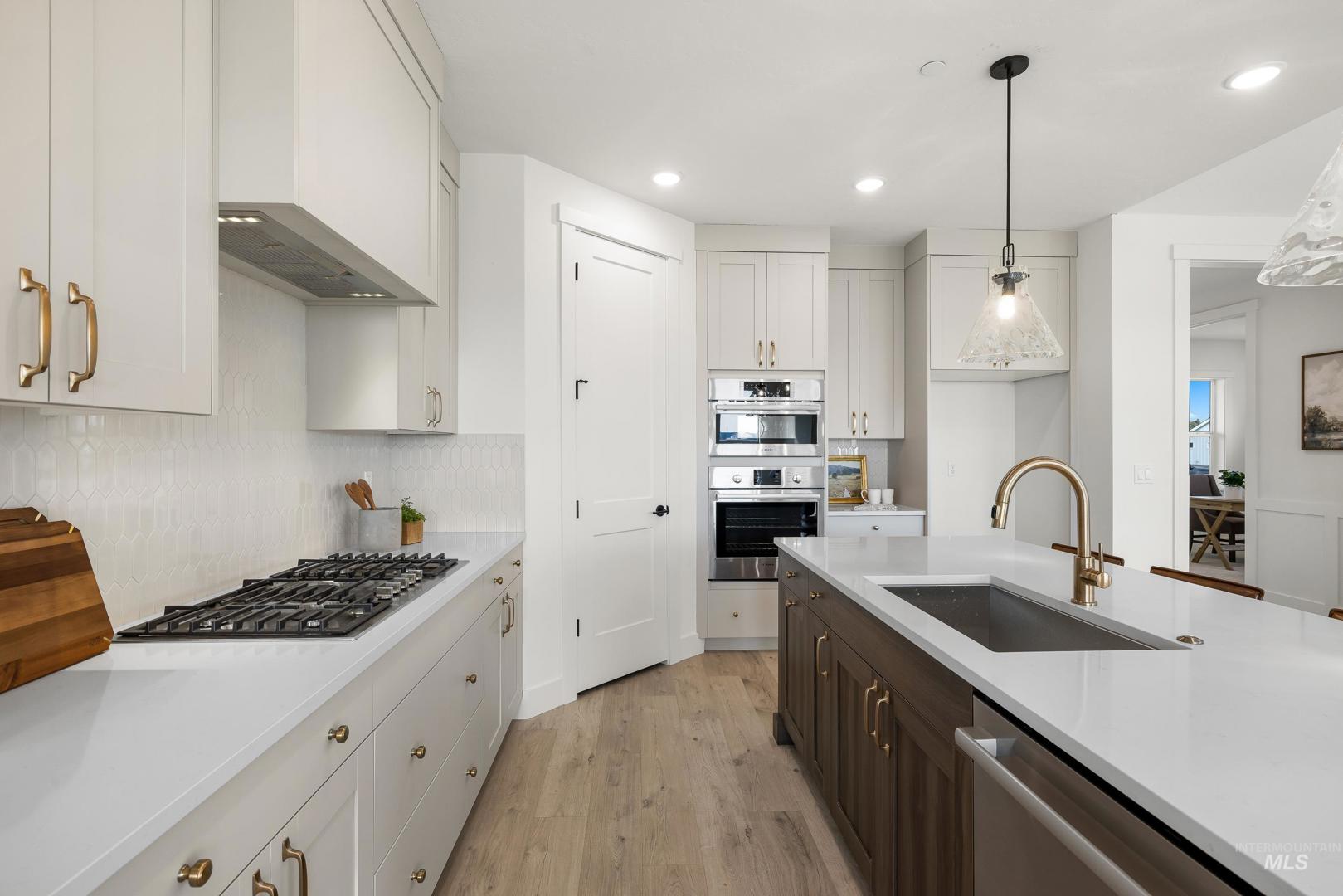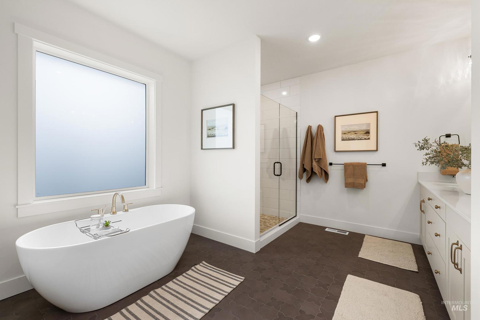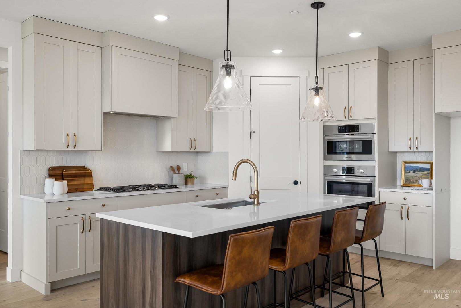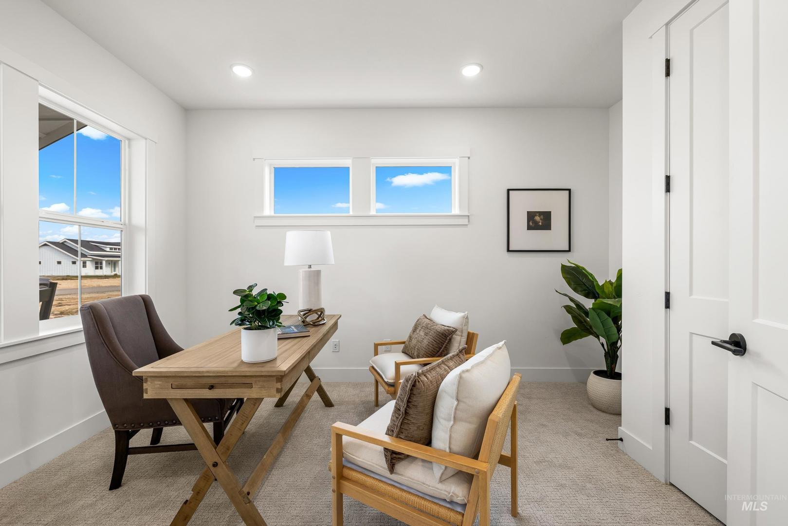 Located in Waterbrook Farms, a boutique community of just 26 homesites in Middleton and steps from Purple Sage Golf Course, "The Sylvan" offers a refined take on modern farmhouse living with a layout designed for both comfort and functionality. The split-bedroom floor plan provides privacy while maintaining a natural flow for everyday living and entertaining, enhanced by vaulted ceilings that create a bright, open feel throughout the main living spaces. Interior features include 8` doors, quartz kitchen countertops, Bosch stainless steel appliances, LVP flooring in the main living areas, and premium carpet in the bedrooms. The garage configuration is a true standout. In addition to a spacious two-car garage with a dedicated shop area, the attached 50` RV garage delivers exceptional storage and flexibility, ideal for RVs, boats, or additional workspace. Set within a peaceful, open setting while remaining close to golf, recreation, and daily conveniences, this home offers a rare combination of thoughtful design, functionality, and long-term appeal in a highly sought-after community.