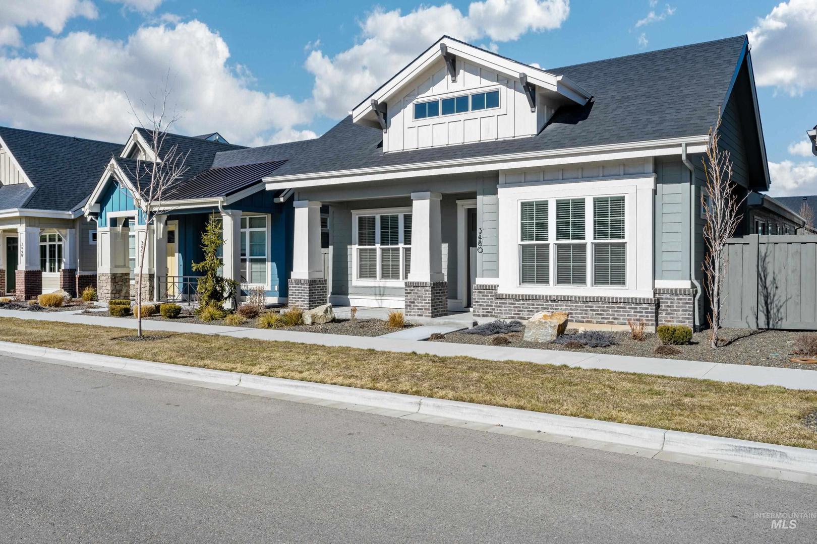The BLACK FOREST floorplan by Brighton Homes is a beautifully designed, efficiently laid-out home in Cadence at Century Farm, a premier, highly sought-after, gated 55+ award-winning community. The open concept layout makes entertaining a breeze, while the primary suite offers a walk-in shower and spacious closet for comfort and relaxation. The kitchen impresses with Alder wood cabinets, walk-in pantry, Bosch stainless steel appliances, and Kohler finishes throughout—a Brighton standard. 100% Energy Star Certified, this home delivers efficiency and low-maintenance living, with full front and side-yard landscape care and deep snow removal included for easy living. Residents enjoy full access to the clubhouse, featuring an indoor lap pool, jacuzzi, fitness and yoga studios, event hall with large kitchen, lounge with pool and card tables, and outdoor pickleball and bocce courts. Stay active and involved with the community while the full-time lifestyle director organizes classes, activities, and social events year-round. Located just minutes from the South Meridian YMCA, Boise Ranch Golf Course, shopping, dining, and I-84, this home blends convenience, community, and comfort in one of Meridian’s most desirable neighborhoods.