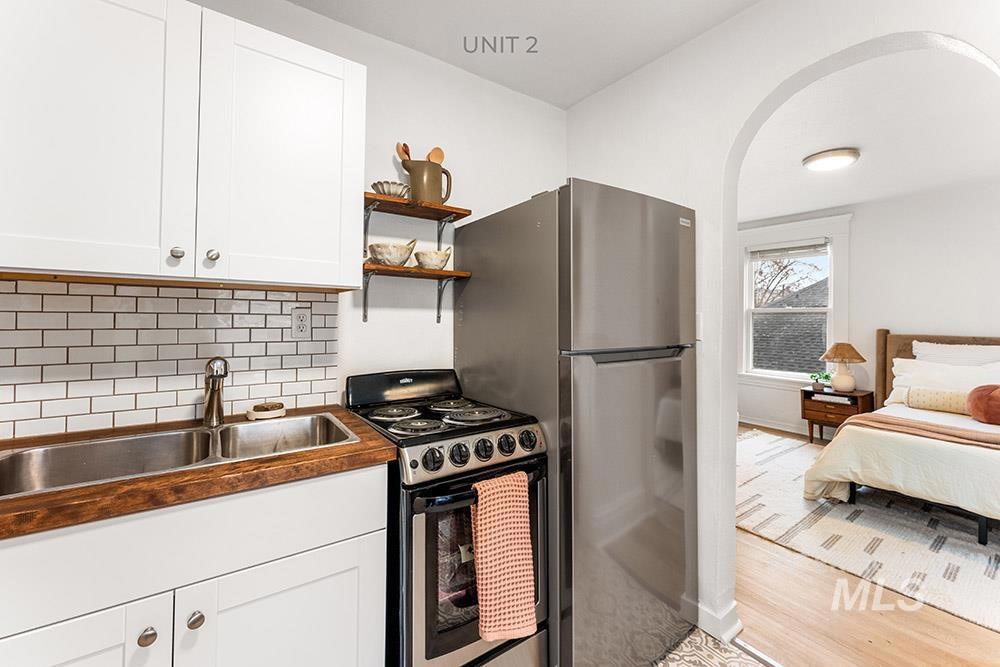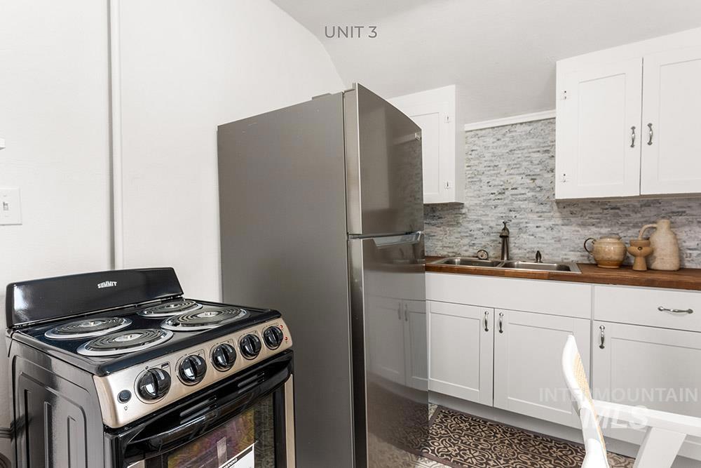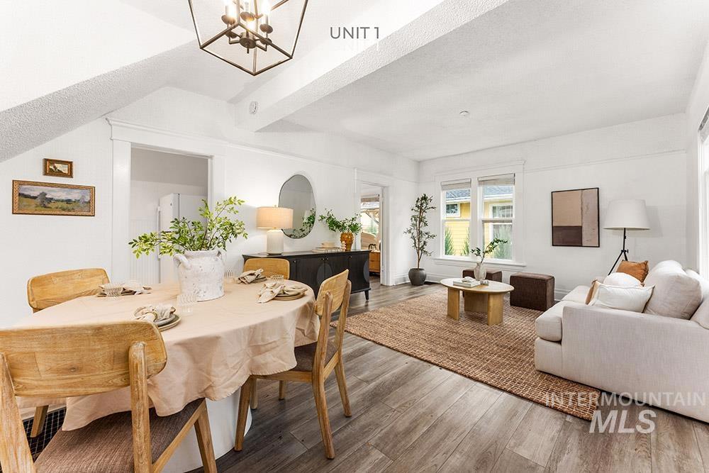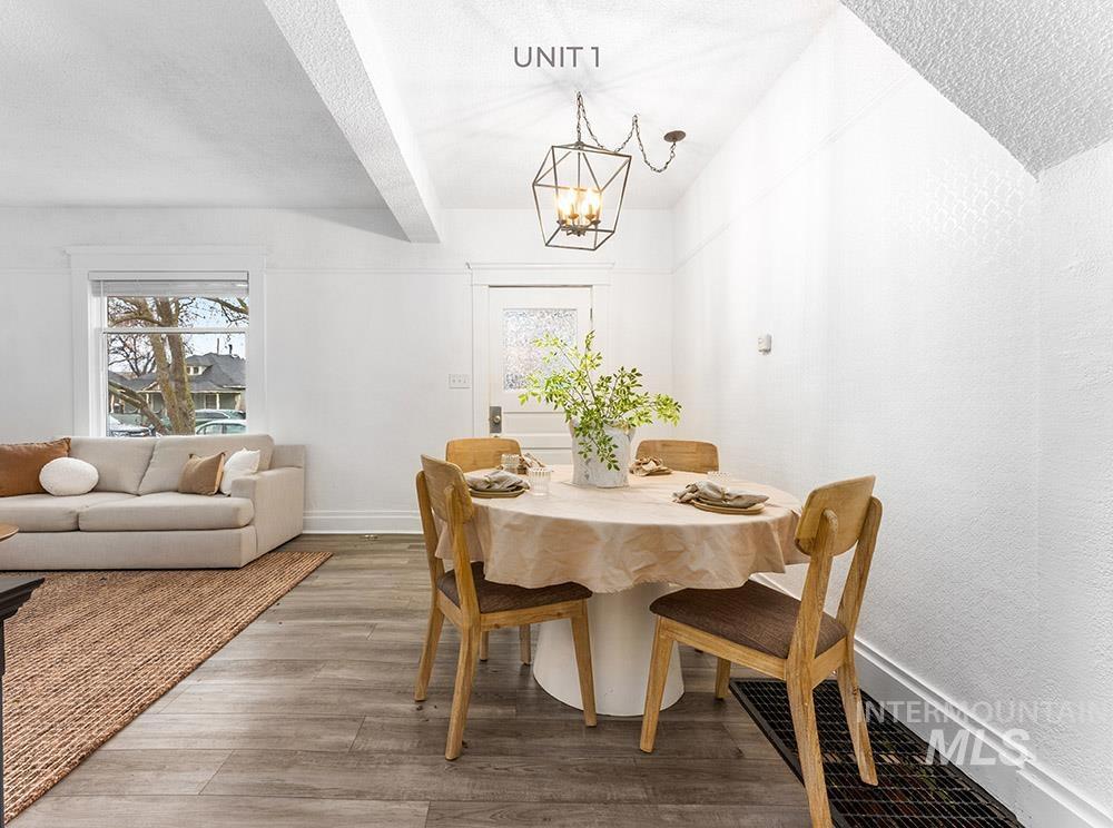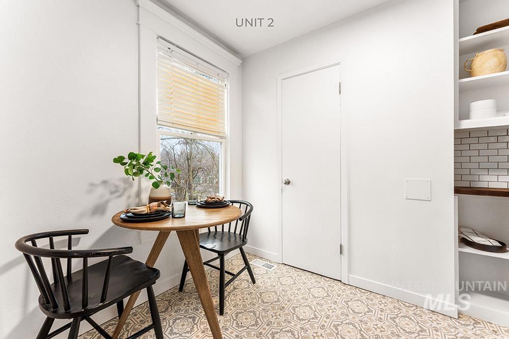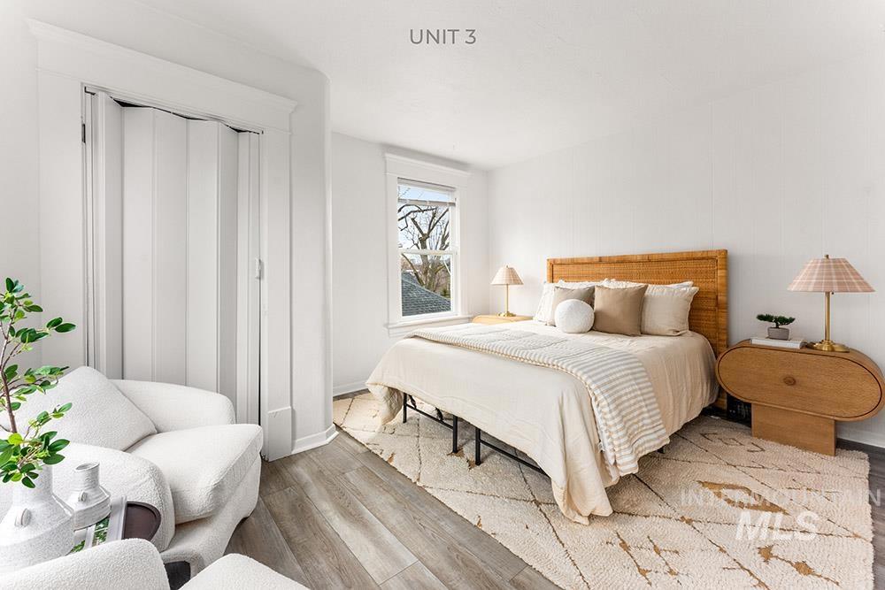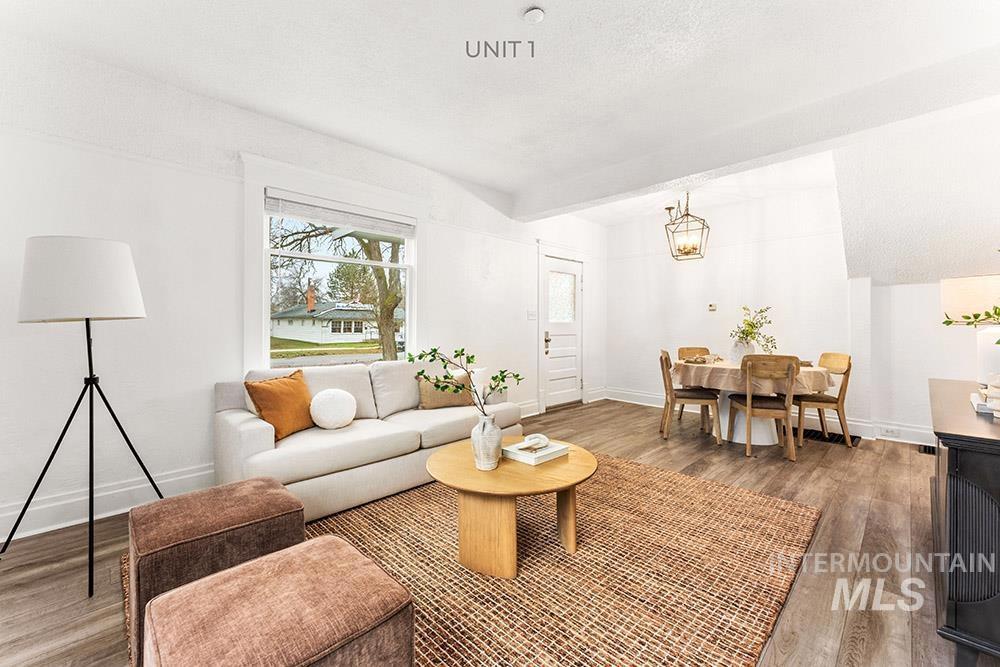 Rare turn-key tri-plex in Boise’s Historic North End, an outstanding income property that blends timeless charm with modern upgrades. The spacious main-level unit offers a large living / dining room, full kitchen, and large bedroom complete with en-suite bath and an adjacent room ideal for a guest bedroom or office. Upstairs, two fully equipped one-bedroom units each feature updated kitchens and full bathrooms. All three residences enjoy fresh paint, new LVP flooring, contemporary lighting, updated kitchens, a newer roof, and updated HVAC. Tenants share a large main-floor laundry room. The expansive, fully-fenced backyard comes with plans to potentially add garages and a fourth unit/ADU, delivering immediate cash flow plus significant future upside. Strong rental income at projected ~$4,100 per month, this property is truly move-in or rent-ready and perfectly positioned just minutes from Hyde Park, Camel’s Back Park, and downtown.