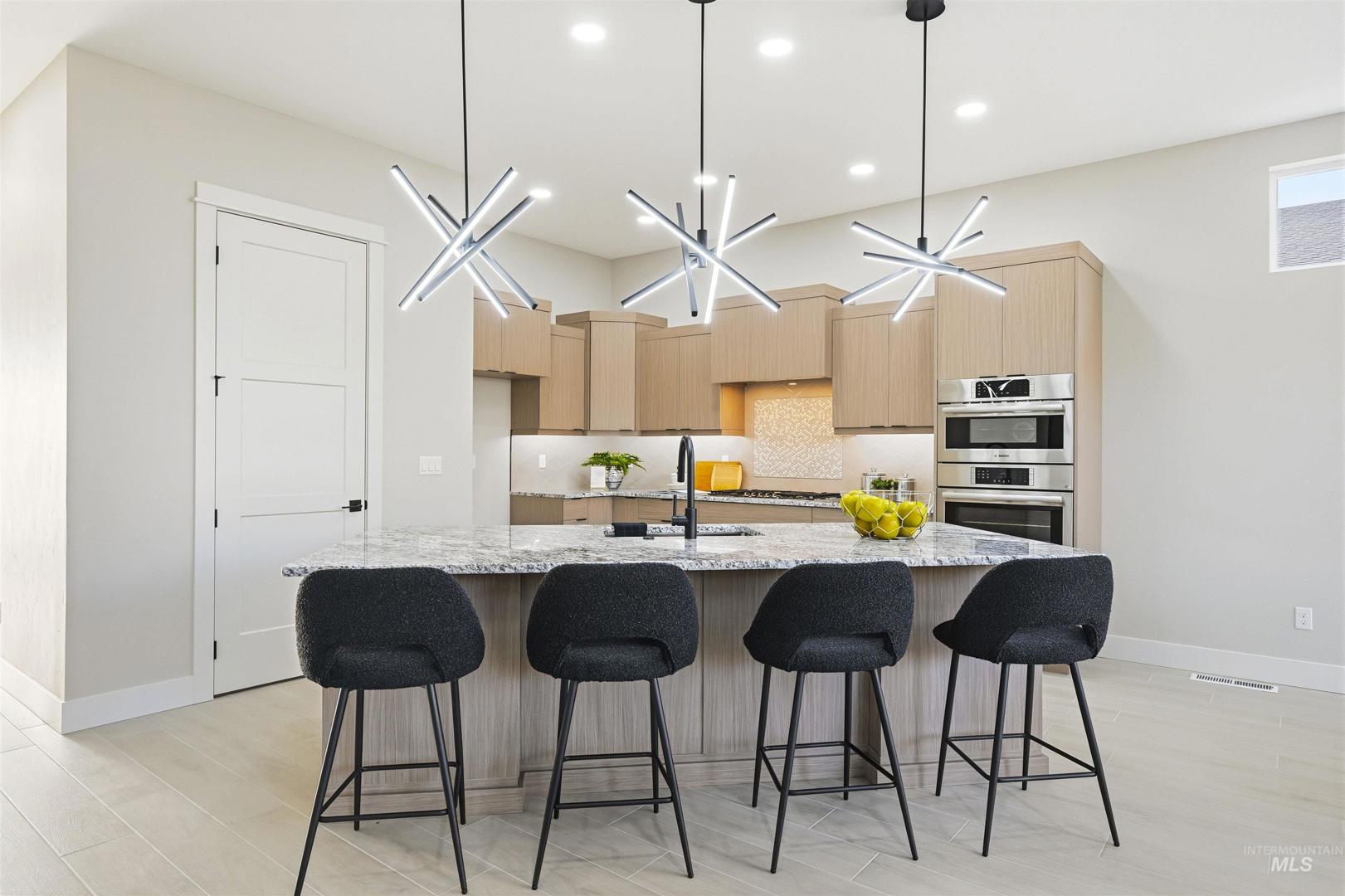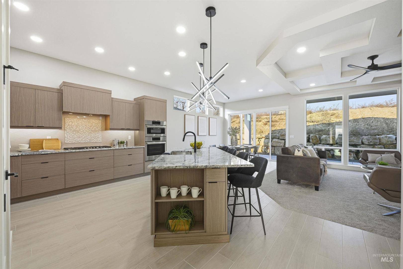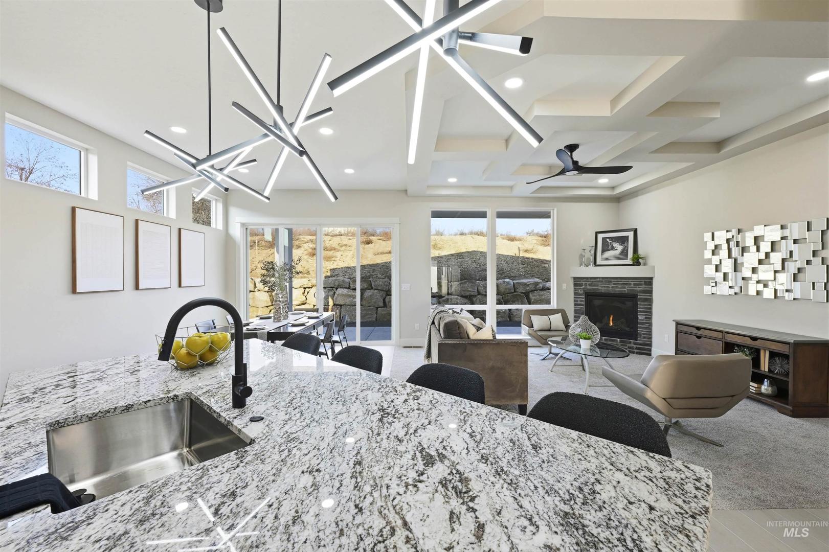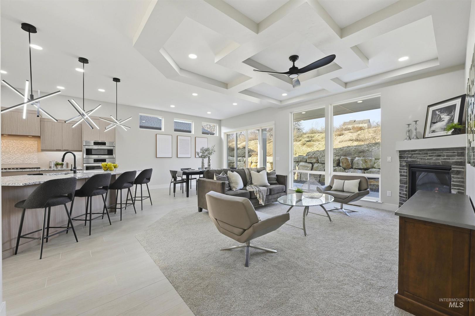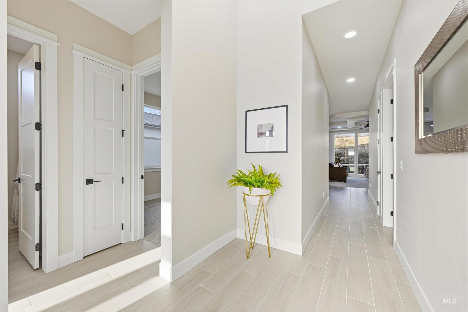 Introducing the Karsyn floor plan by Ninety Degree Construction, located in one of Middleton’s newest subdivisions where small-town charm meets modern, upscale living. This well-designed home offers a flexible layout with 4 bedrooms—or 3 bedrooms plus a bonus room—along with a dedicated office, making it ideal for today’s evolving lifestyles. The kitchen is both stylish and functional, featuring a gas cooktop, built-in oven, microwave/convection combo, and thoughtfully selected finishes that elevate the space. Natural light pours in throughout the home, enhancing the open-concept design and creating a bright, welcoming atmosphere. The great room is anchored by a cozy fireplace and expansive windows that look out to the low-maintenance backyard and spacious covered patio—perfect for outdoor enjoyment year-round. The primary suite is a true retreat, offering a spa-inspired bathroom with a zero-entry shower and a generous walk-in closet. Completing the home is an impressive 35` RV bay with a 12` x 14` door, ideal for vehicles, toys, or additional storage. Blending comfort, functionality, and modern appeal, this home is a standout opportunity in Middleton’s newest community.