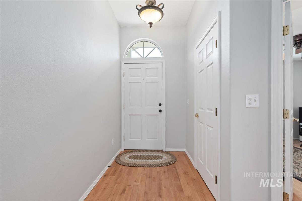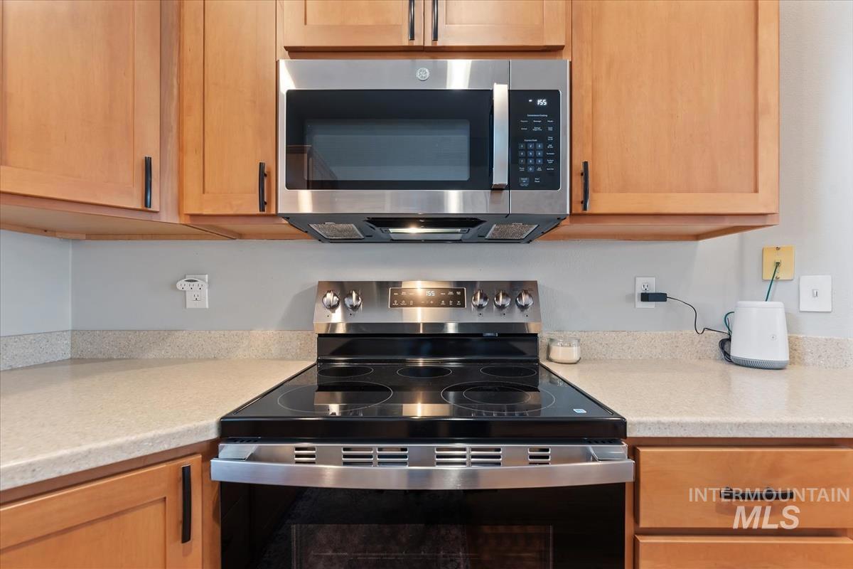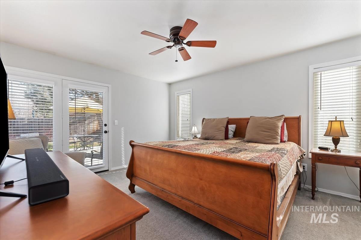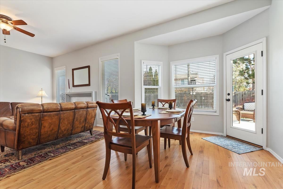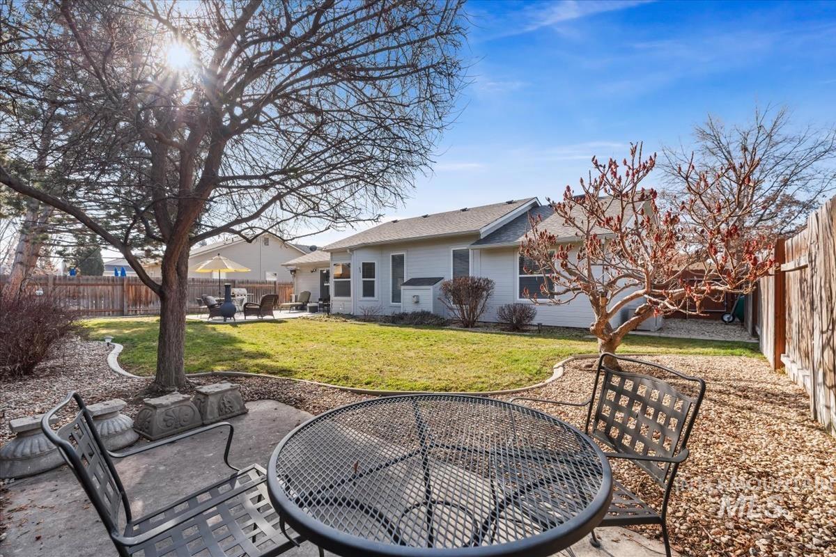 Welcome to this immaculate home in the centrally located Rivers Edge community! With soaring 10-foot ceilings, this home lives much larger than the square footage suggests, creating an open, airy feel enhanced by hardwood floors and a skylight. The modern kitchen features Corian countertops with a breakfast bar and new stainless steel appliances (Sept ’25), opening to a casual living and dining area anchored by a cozy gas fireplace. The thoughtfully designed split-bedroom floorplan provides privacy and separation, with the primary suite offering patio access, a roomy closet with built-ins, and a beautifully appointed walk-in shower. Step outside to an awesome east-facing backyard with a large paved patio plus a separate side patio, perfect for a quiet reading nook. The fully fenced yard includes impeccable mature landscaping, a full sprinkler system, and a double-wide gate with gravel parking area behind the fence. Located just about a tenth of a mile to two access points to the Boise River Greenbelt, and close to shopping, the post office, library, downtown Boise, Eagle, and Meridian - this home truly has it all.