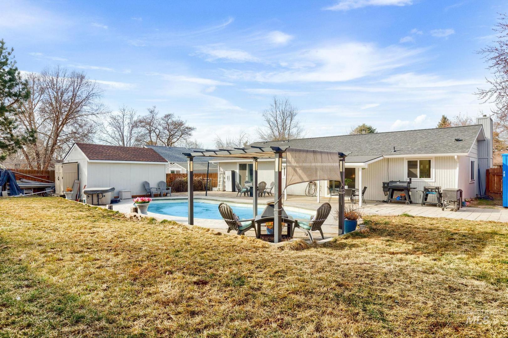 Updated Southeast Boise charmer with a pool and no HOA. This single level home sits on a spacious lot and features a newer roof and HVAC system. Inside, you will love the character this adorable home offers, with an updated kitchen, refreshed flooring, and charming arched doorways that add elegance and timeless appeal. Two separate living areas, a dedicated dining room, and a beautiful red brick fireplace create inviting spaces for everyday living and entertaining. The backyard truly steals the show with a private pool, garden boxes, RV parking, and a large shed with loft ideal for extra storage or projects. Enjoy a prime location near Micron, Simplot Sports Complex, the Greenbelt, foothills trails, Lucky Peak, and quick freeway access. A rare find in one of Boise’s most desirable areas.