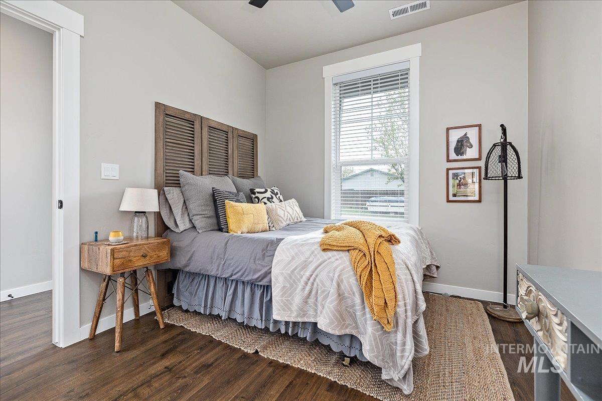 Modern, tasteful 2-bedroom, 2 full-bath single-level home located just minutes from downtown Boise, the airport, major hospitals, and Whole Foods Market. This newer home features an open floor plan filled with natural light from expansive floor-to-ceiling windows. Stylish finishes include granite countertops, modern blinds, bedroom ceiling fans with remotes, and a full-size stackable washer and dryer. Both the front and backyard are fully fenced, providing privacy and versatility. The spacious two-car garage offers direct access into the fenced backyard, and additional private parking is available directly in front of the home, with ample street parking for guests. Conveniently located in South Boise, this home offers easy access to downtown, nearby parks and outdoor recreation such as the Boise Greenbelt and Table Rock, as well as shopping, dining, golf courses, and interstate access.