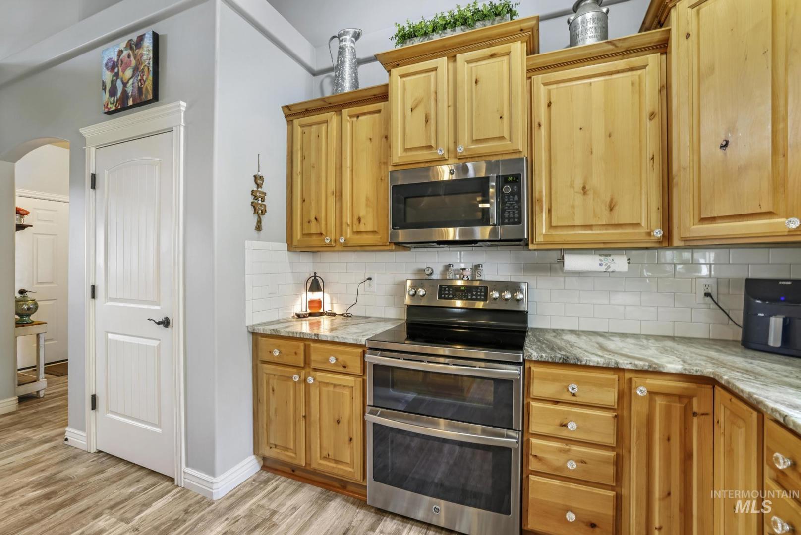 This beautifully updated single-level home offers 4 bedrooms, 2.5 bathrooms, and a spacious 3-car garage. Inside, you`ll love the soaring ceilings and open floorplan, ideal for comfortable living and entertaining. Need an office? Easily use one of the 4 bedrooms! Recent upgrades include luxury vinyl plank flooring, fresh interior paint, modern light fixtures, stylish ceiling fans, and a brand-new front door. The kitchen shines with stunning leathered granite countertops, combining beauty with functionality. Relax outdoors on the inviting covered front porch or the private covered back patio. Move-in ready and full of thoughtful updates, this home is ready to welcome its new owner!