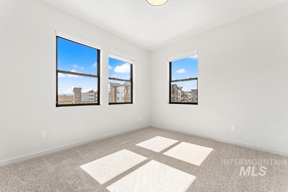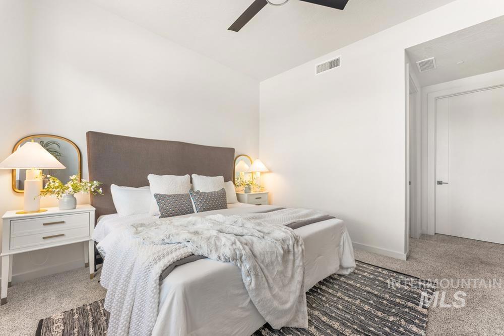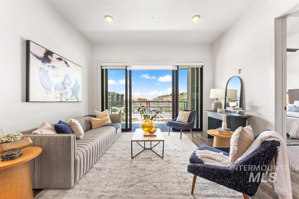 Rarely available, this top-floor 3-bedroom corner residence in the Eno Condos at Harris Ranch Lofts offers a spacious, light-filled layout & an unbeatable East Boise lifestyle. With only four 3-bedroom units in each building, these homes are seldom available & highly desired. This true top-floor unit has no neighbors above, nor is there a rooftop deck overhead, making it the only unit of this size & location with this amount of privacy & quiet. Built in 2022, the condo is modern & comfortable with an open layout, generous windows & a covered balcony overlooking the community pool with southern light & river views. The split-bedroom design provides flexibility for guests, office space, or everyday living, while upscale finishes create a fresh, polished feel throughout. Low-maintenance & ideal for lock-&-leave living, the home includes one covered parking space, reserved storage, & secure bike storage. Residents also enjoy access to the building’s sparkling pool, rooftop terrace, social lounge, outdoor kitchen, bike wash station, & pet wash area. The location is ideal; just 2 blocks to the Boise River, Greenbelt, & Marianne Williams Park, & Dallas Harris Elementary only a few blocks away. Close to Bown Crossing, trails, parks, & outdoor recreation, this condo offers a rare opportunity to enjoy modern comfort, low-maintenance living & one of Boise’s most sought-after active lifestyles.