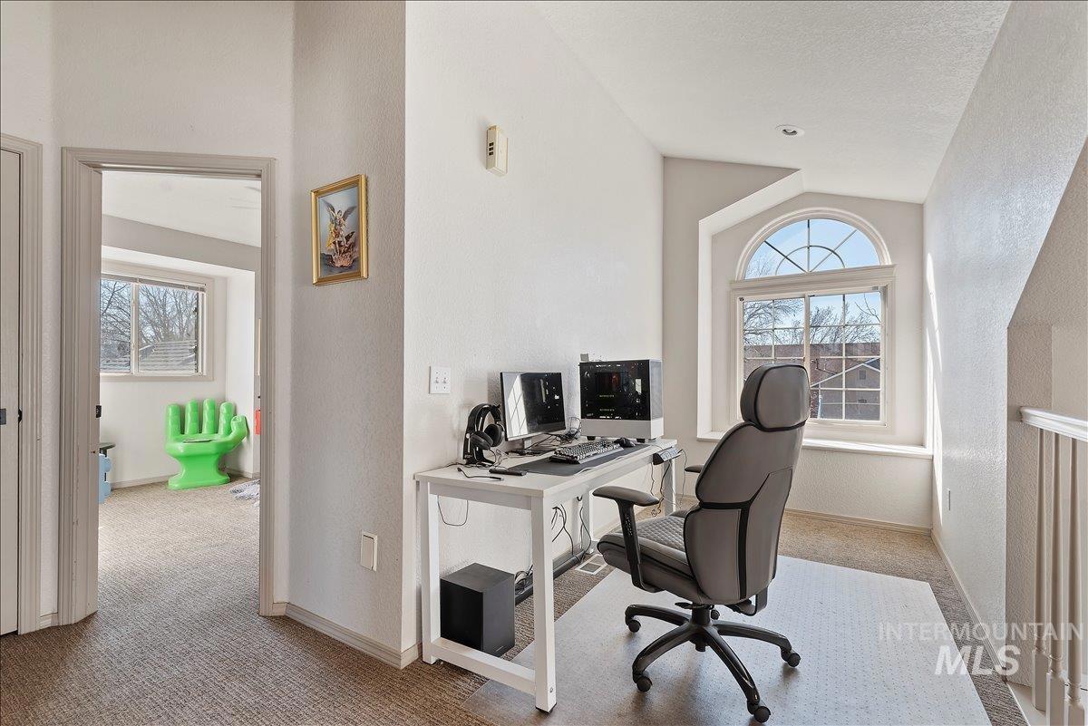 Location! Quiet Meridian neighborhood less than a mile from downtown with close freeway access. Well-maintained home with fresh paint and new baseboards through part of the home. Features a desirable 3-car garage with ample parking, including RV space. The main floor includes a dedicated office, ideal for working from home. The kitchen is conveniently located next to a sliding door leading to the back patio with pergola, perfect for summer entertaining. The master bedroom overlooks the backyard, and the laundry room offers a utility sink with backyard access for added convenience. Enjoy vaulted ceilings, abundant natural light, newer durable carpet with thick pad, and a cozy wood-burning fireplace. Great opportunity in a sought-after Meridian location, close to downtown amenities, shopping, schools and easy commuting.