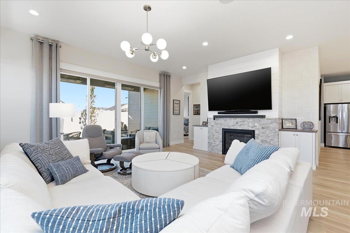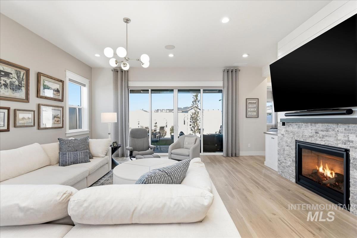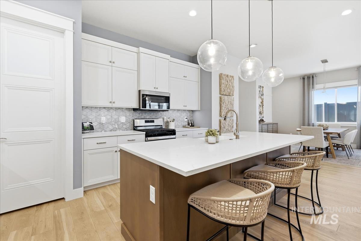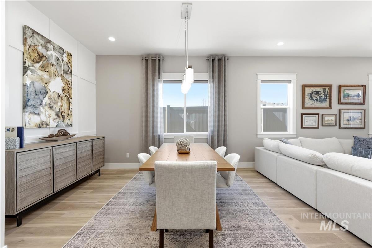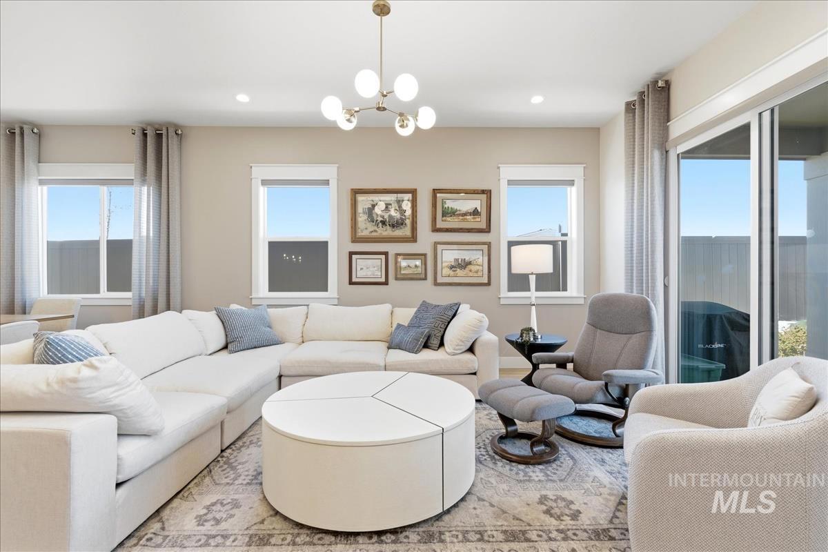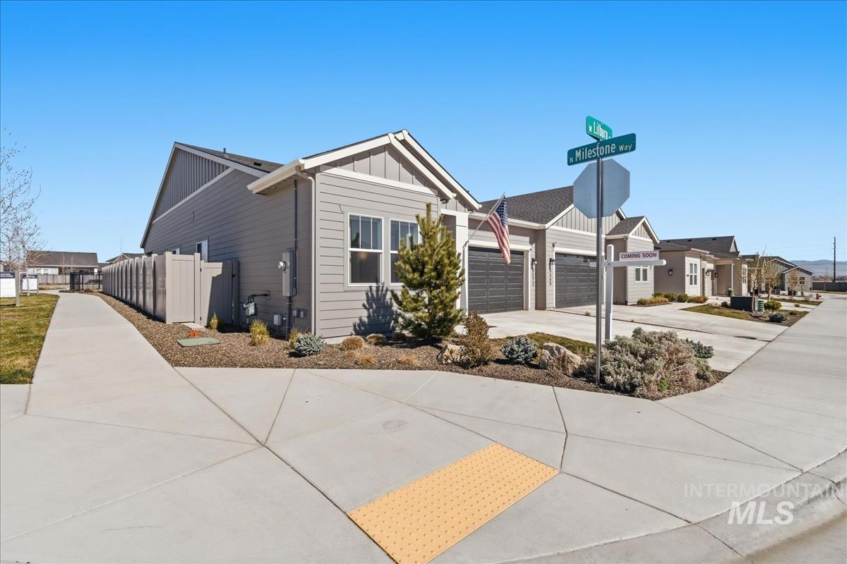 Welcome home to this modern, stylish townhome in the desirable Milestone Ranch community, built in 2023. This former model home is in the heart of Star`s Milestone Ranch—a low-maintenance, lock-and-leave lifestyle at its finest. This beautifully designed 2-bedroom, 2-bath townhome offers 1,840 square feet of bright, open living space with premium finishes throughout. Step inside to an inviting open-concept layout where the foyer and dedicated office space seamlessly flow into the charming great room. Large windows fill the home with natural light and provide picturesque views of the expansive covered patio—perfect for year-round outdoor enjoyment, entertaining, or simply relaxing in Idaho`s fresh air. The well-appointed kitchen features contemporary cabinetry, ample counter space, stainless steel appliances, and a functional island—ideal for casual meals or hosting friends. The primary suite is a peaceful retreat with generous closet space and a spa-like ensuite bath. The second bedroom offers flexibility as a guest room, hobby space, or home office. With no back neighbors, tons of upgrades as the model home and a large yard, this is the house you have been dreaming of.