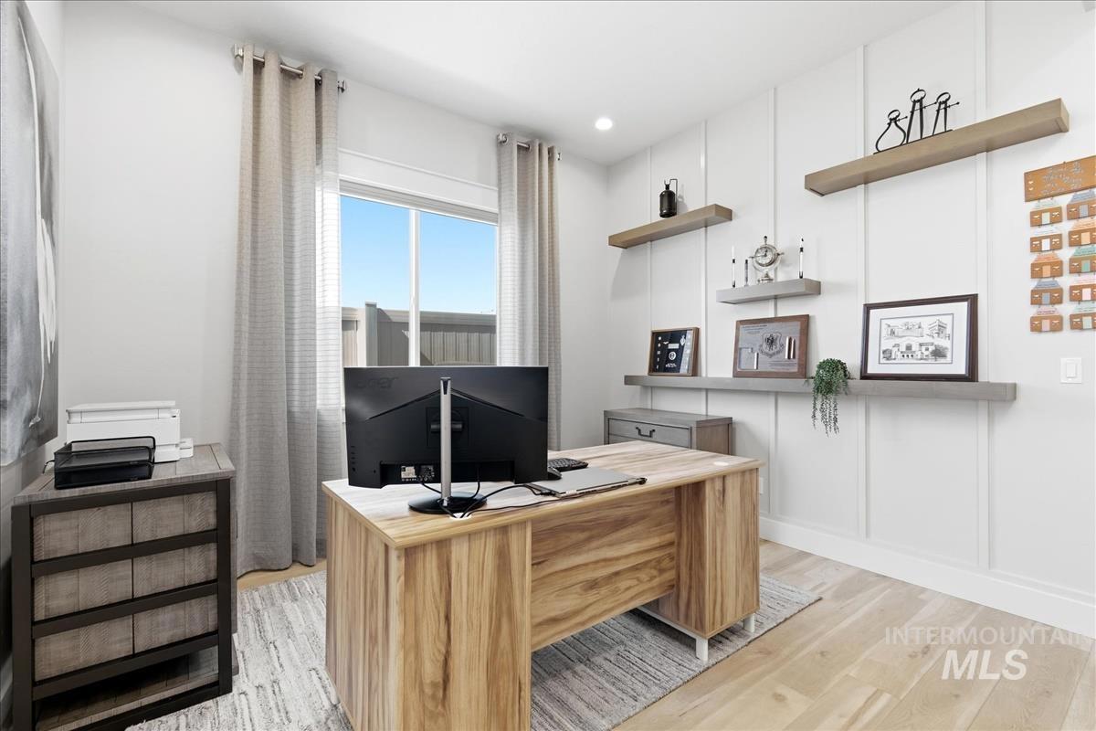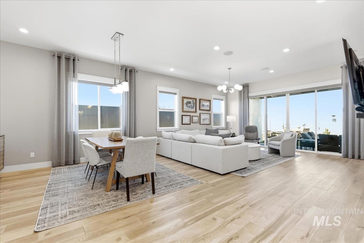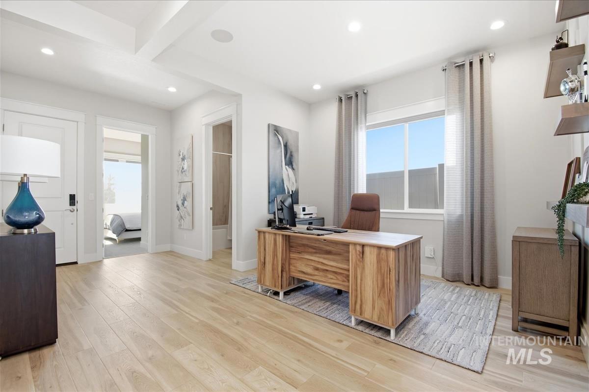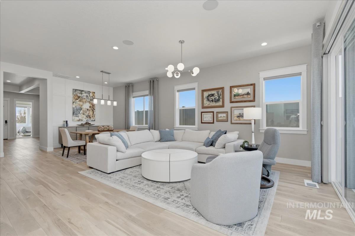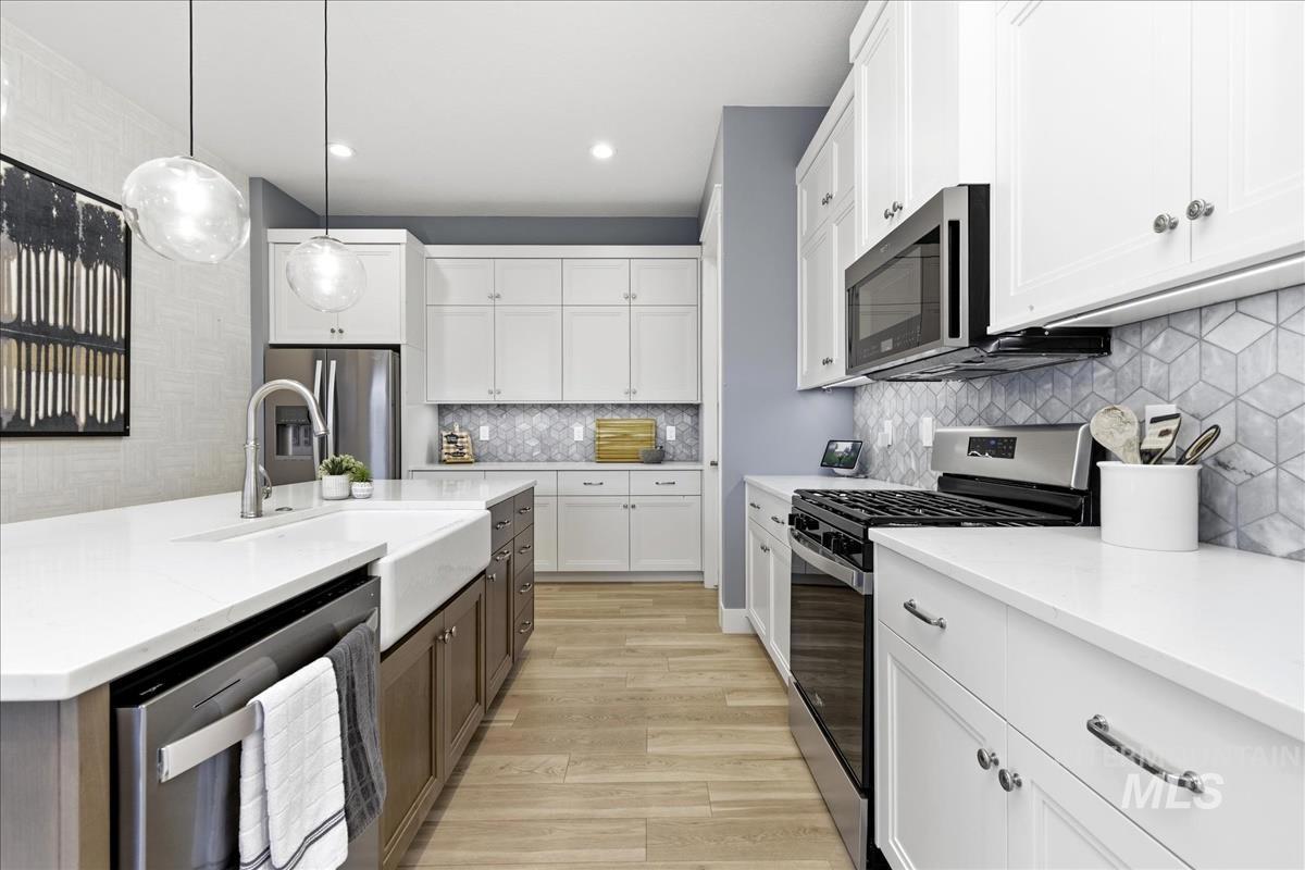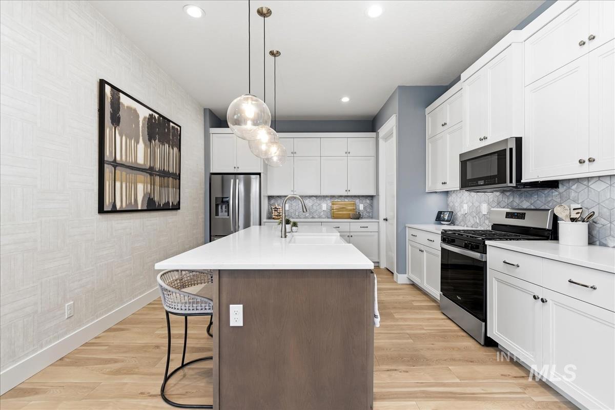 Welcome home to this modern, stylish townhome in the desirable Milestone Ranch community, built in 2023. This former model home is in the heart of Star`s Milestone Ranch—a low-maintenance, lock-and-leave lifestyle at its finest. This beautifully designed 2-bedroom, 2-bath townhome offers 1,840 square feet of bright, open living space with premium finishes throughout. Step inside to an inviting open-concept layout where the foyer and dedicated office space seamlessly flow into the charming great room. Large windows fill the home with natural light and provide picturesque views of the expansive covered patio—perfect for year-round outdoor enjoyment, entertaining, or simply relaxing in Idaho`s fresh air. The well-appointed kitchen features contemporary cabinetry, ample counter space, stainless steel appliances, and a functional island—ideal for casual meals or hosting friends. The primary suite is a peaceful retreat with generous closet space and a spa-like ensuite bath. The second bedroom offers flexibility as a guest room, hobby space, or home office. With no back neighbors, tons of upgrades as the model home and a large yard, this is the house you have been dreaming of.