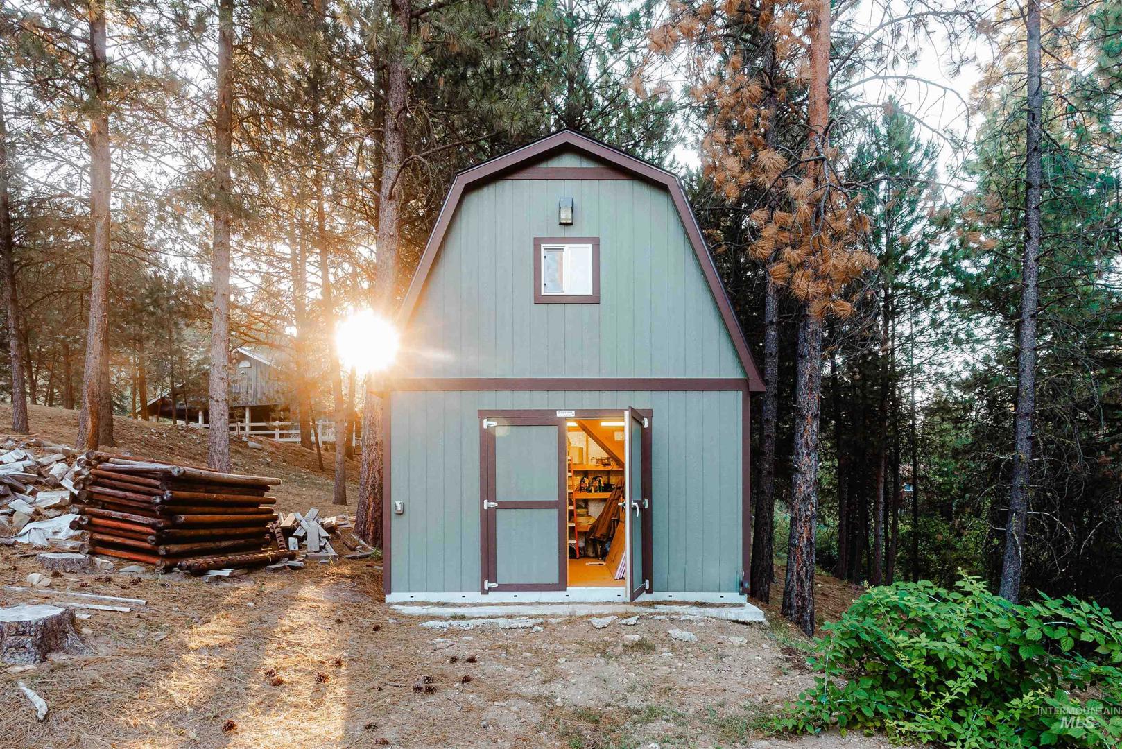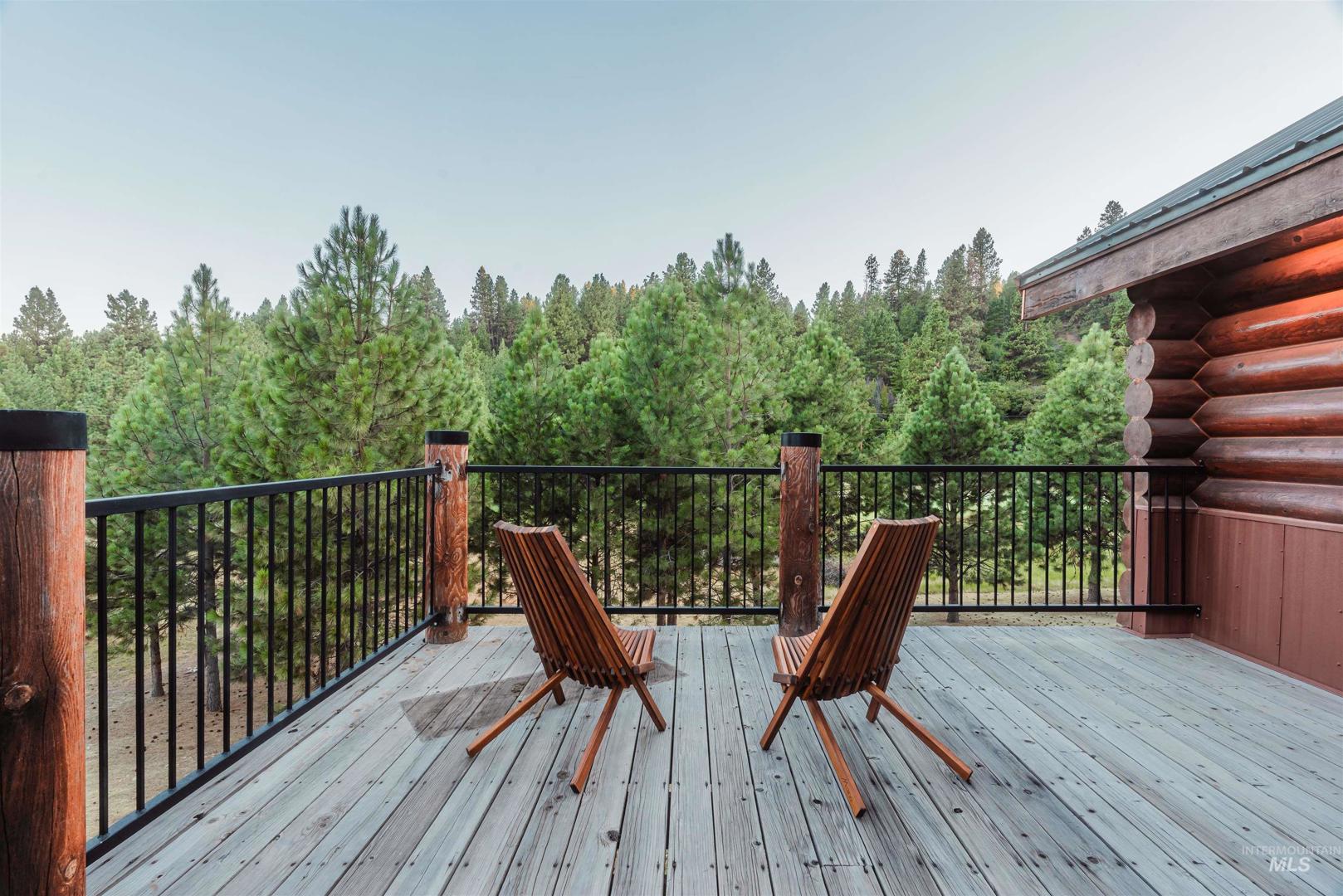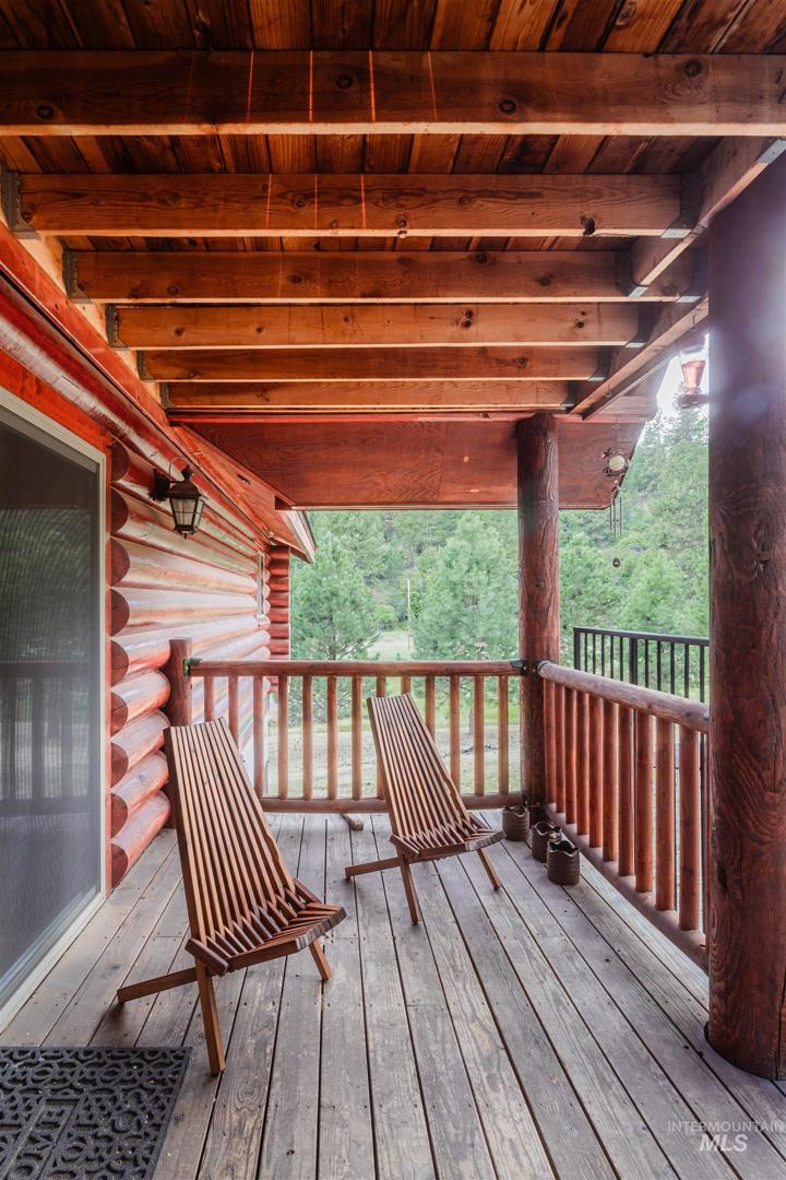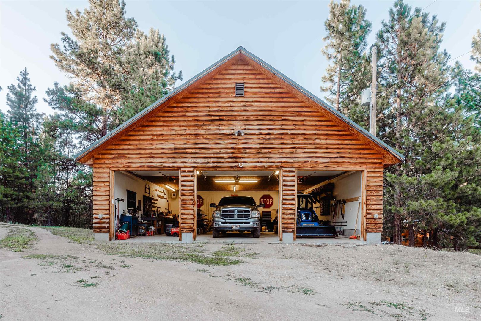 Escape to Wilderness Ranch, just outside of Boise! This 3,958 sq. ft. master-crafted log cabin boasts a vaulted stone fireplace for cozy evenings, new deck railings, and newly refinished hardwood floors. Built with 10” logs, the home also features a lower floor complete with a custom bar, 3 sliding glass door entries, and the potential to make a separate 2 bed, 1 bath living quarters. With nearly 2,000 sq. ft. of covered patio and deck spaces and 2.13 acres of wilderness surroundings, this incredible home immerses you in outdoor living. A 3 bay insulated and heated shop provides ample space for projects and vehicles, complete with 10’ ceilings and 220V power. Elk, deer, and wild turkeys are frequent visitors, making this a true nature retreat. Whether you`re looking for peaceful solitude or room to entertain, this is your chance to own a piece of Idaho paradise in Wilderness Ranch.