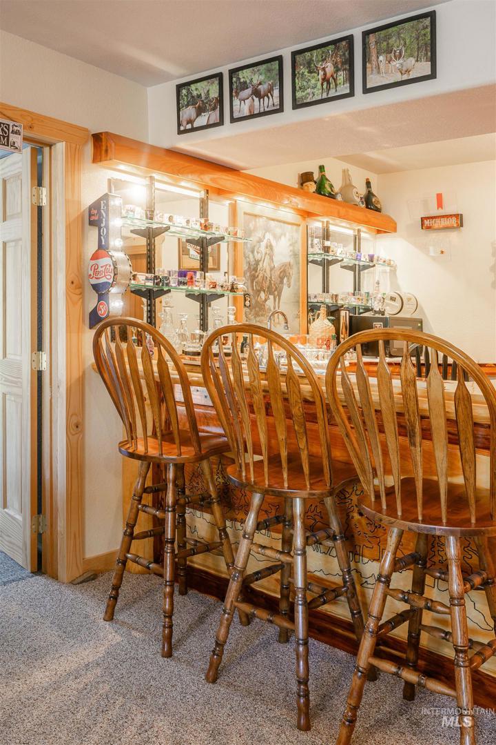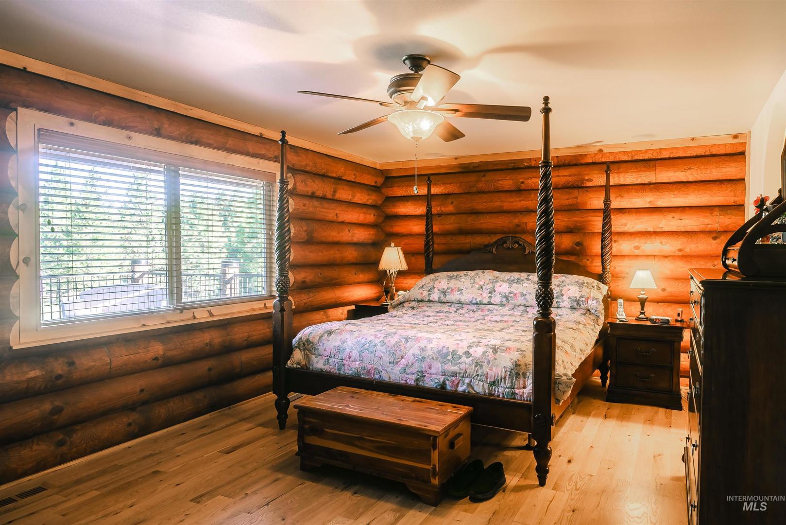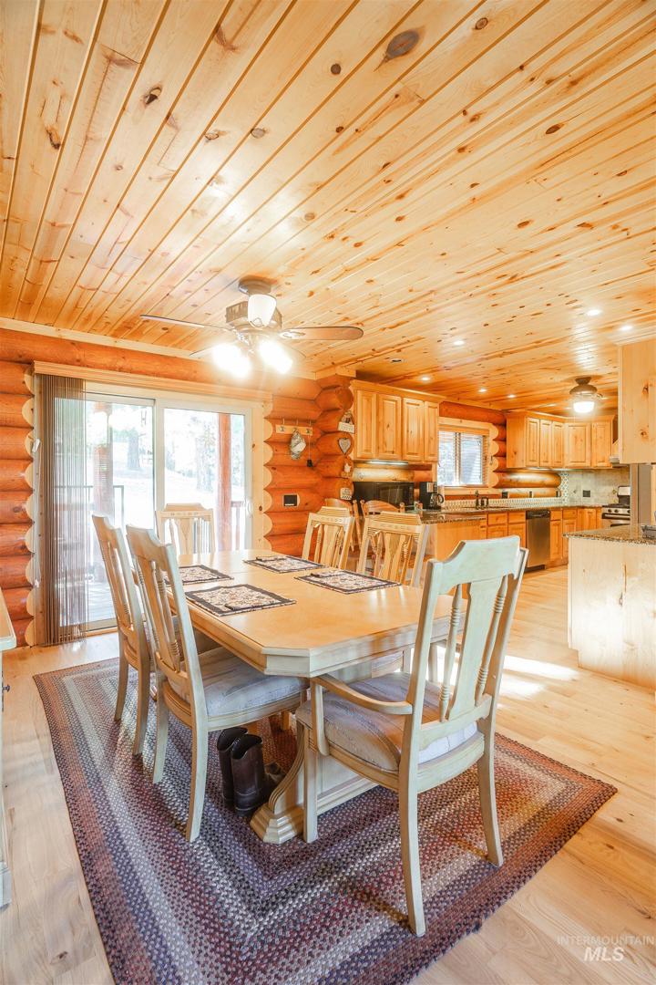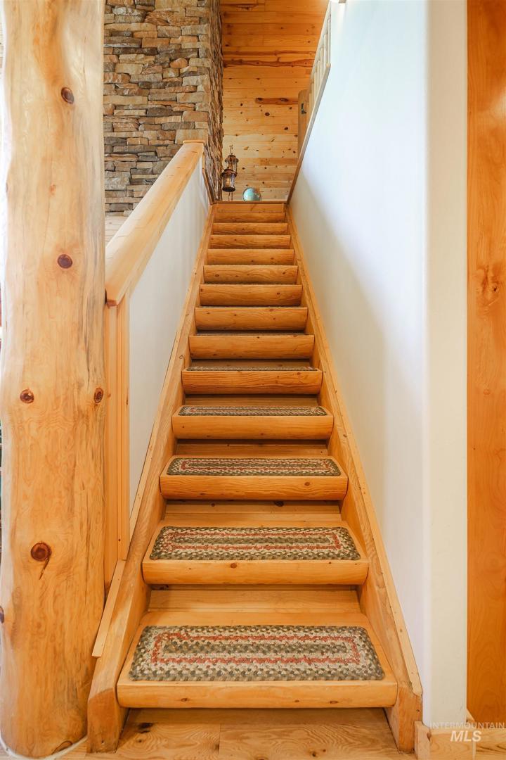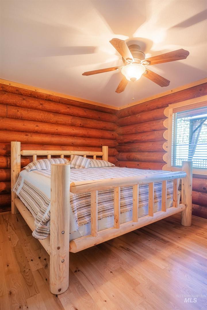 Escape to Wilderness Ranch, just outside of Boise! This 3,958 sq. ft. master-crafted log cabin boasts a vaulted stone fireplace for cozy evenings, new deck railings, and newly refinished hardwood floors. Built with 10” logs, the home also features a lower floor complete with a custom bar, 3 sliding glass door entries, and the potential to make a separate 2 bed, 1 bath living quarters. With nearly 2,000 sq. ft. of covered patio and deck spaces and 2.13 acres of wilderness surroundings, this incredible home immerses you in outdoor living. A 3 bay insulated and heated shop provides ample space for projects and vehicles, complete with 10’ ceilings and 220V power. Elk, deer, and wild turkeys are frequent visitors, making this a true nature retreat. Whether you`re looking for peaceful solitude or room to entertain, this is your chance to own a piece of Idaho paradise in Wilderness Ranch.