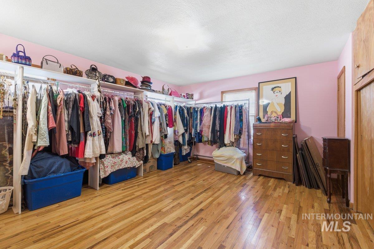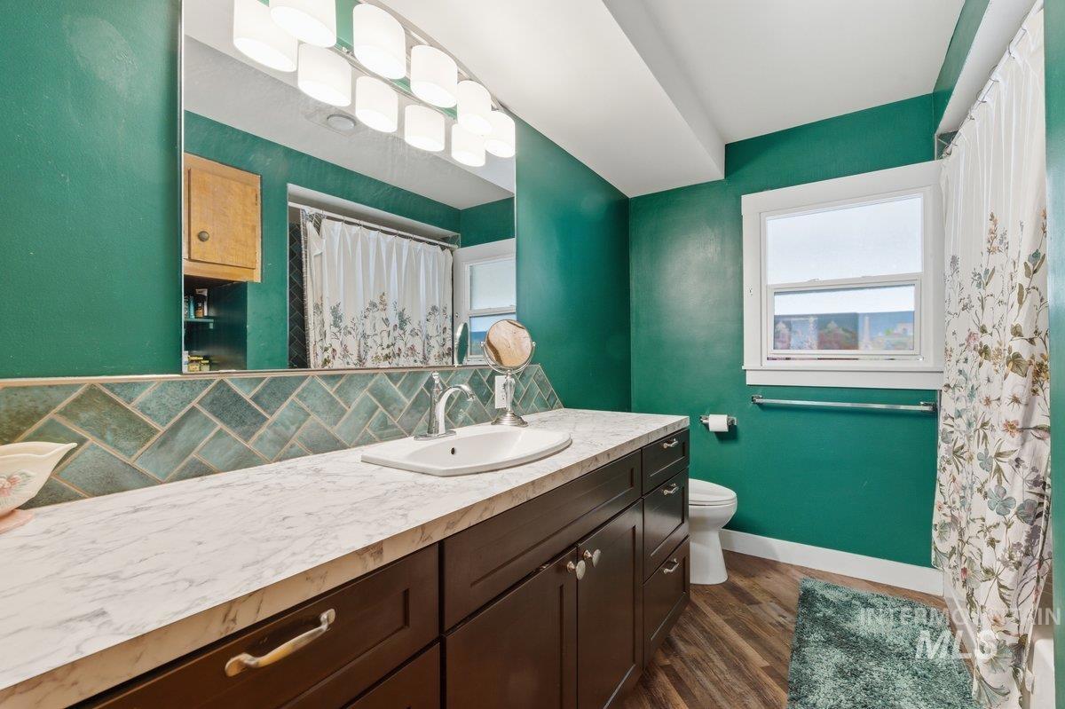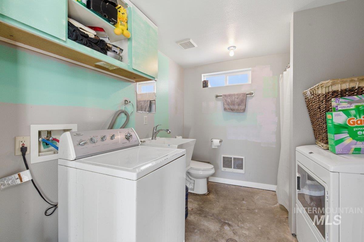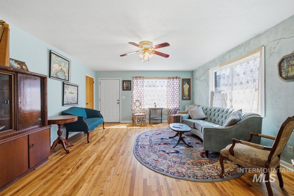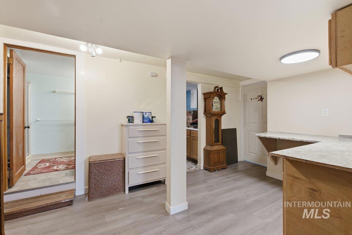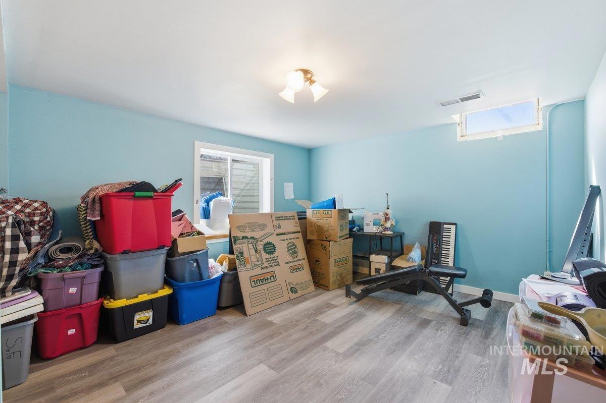 A hidden gem in downtown Nampa! Walk downtown to coffee shops, cafes, & shopping! This 2700+ sq foot home offers classic touches along with modern upgrades. A large shop & Airbnb/office/6th room (bring your own closet ). Entering you will notice the original hardwood floors with an open concept living room/ dining room & kitchen area. All appliances included & tons of storage/ pantry space. 2 Large bedrooms on the main level & a shared bathroom including tile surround tub/shower and laundry hook ups. Downstairs is a full height finished basement (separate access allows for duplex possibilities) with three bedrooms, a full bathroom, a second laundry area and a utility room with 220 power that has been converted to include a large soaking tub. The backyard has a small patio, yard/garden space and alley access. Last but certainly not least is the 24x36 foot insulated shop, 12 foot electric garage door, office, full bathroom (with shower and another laundry hook up!) and includes a large loft storage area. This can be used for RV parking, or home business, as it includes tons of storage! This is a must see property!