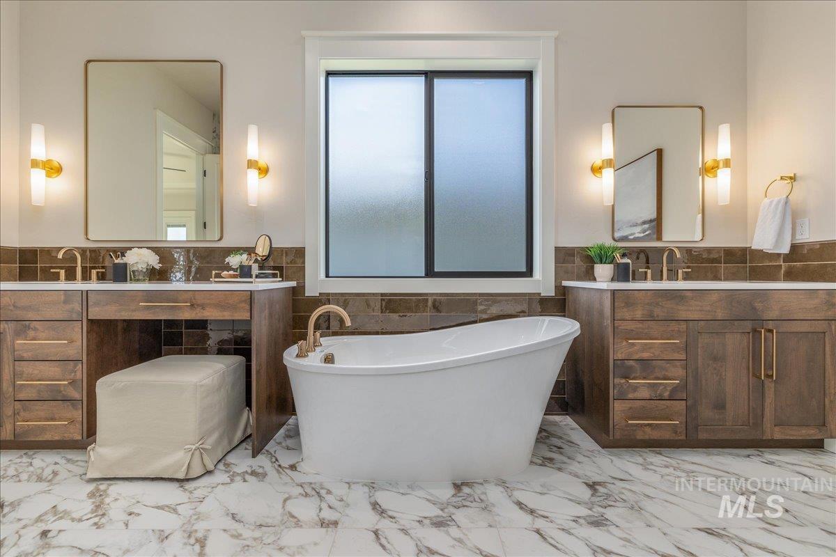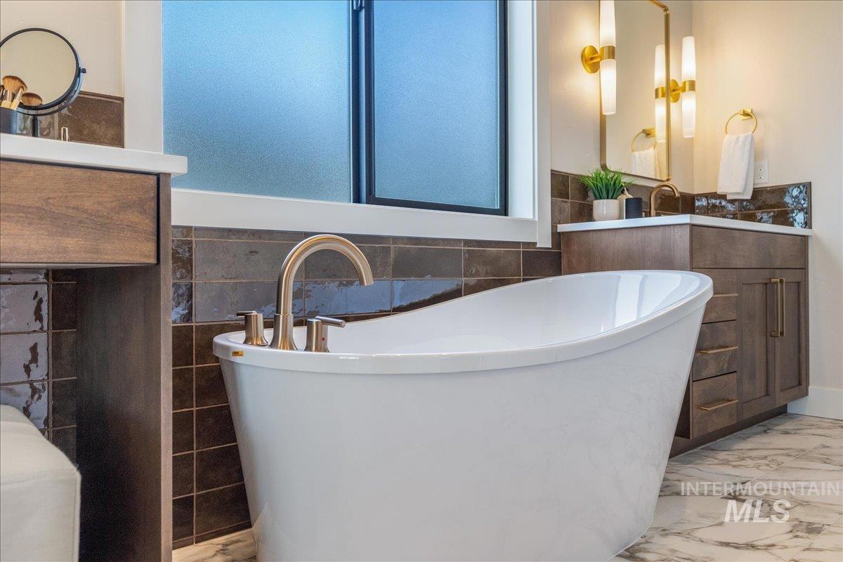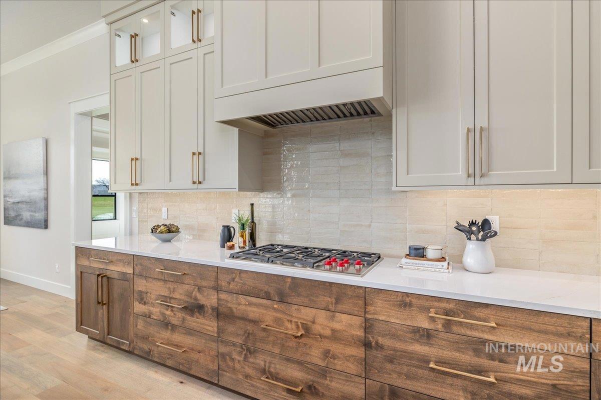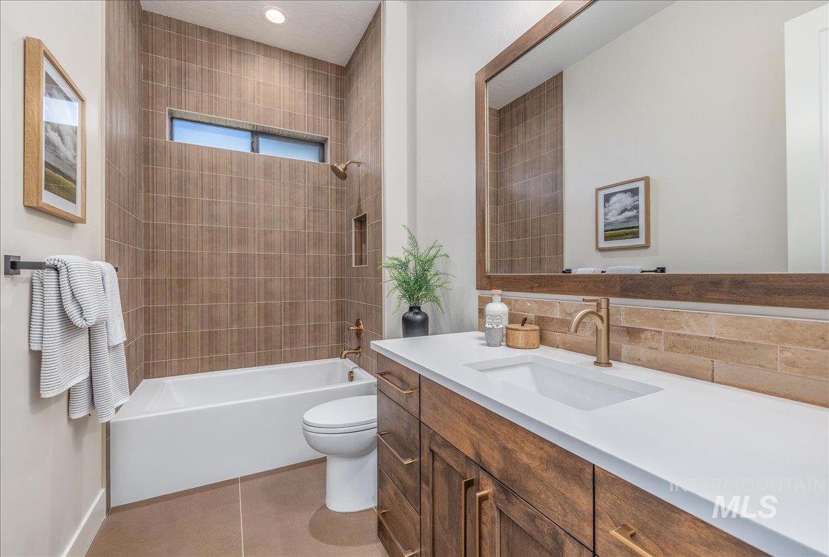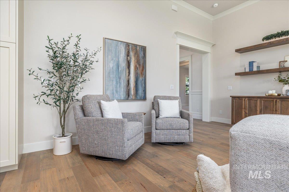 JUST FINISHED, this gorgeous single-level luxury living is in right in the heart of Meridian’s coveted Spurwing. Beautiful architectural details greet you immediately—from the inviting front courtyard to soaring ceilings illuminated by oversized, dramatic windows. Inside, thoughtful design meets everyday comfort with secondary en-suite bedrooms and a spacious bonus/media room, creating an ideal private wing for guests or multigenerational living. The chef’s kitchen is a true showpiece, featuring an expansive quartz island, WOLF® and SUBZERO® appliances, double ovens, a gas range, custom ceiling-height cabinetry, and abundant counter space. The great room offers a seamless place to gather, anchored by a beautiful gas fireplace & elevated by Todd Campbell Custom Homes’ signature trim work, moldings, and wood-wrapped windows. Retreat to the secluded primary suite, a calming oasis complete with a spa-inspired ensuite bath boasting a soaking tub, dual vanities, makeup vanity, & a beautifully tiled walk-in shower. Car enthusiasts and hobbyists will love the fully finished and insulated 1,272 SF RV garage, complete with a 12-ft door and epoxy flooring. Situated on nearly a quarter acre, the property comes fully landscaped and move-in ready—one of the final opportunities to own a new home in Olive Tree at Spurwing. PHOTOS ARE OF THE ACTUAL HOME.