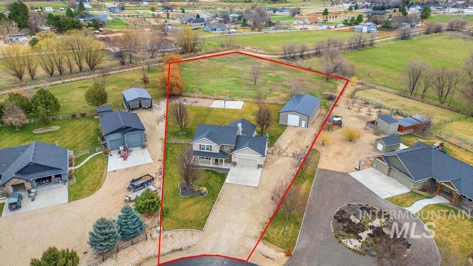 Welcome to your own private slice of country living! Conveniently located outside of Middleton and close to freeway access. Situated on 2.2 fully fenced acres with dedicated pasture space, this property is ready for your animals and outdoor entertaining. The home offers 4 bedrooms and 2.5 bathrooms, along with multiple living spaces including a comfortable family room and an impressive 24x26 great room addition completed in 2019—perfect for gathering, entertaining, or relaxing. The main living areas were updated with new LVP flooring in 2019. Kitchen boasts stainless steel appliances, stone backsplash, island for extra seating and workspace, and granite countertops. Upstairs, you’ll find a versatile bonus room ideal for a playroom, office, or home gym. Master suite includes large walk-in closet, his and hers vanities, large soaker tub, & step in shower with dual shower heads. Outside is an entertainer`s dream & features a large patio space, hot tub, concrete basketball court, & swing set. Need space for projects, storage, or mother-in-law quarters? The 30x60 shop comes with a framed-in 1-bedroom apartment with electrical and plumbing already roughed in—ready for your finishing touches. Separate septic is available and ready to be connected. Whether you`re looking for room to roam, space to work, or a place to entertain, this property offers it all. Call for a tour today!