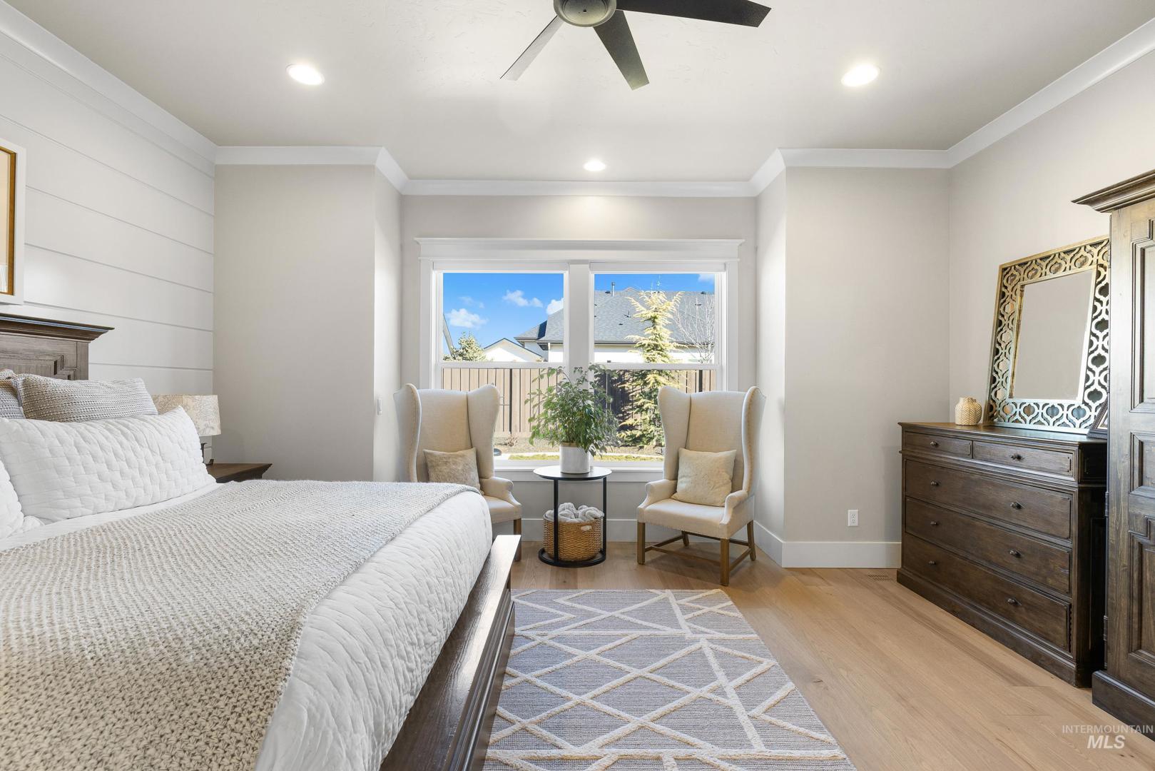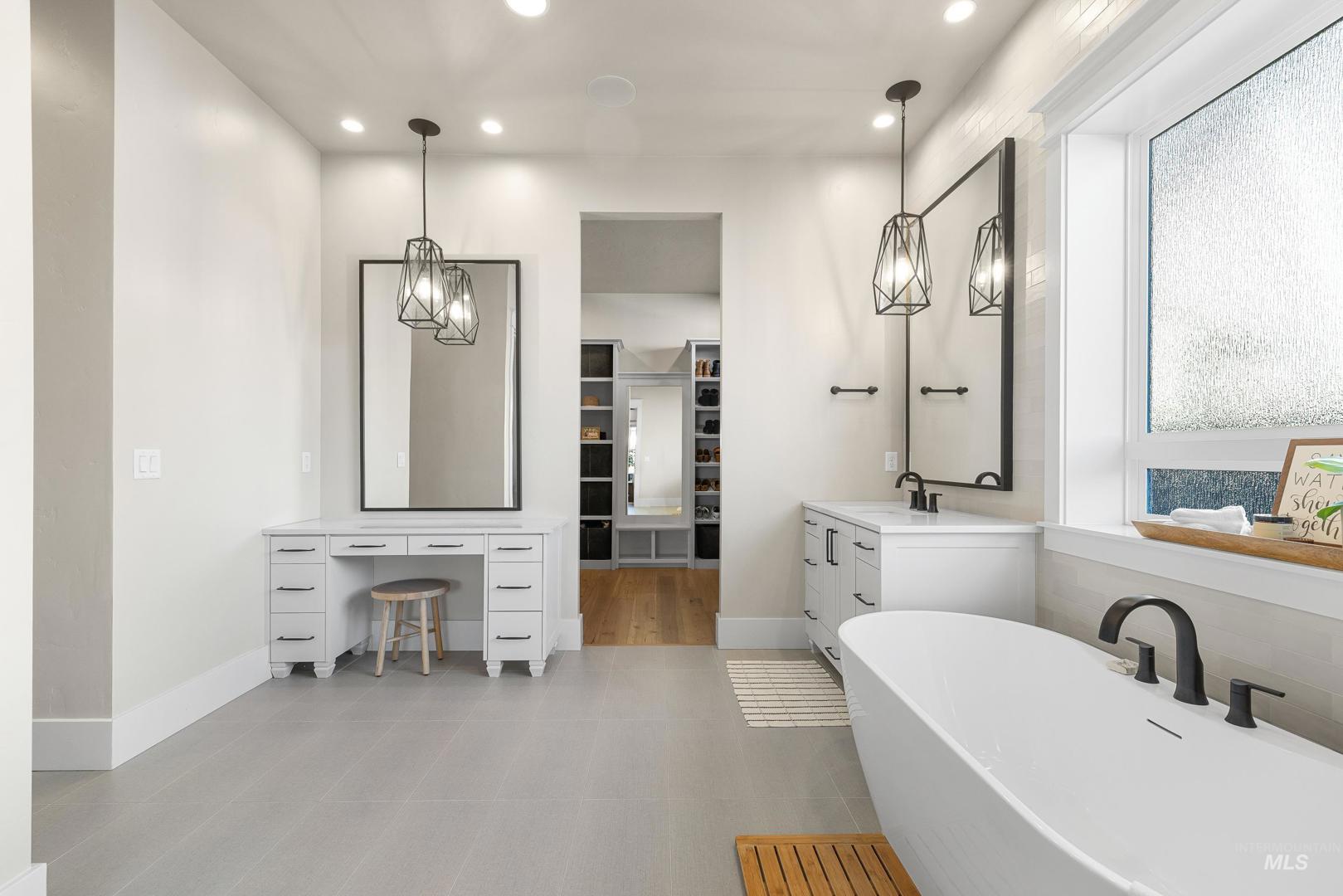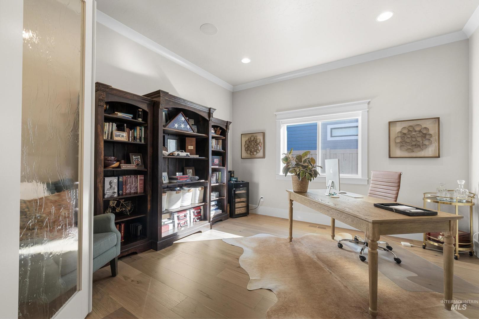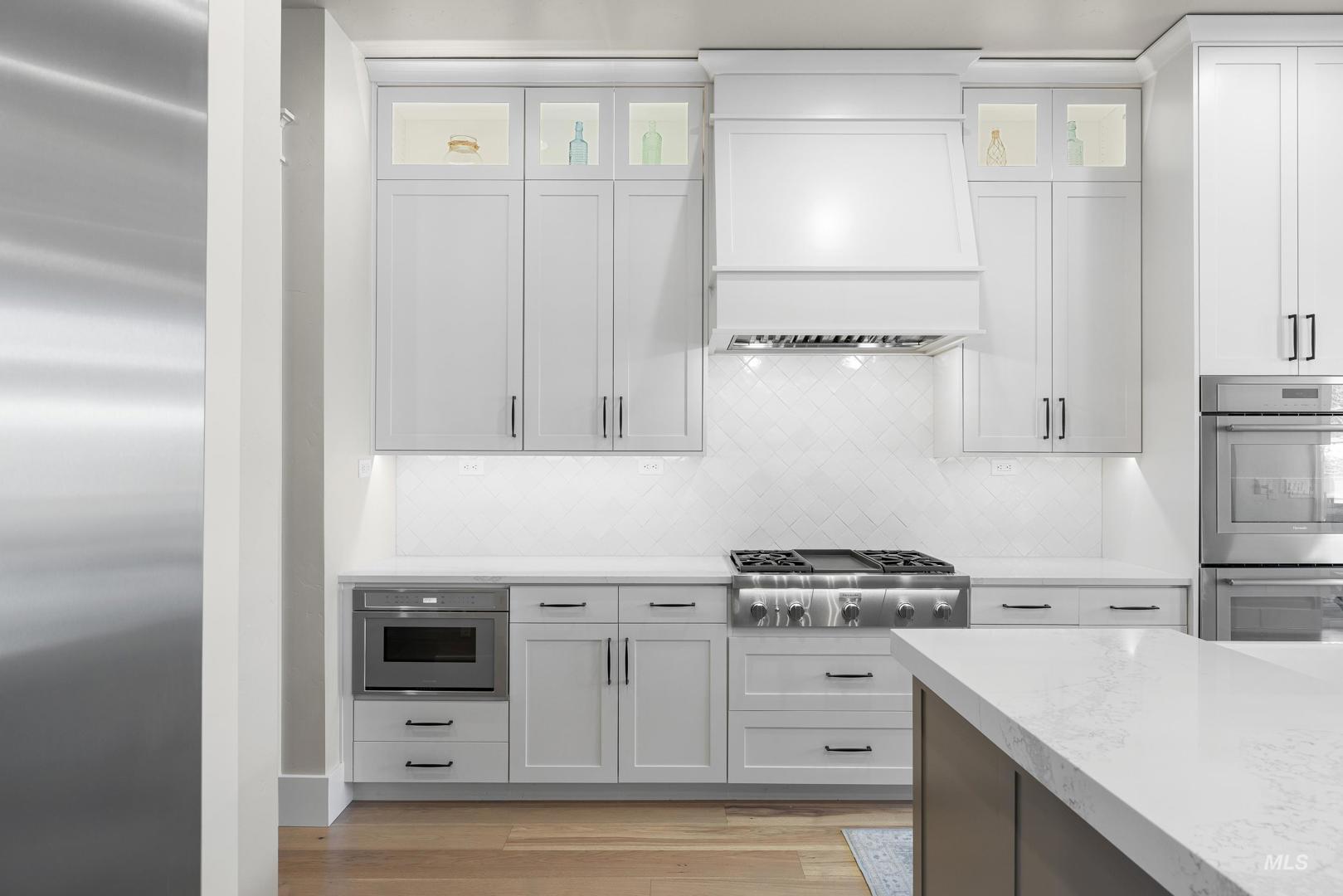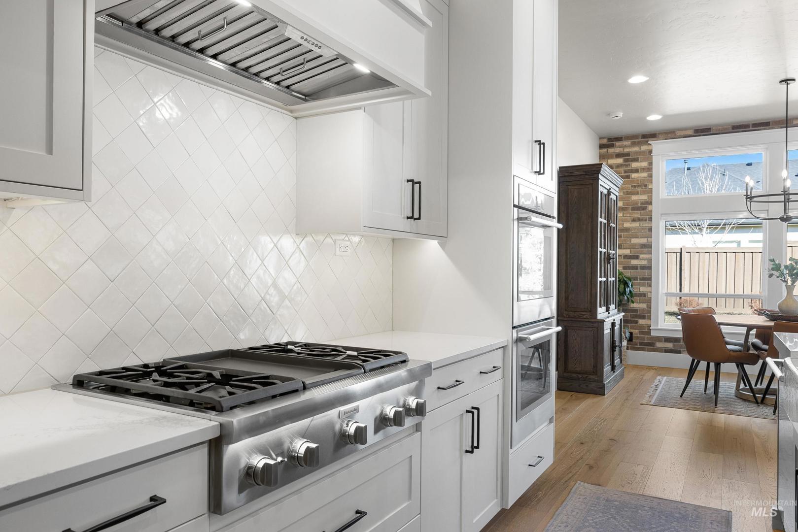 Welcome to a beautifully crafted home by renowned builder James Clyde Homes, where exceptional craftsmanship and comfort are woven into every detail. Thoughtfully designed with 4 spacious bedrooms plus a dedicated office/flex space, this home offers the versatility to fit a variety of lifestyles. From the moment you step inside, rich hardwood floors create a warm, refined foundation throughout the main living spaces. The great room makes a stunning first impression with soaring vaulted ceilings and exposed beam detail, offering both scale and character. The chef’s kitchen is a true centerpiece—featuring professional-grade Thermador appliances, custom cabinetry, and a layout designed for both elevated entertaining and everyday functionality. Whether hosting an intimate dinner or a lively gathering, this space delivers effortlessly. Additional highlights include an oversized garage with durable epoxy flooring, whole-home automated roller shades, a hardwired Unifi exterior security system, and a f ull whole-house audio system with surround sound extending to the patio. Step outside to enjoy the built-in gas fireplace—perfect for year-round outdoor living. Ideally situated in one of Eagle’smost desirable areas, this home offers the perfect blend of lifestyle and convenience. Enjoy easy access to the Boise River Greenbelt, Eagle Island State Park, and a nearby community park.