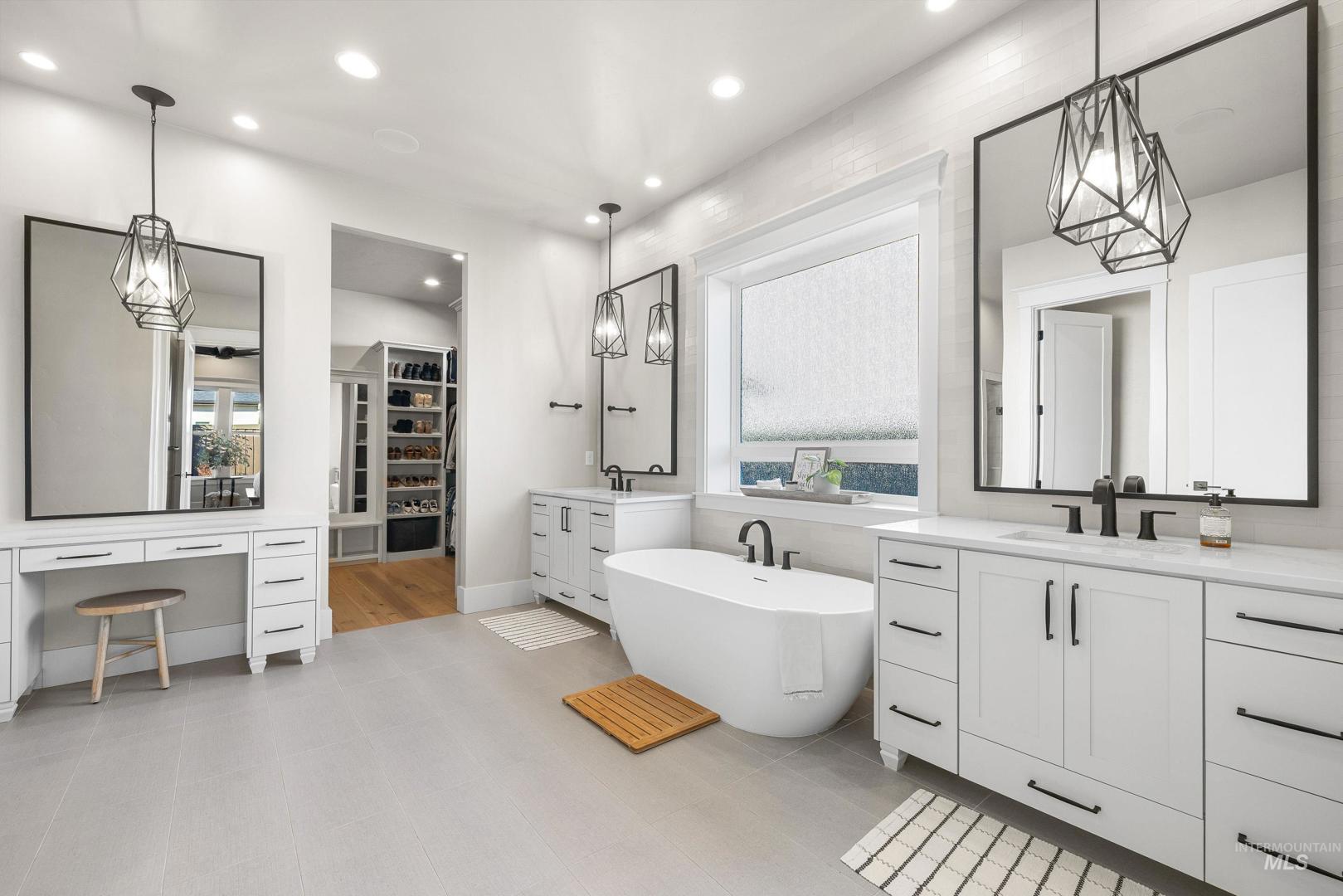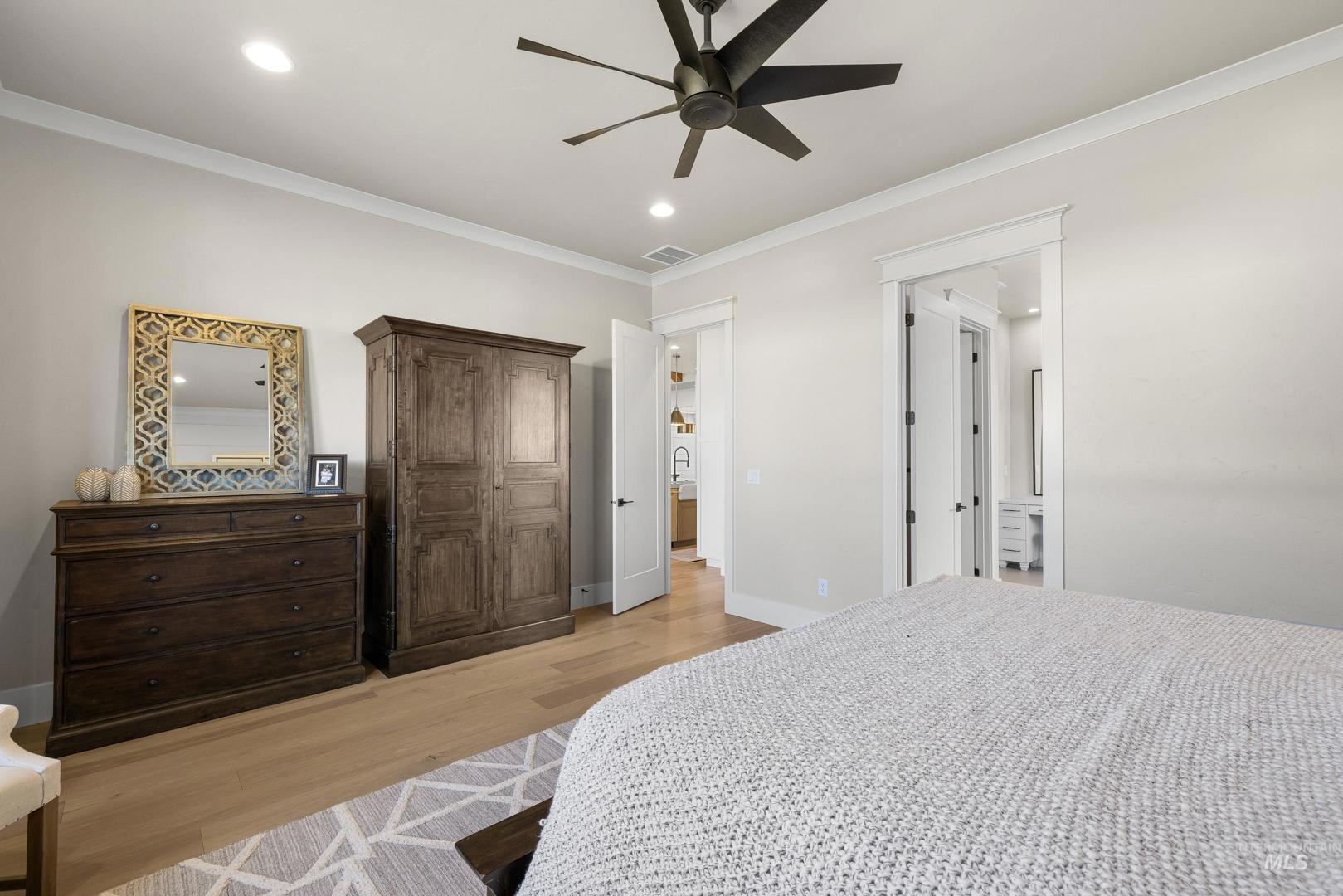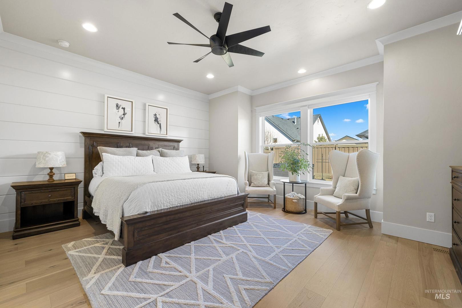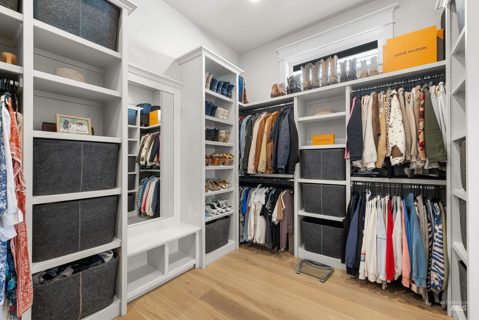Welcome to a beautifully crafted home by renowned builder James Clyde Homes, where exceptional craftsmanship and comfort are woven into every detail. Thoughtfully designed with 4 spacious bedrooms plus a dedicated office/flex space, this home offers the versatility to fit a variety of lifestyles. From the moment you step inside, rich hardwood floors create a warm, refined foundation throughout the main living spaces. The great room makes a stunning first impression with soaring vaulted ceilings and exposed beam detail, offering both scale and character. The chef’s kitchen is a true centerpiece—featuring professional-grade Thermador appliances, custom cabinetry, and a layout designed for both elevated entertaining and everyday functionality. Whether hosting an intimate dinner or a lively gathering, this space delivers effortlessly. Additional highlights include an oversized garage with durable epoxy flooring, whole-home automated roller shades, a hardwired Unifi exterior security system, and a f ull whole-house audio system with surround sound extending to the patio. Step outside to enjoy the built-in gas fireplace—perfect for year-round outdoor living. Ideally situated in one of Eagle’smost desirable areas, this home offers the perfect blend of lifestyle and convenience. Enjoy easy access to the Boise River Greenbelt, Eagle Island State Park, and a nearby community park.