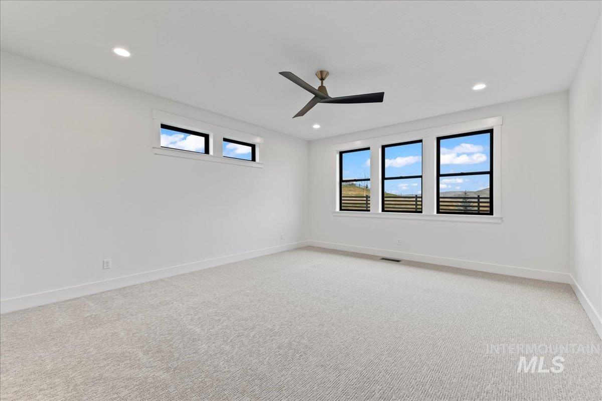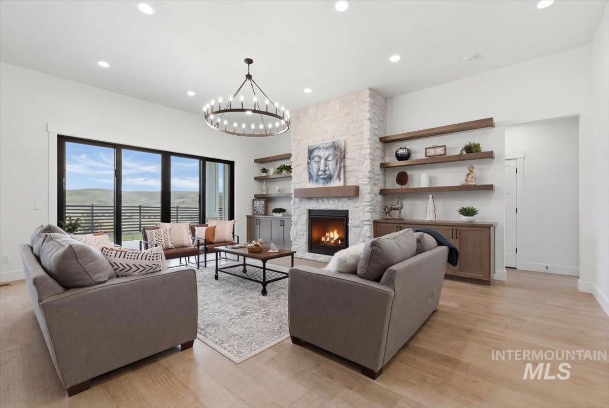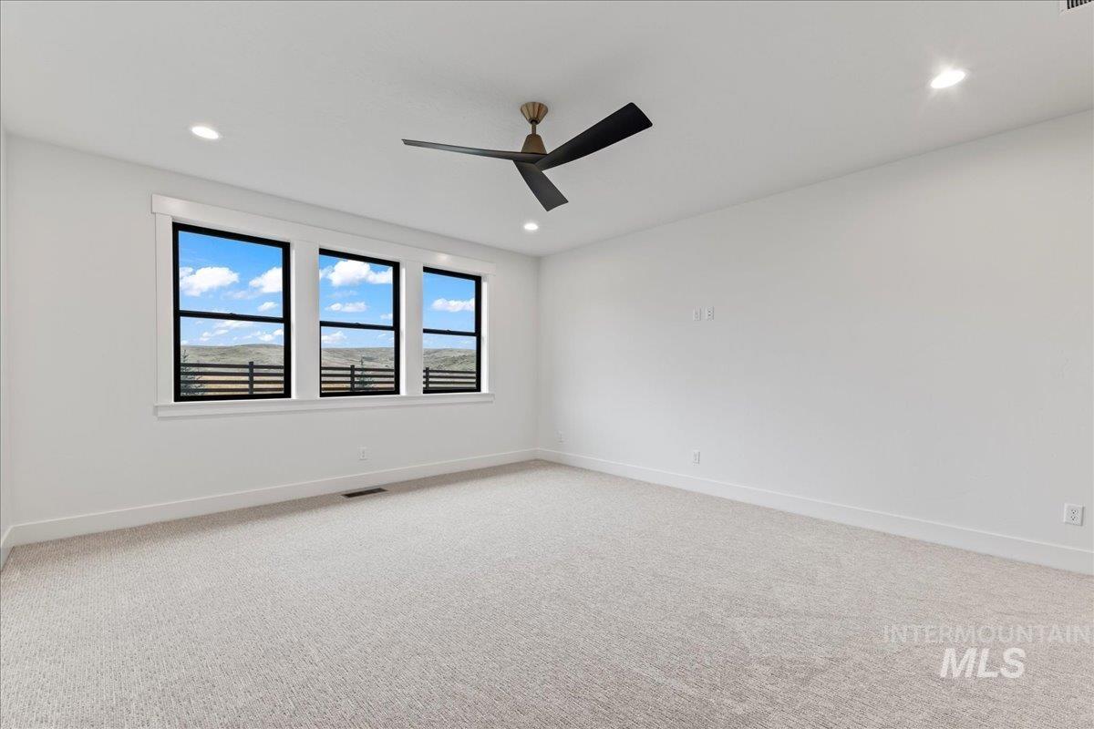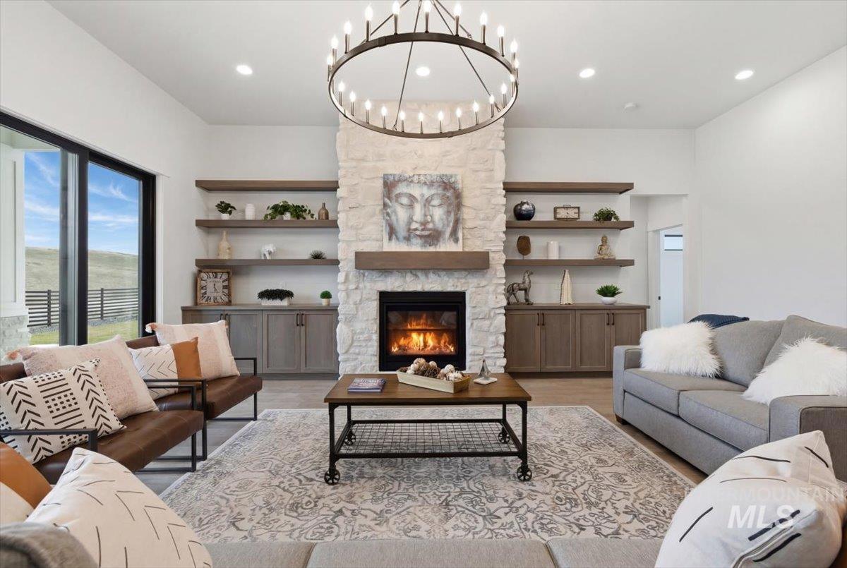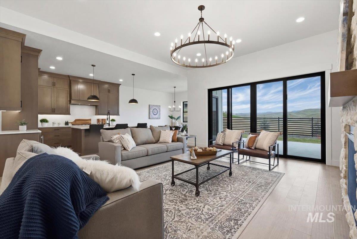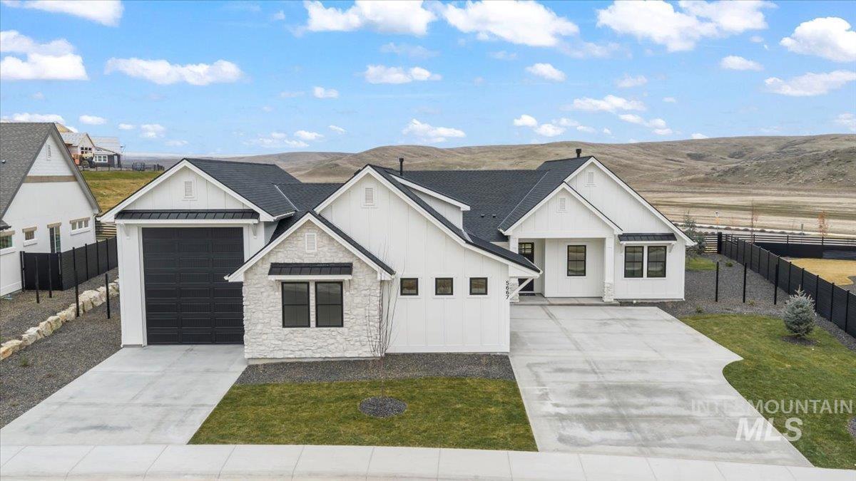Brookstone Custom Homes has built an amazing plan on this view lot! The Christine RV is just the right size and the garage is HUGE, 1,733 sqft, and is the biggest garage in the community with a deep 3 car garage plus an RV bay that has a14ft tall door and is 45ft deep. The inside is even better with beautiful finishes with 11ft tall ceiling in the great room, floor to ceiling stone fireplace, built in cabinets and floating shelves surrounding the fireplace. The kitchen features stained cabinets to the ceiling, quartz countertops, Bosch appliances with double ovens and a 36in gas cooktop. This open concept is perfect for entertaining family and guests with huge Pella windows to take in the views of Bogus Basin and the surrounding foothills! The primary suite gives great space for furniture and a sitting area to relax and take in the views. The bathroom has a tiled walk in shower and tile surround tub to soak the day away. 2 comfortable guest rooms and a shared bath with a tiled tub surround shower. Go out back to a huge covered patio to take in those amazing foothill views - perfect for a BBQ and entertaining! The garage has the room for all the toys and the floor is epoxy painted. Welcome Home!