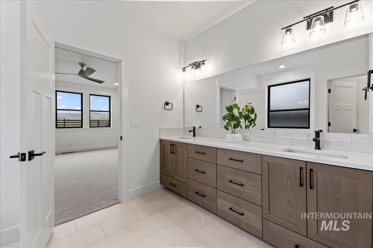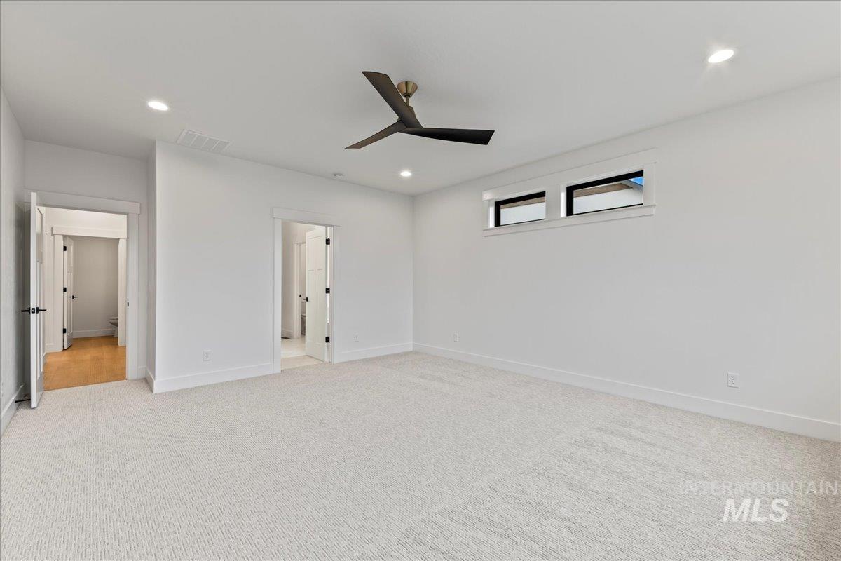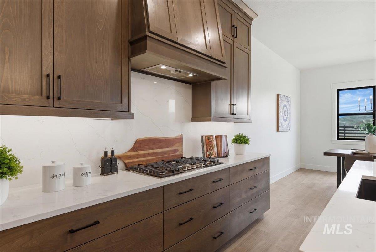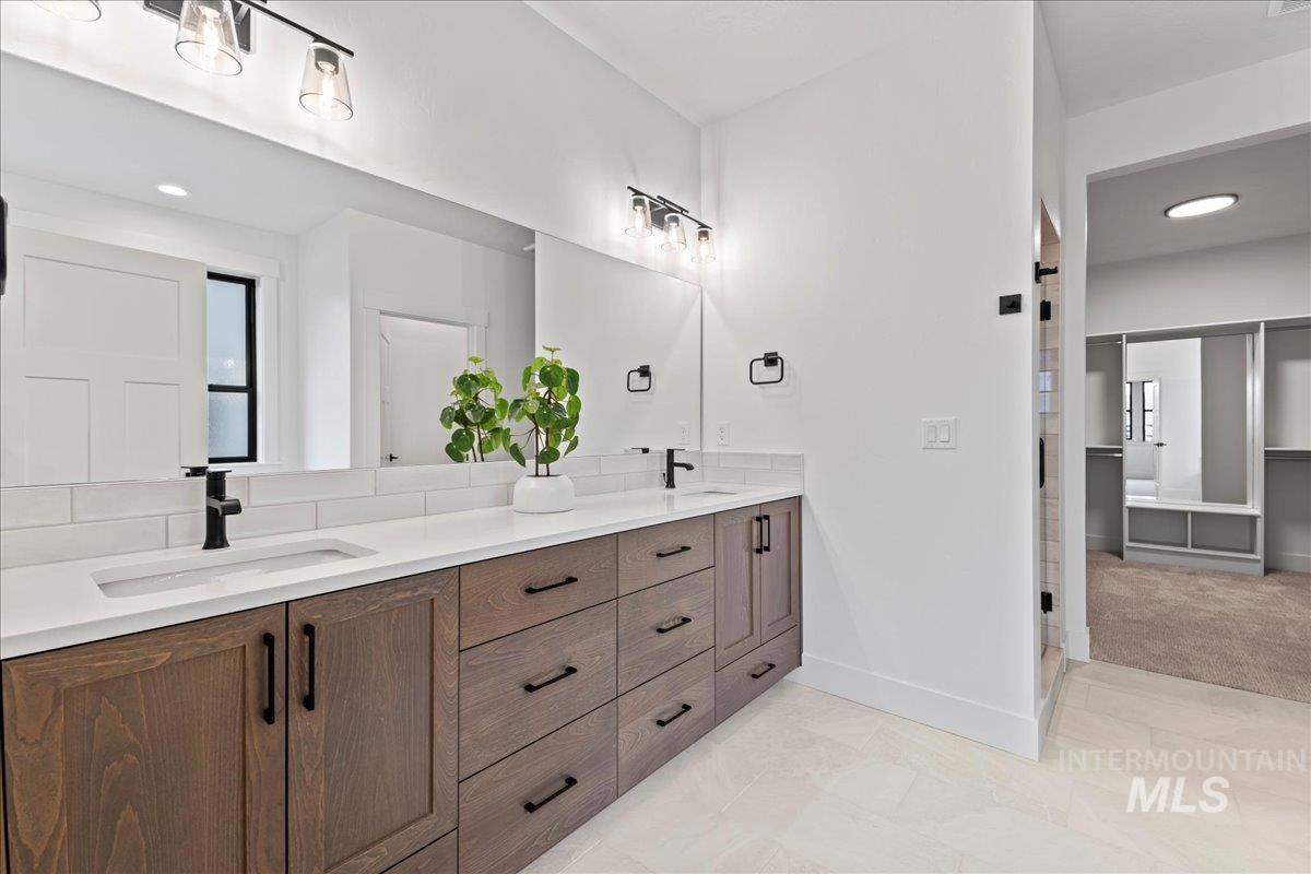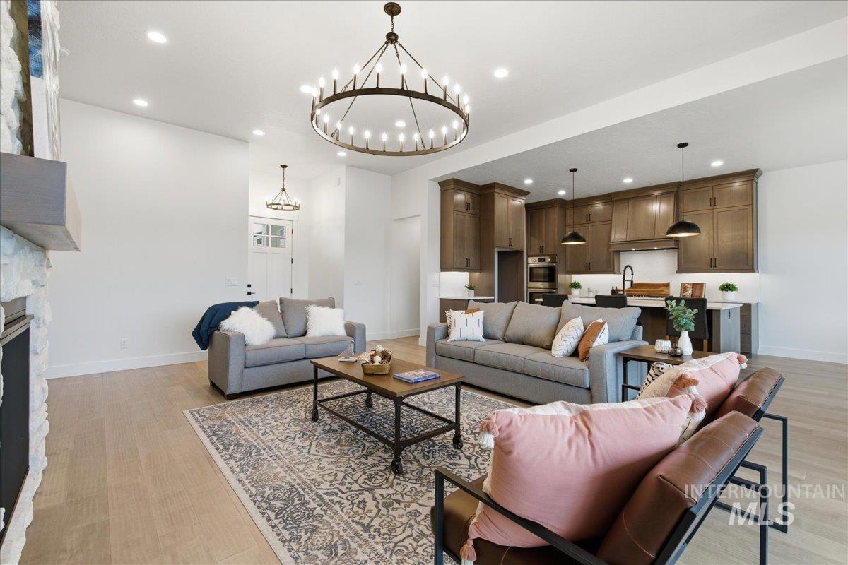 Brookstone Custom Homes has built an amazing plan on this view lot! The Christine RV is just the right size and the garage is HUGE, 1,733 sqft, and is the biggest garage in the community with a deep 3 car garage plus an RV bay that has a14ft tall door and is 45ft deep. The inside is even better with beautiful finishes with 11ft tall ceiling in the great room, floor to ceiling stone fireplace, built in cabinets and floating shelves surrounding the fireplace. The kitchen features stained cabinets to the ceiling, quartz countertops, Bosch appliances with double ovens and a 36in gas cooktop. This open concept is perfect for entertaining family and guests with huge Pella windows to take in the views of Bogus Basin and the surrounding foothills! The primary suite gives great space for furniture and a sitting area to relax and take in the views. The bathroom has a tiled walk in shower and tile surround tub to soak the day away. 2 comfortable guest rooms and a shared bath with a tiled tub surround shower. Go out back to a huge covered patio to take in those amazing foothill views - perfect for a BBQ and entertaining! The garage has the room for all the toys and the floor is epoxy painted. Welcome Home!