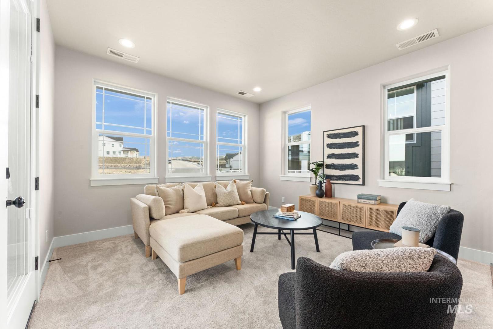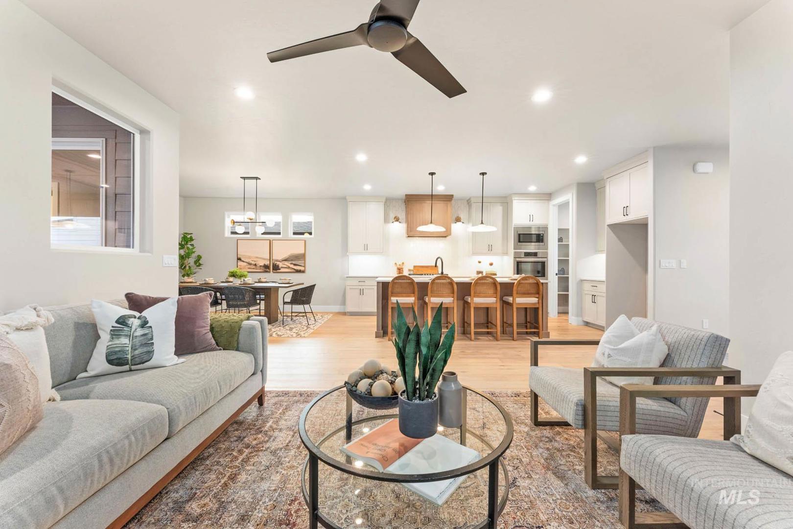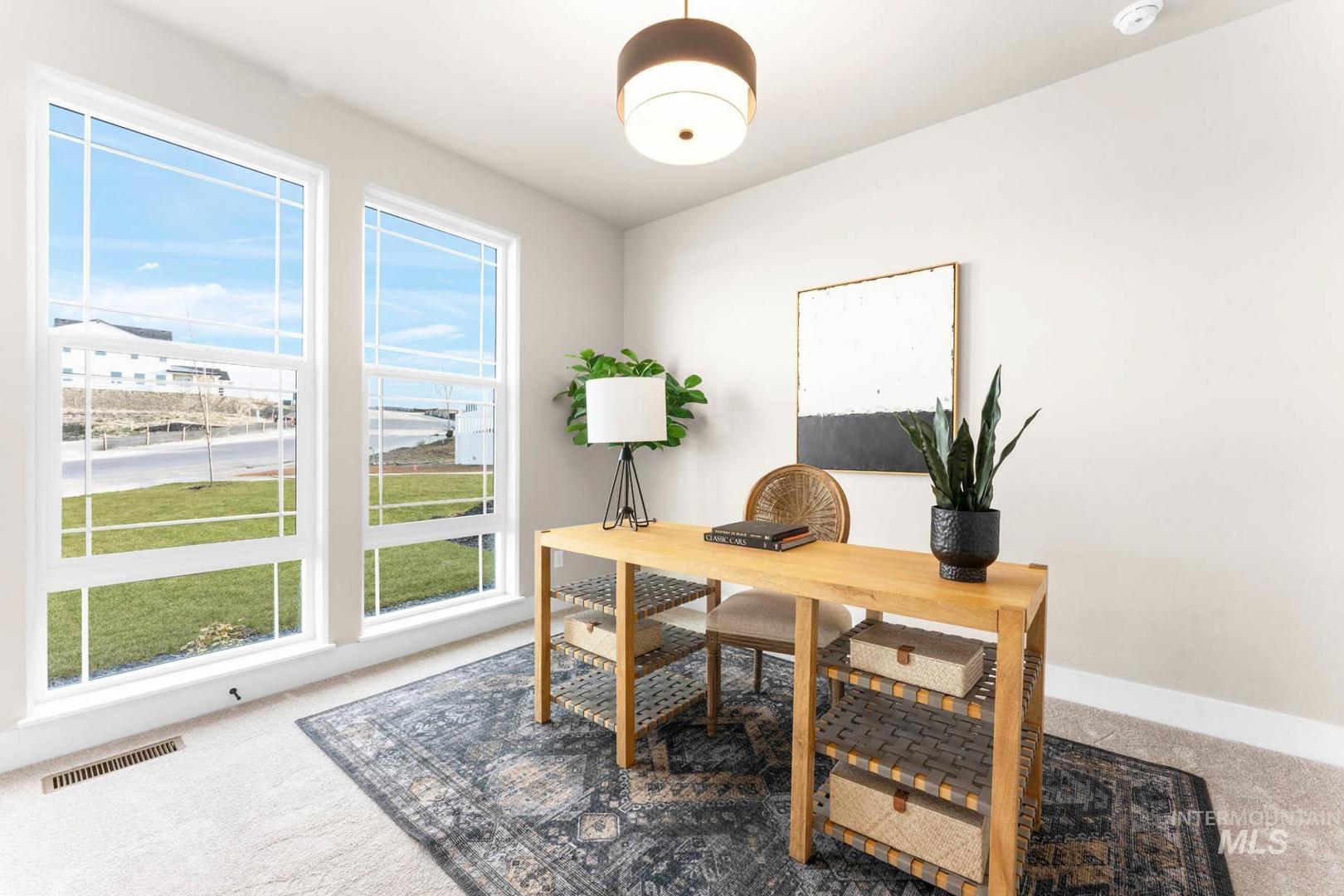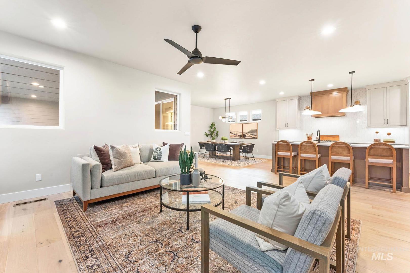Enjoy exclusive lock and leave living at one of the most affordable price points in Dry Creek Ranch. This low maintenance home INCLUDES LANDSCAPING and is conveniently located near the 5-acre community center which has a pool, gym, clubhouse, and sport courts. Embark on adventure with hiking/biking trails minutes from your doorstep or take a swing at one of the nearby golf courses. Downtown Eagle`s shops and restaurants are waiting to be explored just a quick drive away. Step through the covered porch into the home, where a well-lit office sits just off the foyer. The entry opens into a wide-open floorplan designed for entertaining, with the great room and gourmet kitchen connected for seamless living. The great room is anchored by a platform fireplace and opens to views of the covered patio. The kitchen features a spacious island, handsome cabinetry, and walk-in pantry. Upstairs, the large primary suite offers a luxurious bath with a fully tiled shower, linen storage, and a generous walk-in closet. Completing the second floor are several bedrooms and a flexible loft with its own balcony. The 3-car garage offers plenty of space to store your vehicles and toys. Peaceful low maintenance living means you can explore the best of what Idaho has to offer. Proximity to highway 55 allows for short day trips or longer vacations to hot springs, ski resorts, lakes, mountains, and more.