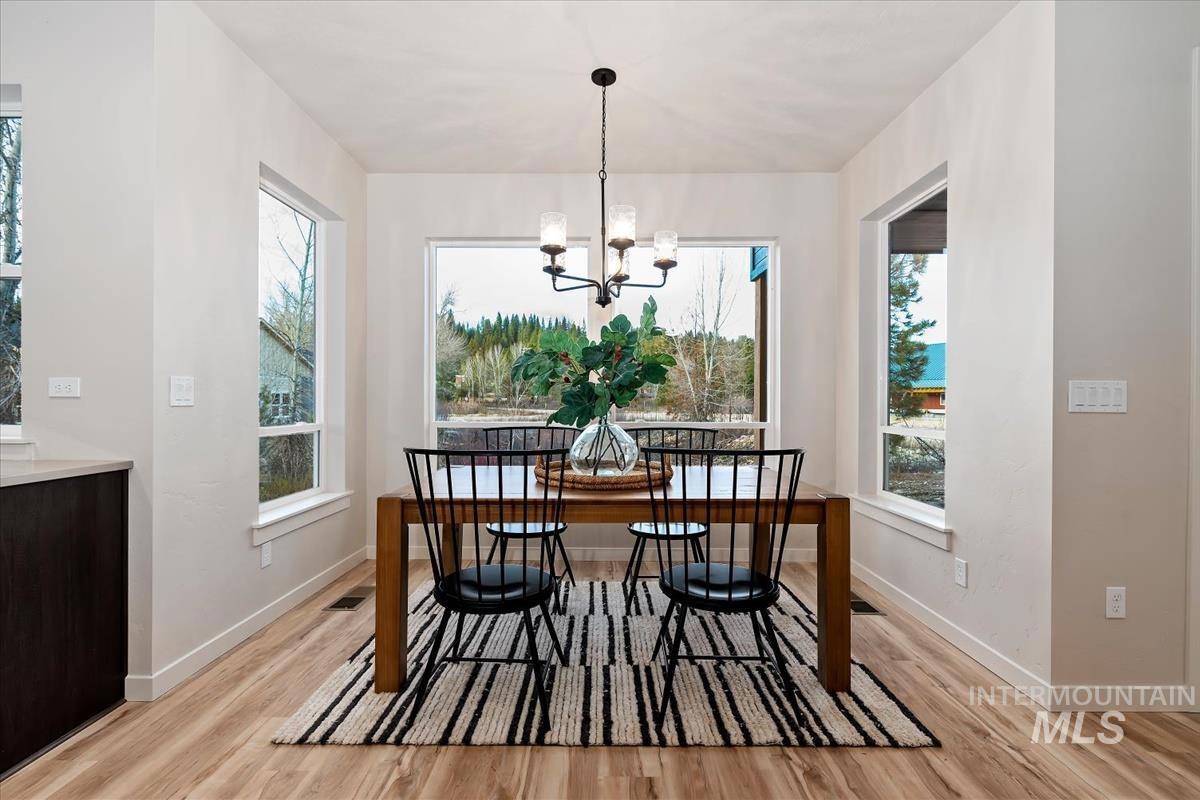 Adventure Awaits – Turn-Key Mountain Living with Modern Convenience! This like-new 1,980 sq ft, 3 bedroom, 2 bathroom home offers thoughtful design and effortless mountain living. The bright open-concept great room is filled with natural light from large windows and flows seamlessly into the dining area and kitchen — perfect for entertaining or relaxing after a day outdoors. The kitchen also features a butler’s pantry for extra storage and prep space. Cozy up by the pellet stove or unwind in the spacious primary suite, designed for comfort with a large closet that conveniently connects to the laundry/utility room. Practical features include wiring for full-house backup power, fiber optic installed for key work at home reliability, and side parking with plenty of space for RVs, trailers, or recreational toys, as this home sits on a 1/3 acre. Located near Mores Creek, you’ll enjoy easy access to UTV trails, hiking, fishing, and nearby hot springs — making this property an outdoor enthusiast’s dream. Experience the charm of Idaho City’s mountain lifestyle while still being within commuting distance: approximately 45 traffic free scenic minutes to Micron and about 50 minutes to Boise Airport and downtown Boise. A rare blend of comfort, adventure, and modern mountain living — this one is truly special.