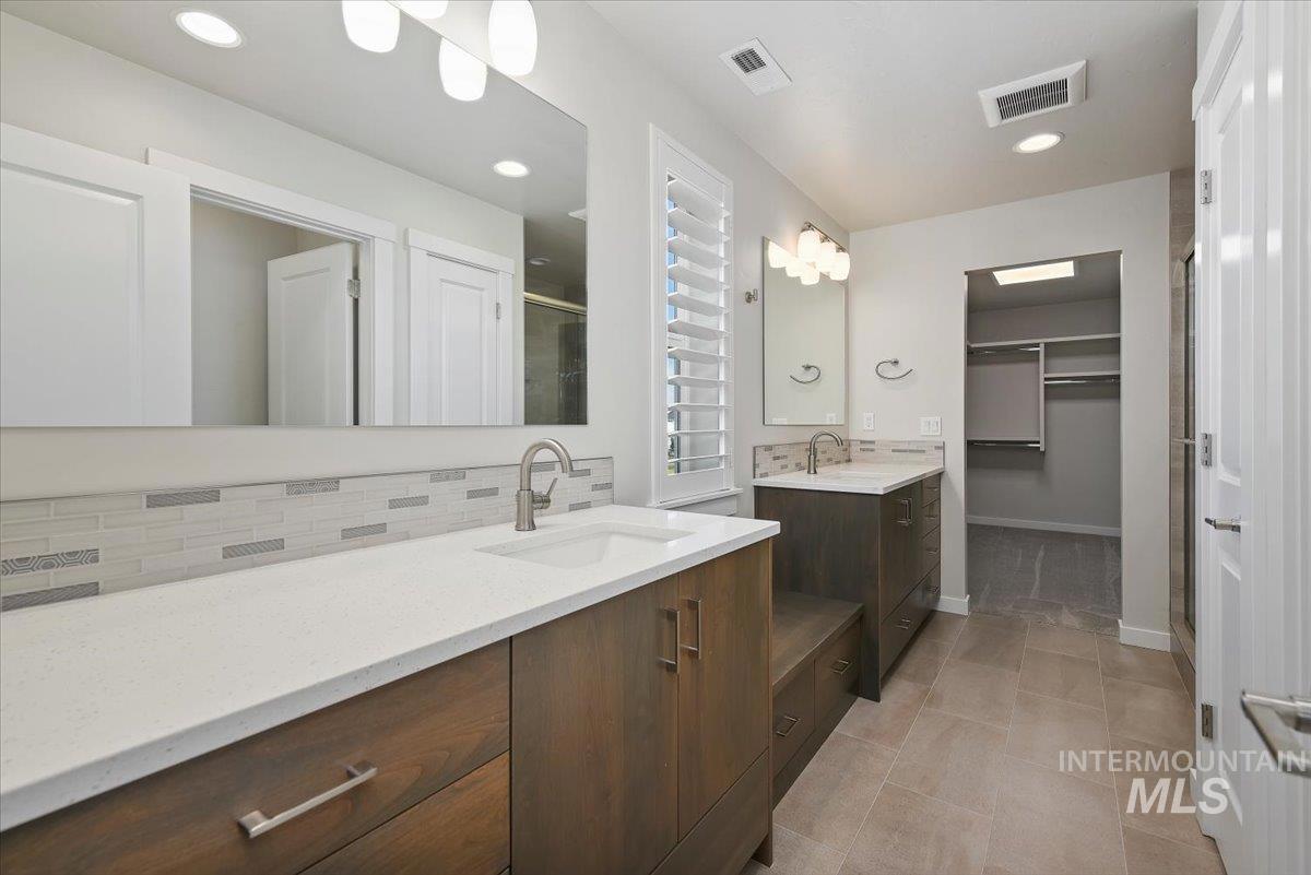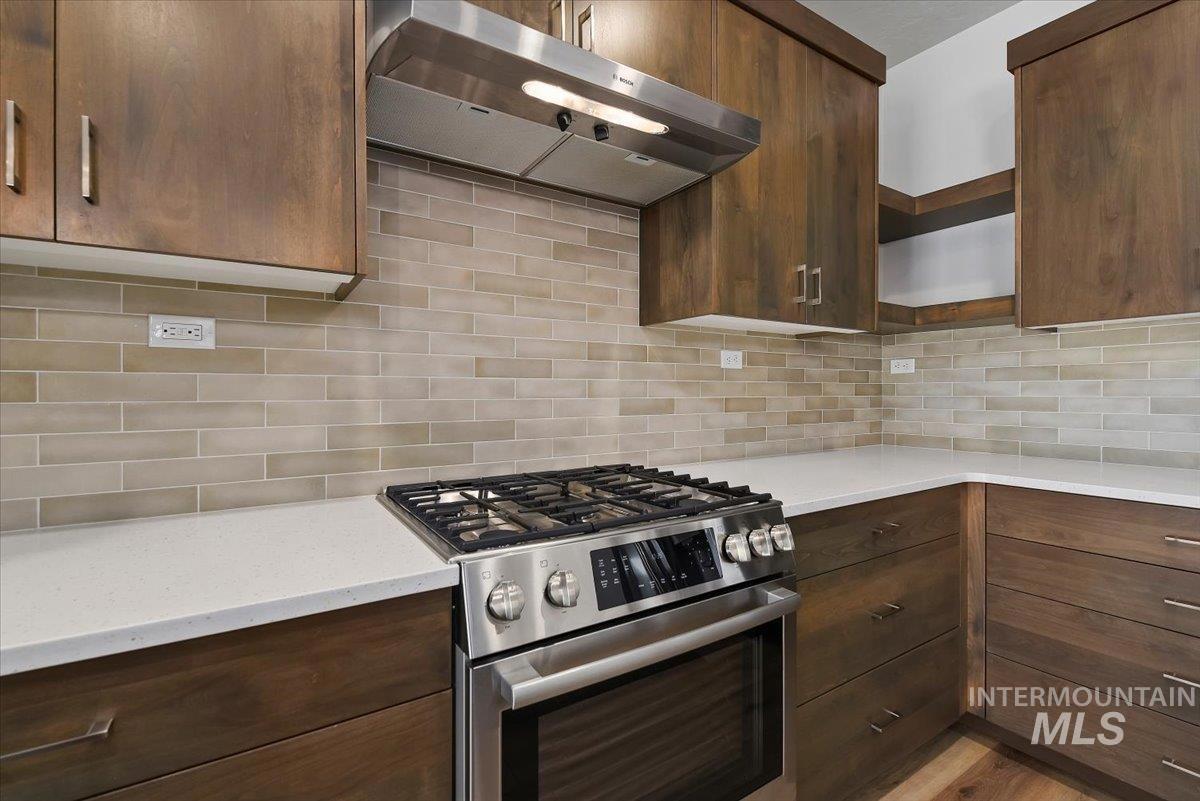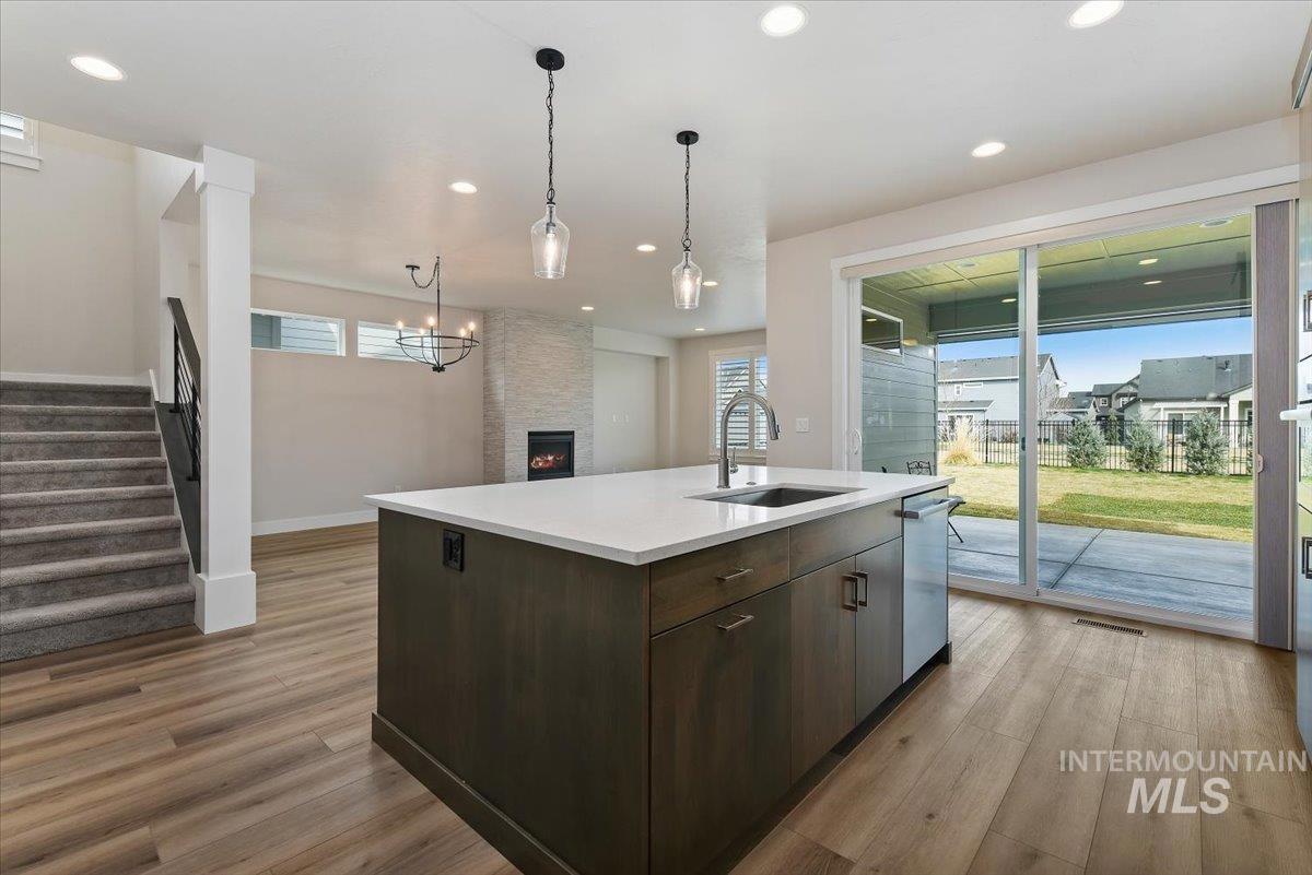 Better than new and designed to stand out. Backing to a common space with no immediate rear neighbors, this home offers a more open yet private setting that’s hard to find. A covered front porch welcomes you into a thoughtfully designed layout featuring SIX distinct spaces for flexible, elevated living. Main level includes a dedicated den/office and open-concept living, dining, and kitchen area anchored by a floor-to-ceiling tiled gas fireplace. Kitchen features quartz countertops, Bosch appliances (gas range, built-in microwave, dishwasher), LG refrigerator, and walk-in pantry with outlet. LVP flooring, plantation shutters, Vertiglide shade, and dual-zone climate control add comfort throughout. TONS of storage. Upstairs offers 4 bedrooms, laundry room, and insulated media/bonus room with closet, ideal as a 5th bedroom or flex space. Primary suite includes dual vanities, tile shower, and walk-in closet with built-ins. Secondary bath offers dual sinks and tub/shower combo. Tankless water heater, extended 3-car garage with epoxy floors and storage system. Covered patio, extended concrete, and Stor-More shed. Arbor community with pools, parks, and paths. Vallivue School District. Designed for both everyday living and elevated entertaining, this home offers a rare combination of space, comfort, and thoughtful upgrades in a setting that feels open, functional, and refined. Exceptional!