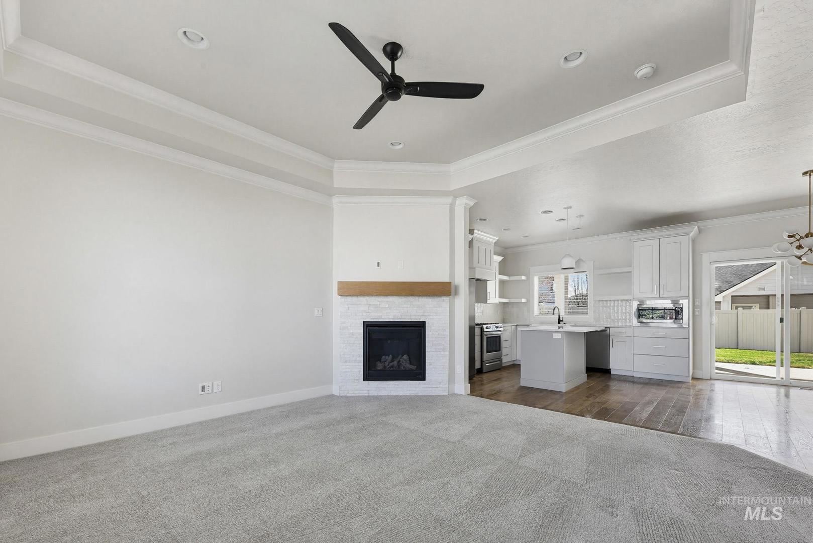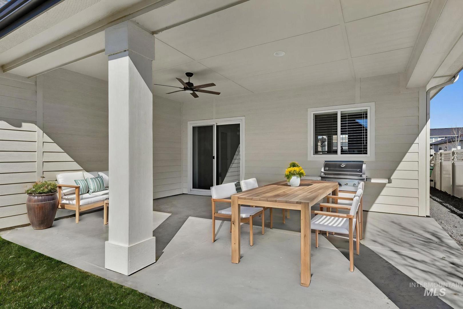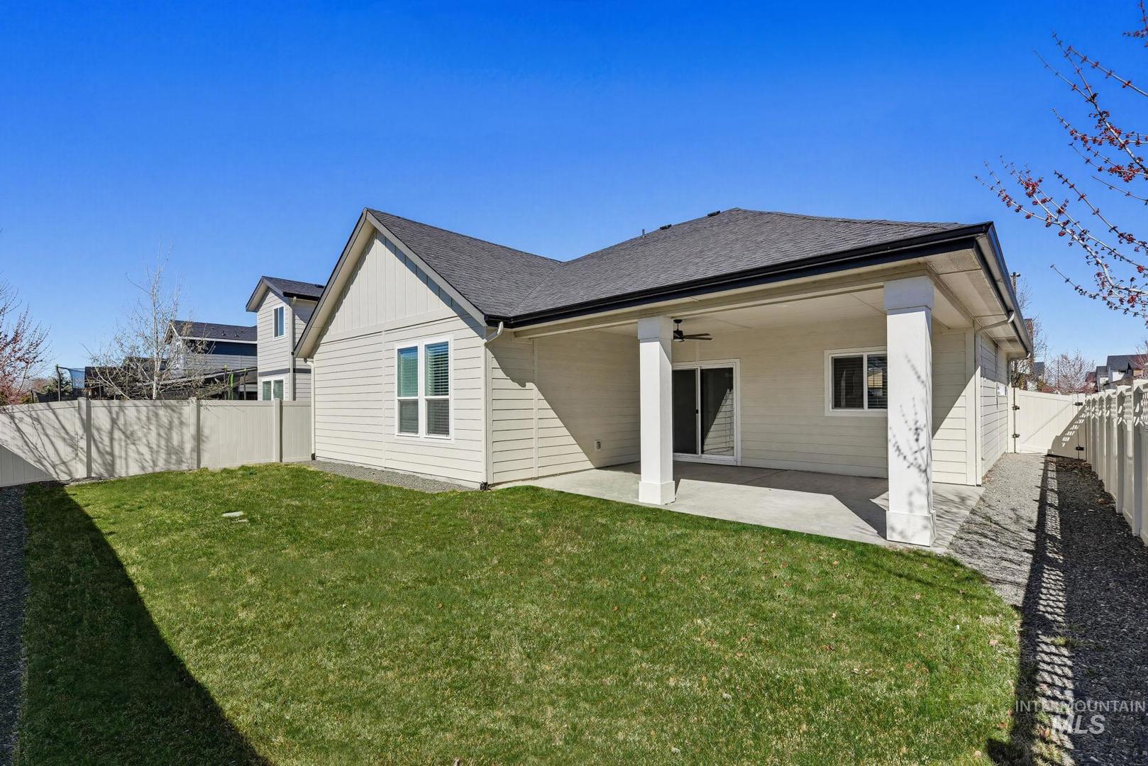 Wonderful single level, custom built home, in newer, The Cazador subdivision in Kuna. Spacious floor plan and very functional. Large kitchen with all appliances and a large island. Large primary bedroom with attached ensuite. Primary bathroom has dual vanities, walk in closet, and more. The great room has a lovely fireplace for enjoying the evenings inside. Outside boasts a large covered patio, great for entertaining. The subdivision has a community pool, parks, and more for enjoying the outdoors this coming summer!