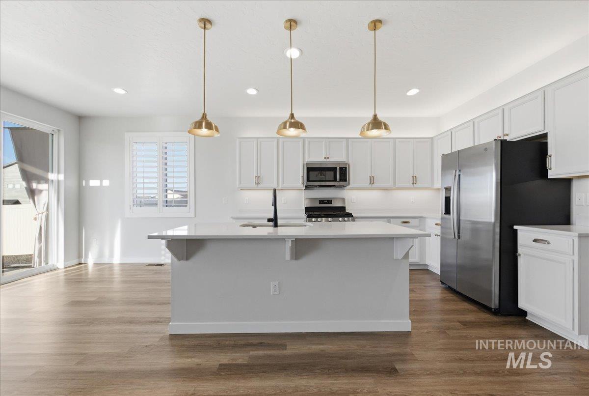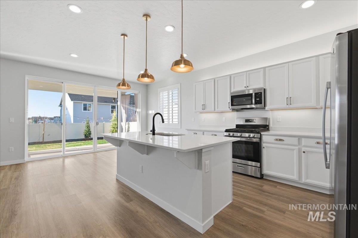 One of the best lots in Hope Springs! Tucked at the end of a no through street on an oversized corner lot - this perfect two story design offering 5 bedrooms, 3 baths and a bonus room. Perfect for work-from-home or multi-generational living with a main-level bedroom and full bath. The heart of the home is the island kitchen, featuring a breakfast bar, stainless steel appliances, a gas stove, a dishwasher, and a pantry for ample storage. The open-concept design flows seamlessly into the living area, complete with a tiled cozy fireplace, and updated cabinetry, built-ins and upgraded window shutters. The master suite offers a retreat-like experience, complete with a private ensuite bathroom and an overly generous walk-in closet. The additional bedrooms provide flexibility for guest rooms, a home office, or a hobby space. Step outside to enjoy the spacious oversized backyard with new landscaping, a covered patio & hot tub. Ample side yard parking could be perfect for storing toys or an RV. Hope Springs features a beautifully maintained community with scenic walking paths, a community garden and stunning clubhouse w/ pool.