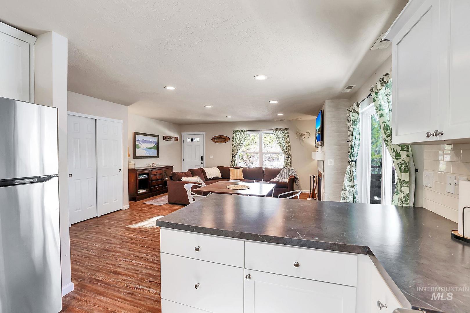 Wow! This darling cabin is the perfect year-round escape. Situated on a spacious .353-acre wooded lot, there’s ample room to park your trailer or RV. From the moment you step inside, you’re welcomed by an open-concept floorplan designed for comfortable living. The living room features a cozy fireplace—perfect for chilly evenings. The kitchen offers a large breakfast bar, soft-close cabinetry & a gas range. From the dining area, step out onto the wraparound deck that spans the front & side of the home & firepit—ideal for relaxing or entertaining. A truly unique feature is the dual master suites, with one on the main level & the second upstairs, offering excellent privacy for guests or family. In addition there is an additional 1/2 bath just for quests! The location is hard to beat—just minutes to Boulder Creek State Park on Cascade Lake, featuring a boat ramp, sandy beach & picnic areas. Tamarack Resort is just across the lake, offering year-round recreation including skiing, golfing, mountain biking, dining & summer concerts. Photos include Boulder Creek State Park.