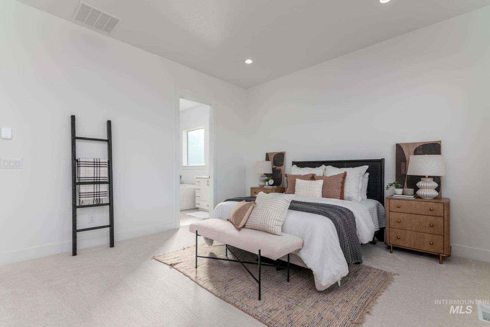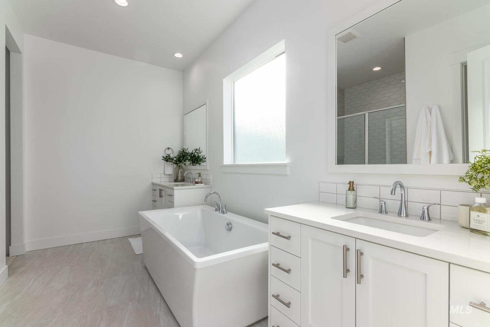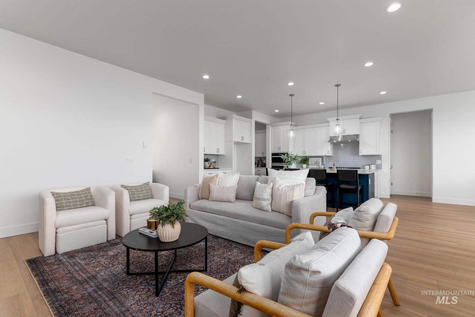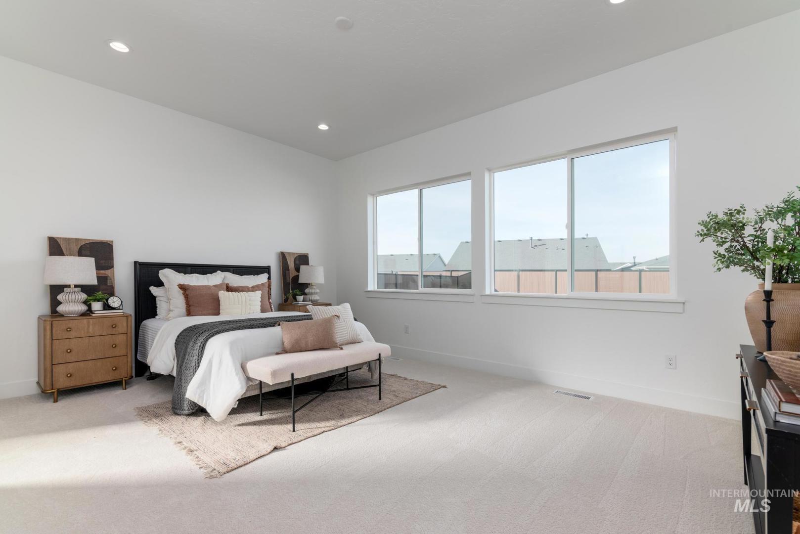 The Bannock exudes contemporary comfort and functionality, exemplified by its thoughtfully crafted single-story layout. A long foyer sets the stage, leading to a spacious great room seamlessly connected to the kitchen, casual dining area, and covered patio—an ideal setting for gatherings and relaxation. The kitchen is centered around a striking large center island and enhanced by its expansive walk-in pantry. The primary bedroom suite, nestled in the rear of the home, features a serene sanctuary complete with a luxurious walk-in closet and a primary bath with separate vanities, freestanding tub and a luxe shower. Off the foyer, three secondary bedrooms and two bathrooms offer privacy and comfort. Front and rear landscape included. 3 car plus RV garage. Home is under construction. Photos are similar. BTVAI