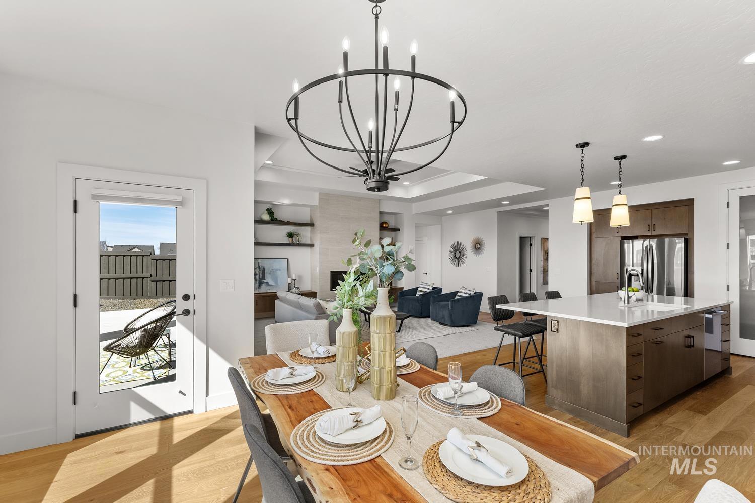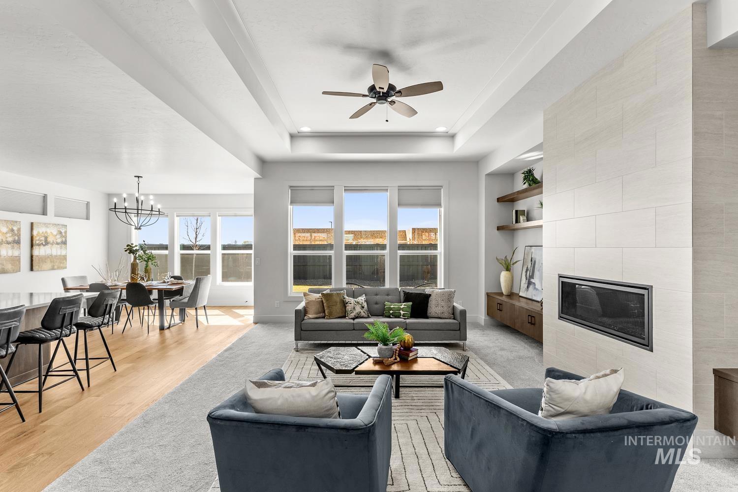 Welcome to an exquisite, nearly new Brighton Home, less than two years old & Energy Star certified, promising quality & efficiency. This home immediately impresses with its open & airy great room & kitchen design, perfect for modern living & entertaining. The kitchen is a chef`s delight, featuring an abundance of beautiful cabinetry, a full tiled backsplash, quartz counters & upgraded appliances, including refrigerator. Throughout the home, you`ll find luxurious LVP flooring, enhancing the bright & clean aesthetic. The dining area offers easy access to the patio, while the great room distinguishes itself with a cozy fireplace, elegant tray ceilings, built-in cabinetry, & soaring ceilings that create an expansive feel. The master suite is a true sanctuary, boasting dual vanities, a relaxing soaker tub, a separate commode area, a convenient linen closet, a fully tiled walk-in shower, & oversized walk-in closet for ample storage. Practicality meets style in the laundry room, which is equipped with abundant cabinetry & washer & dryer. A versatile fourth bedroom, complete with double doors & built-ins, offers an ideal space for a home office or den. The garage provides exceptional space, featuring a 6-foot bump-out on the side & an additional 12x7 area with built-in storage. This home truly feels like new, having been meticulously occupied for only 19 months by a single person.
